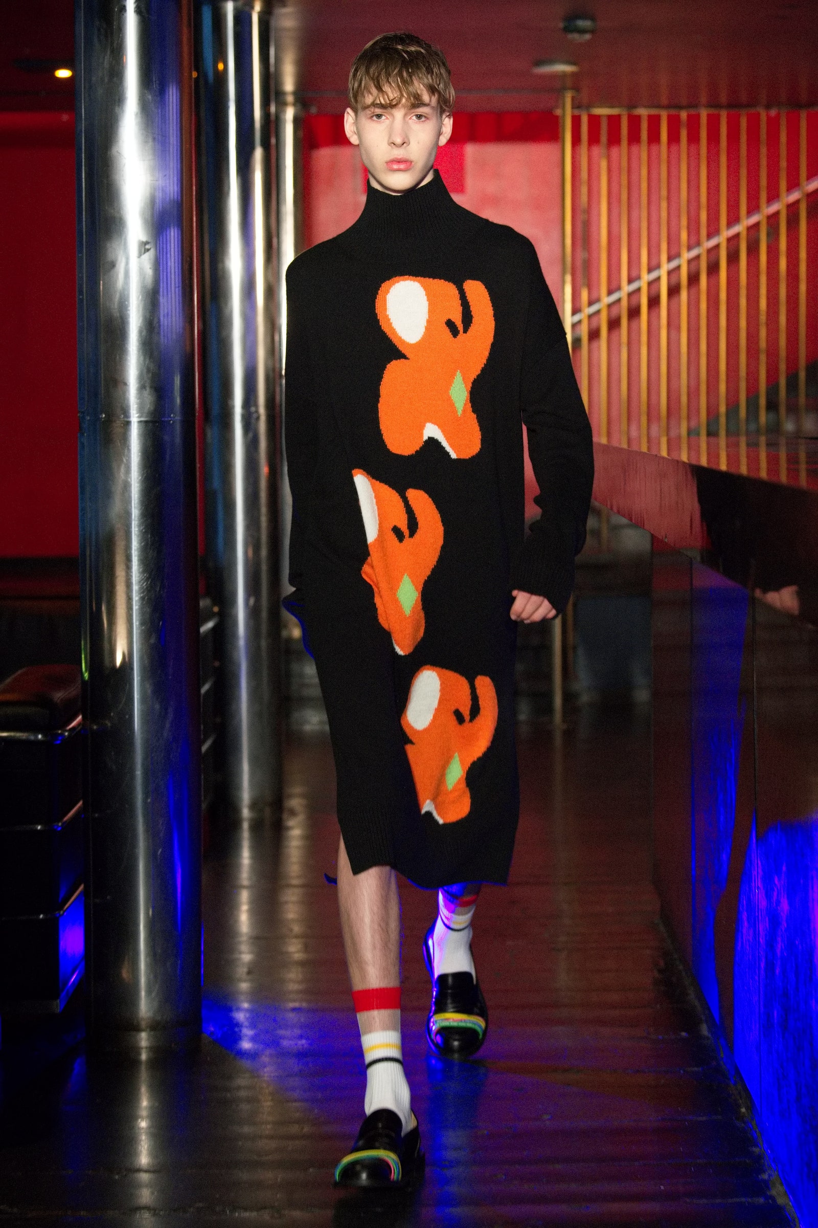 Thế giới đảo lộn, thì thời trang cũng “nhân cơ hội” này mà “điên” theo. Jonathan Anderson mang đến sự ngốc nghếch và kì quái ở JW Anderson và Loewe, trong khi những trang phục của Comme des Garçons Homme Plus và Moschino khơi gợi cảm giác hồn nhiên, lạc quan của đám trẻ thời thơ ấu. Còn Vetements thì tiếp tục thể hiện thái độ mỉa mai của mình qua bộ trang phục mang khẩu hiệu trào phúng.