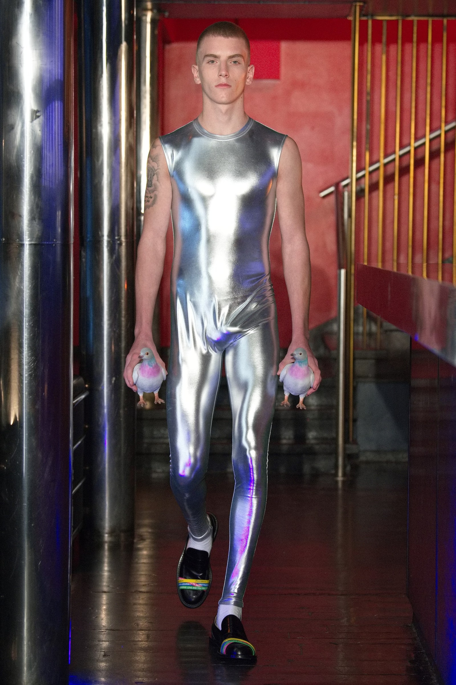 Catsuits ở thời trang nữ là câu chuyện cách đây một năm, và lần này đến lượt những bộ trang phục ôm trọn toàn thân của thời trang nam. Tại Loewe, Jonathan Anderson thậm chí sử dụng công nghệ quét cơ thể của các người mẫu để thiết lập nên phom dáng chuẩn chỉ, ôm sát cơ thể đến từng milimet. Ngoài ra, bộ bodysuit của Vetements, với họa tiết tờ tiền đô la tràn ngập, cũng góp phần tạo nên xu hướng thời trang thú vị cho mùa Thu Đông năm nay.