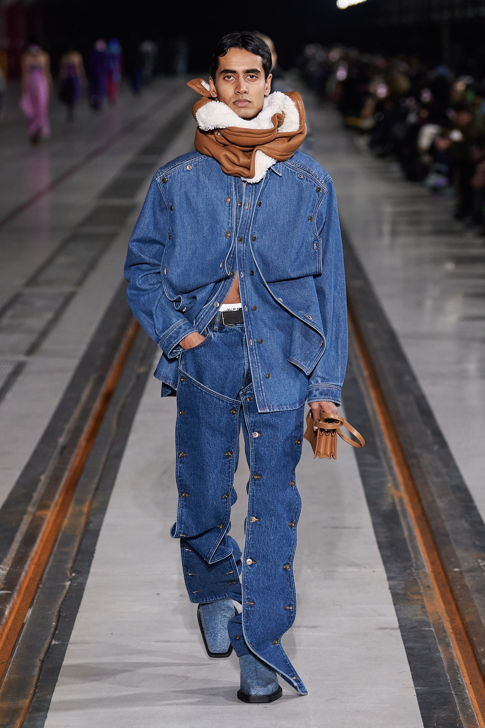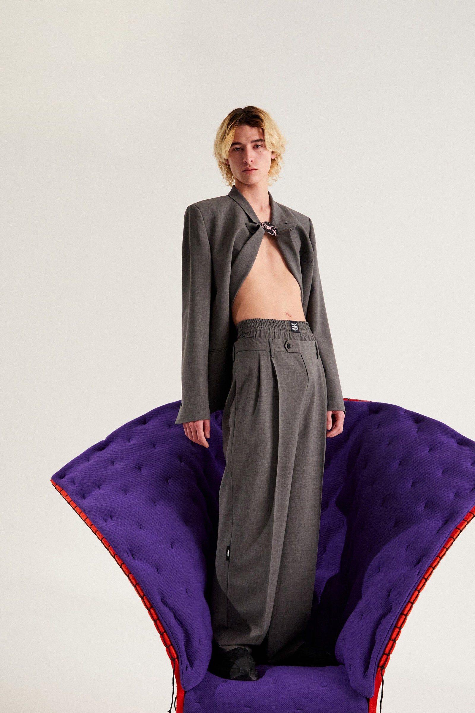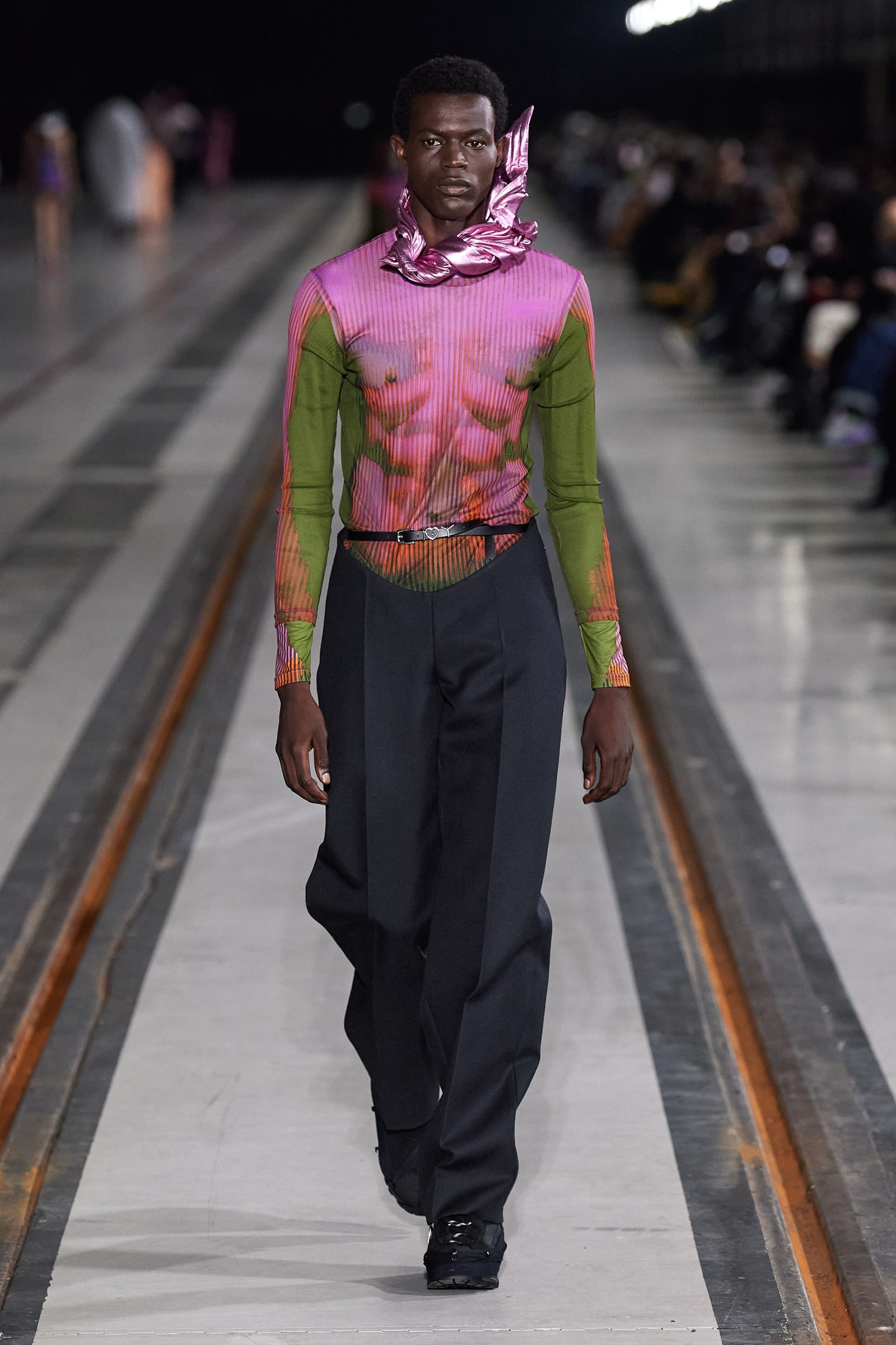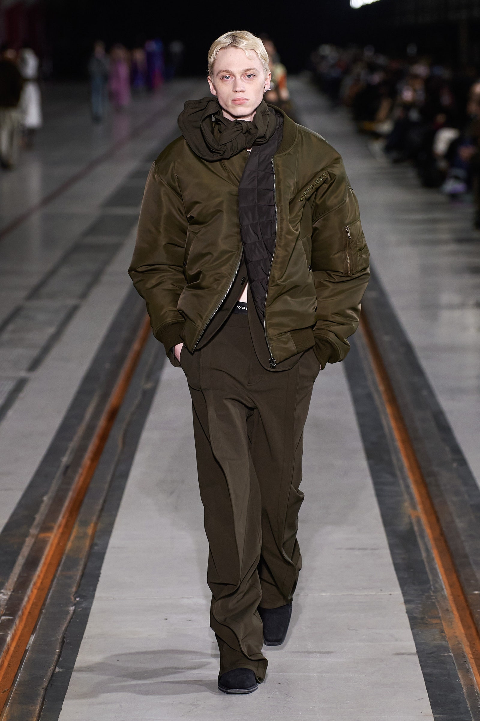 Y2k hoài niệm thống trị thời trang nữ trong nhiều mùa, và giờ đây làn gió năm 2000 đang thổi sang cả những bộ sưu tập nam giới. Quần jean cạp trễ, rộng thùng thình được diện với quần lót boxer cố tình để hở ra ngoài xuất hiện tại Dior Men, Louis Vuitton và Alled-Martinez. Nhưng tất cả vẫn không thể hở hang hơn chiếc quần tây xẻ sâu phần trước của Y/Project.