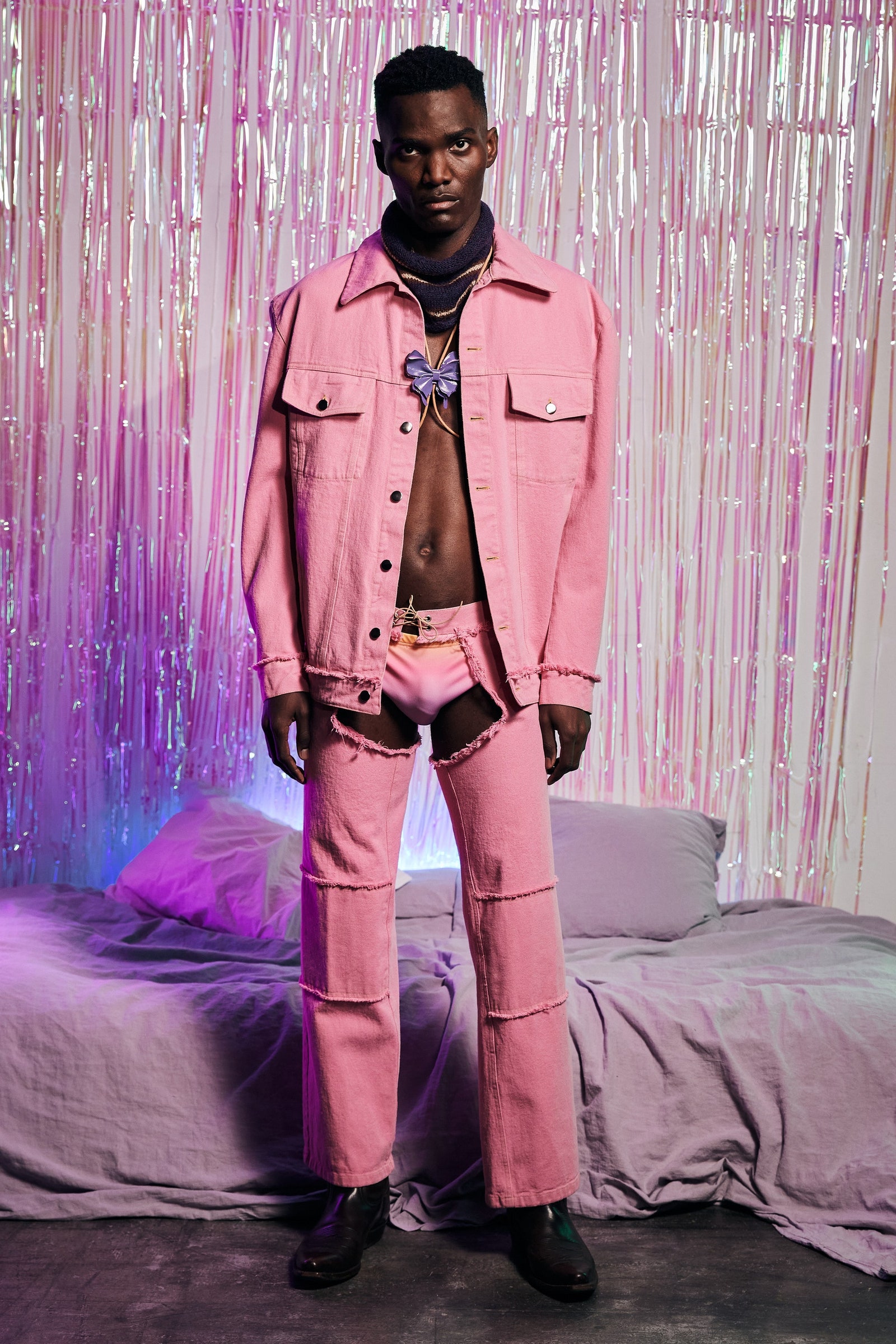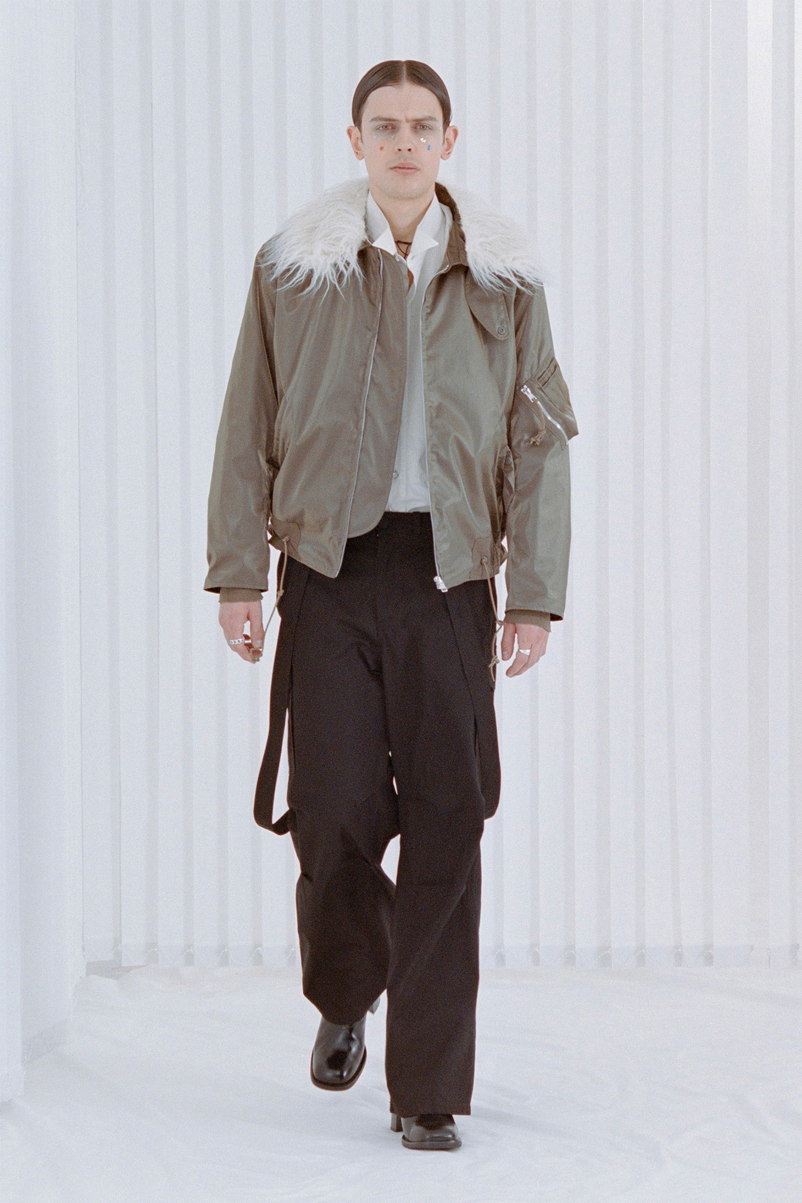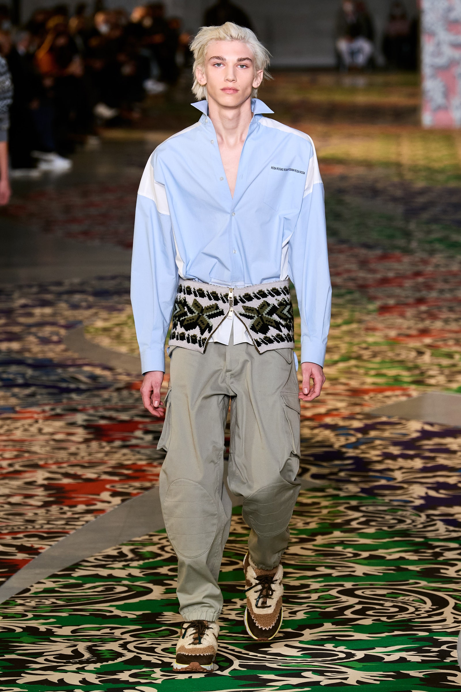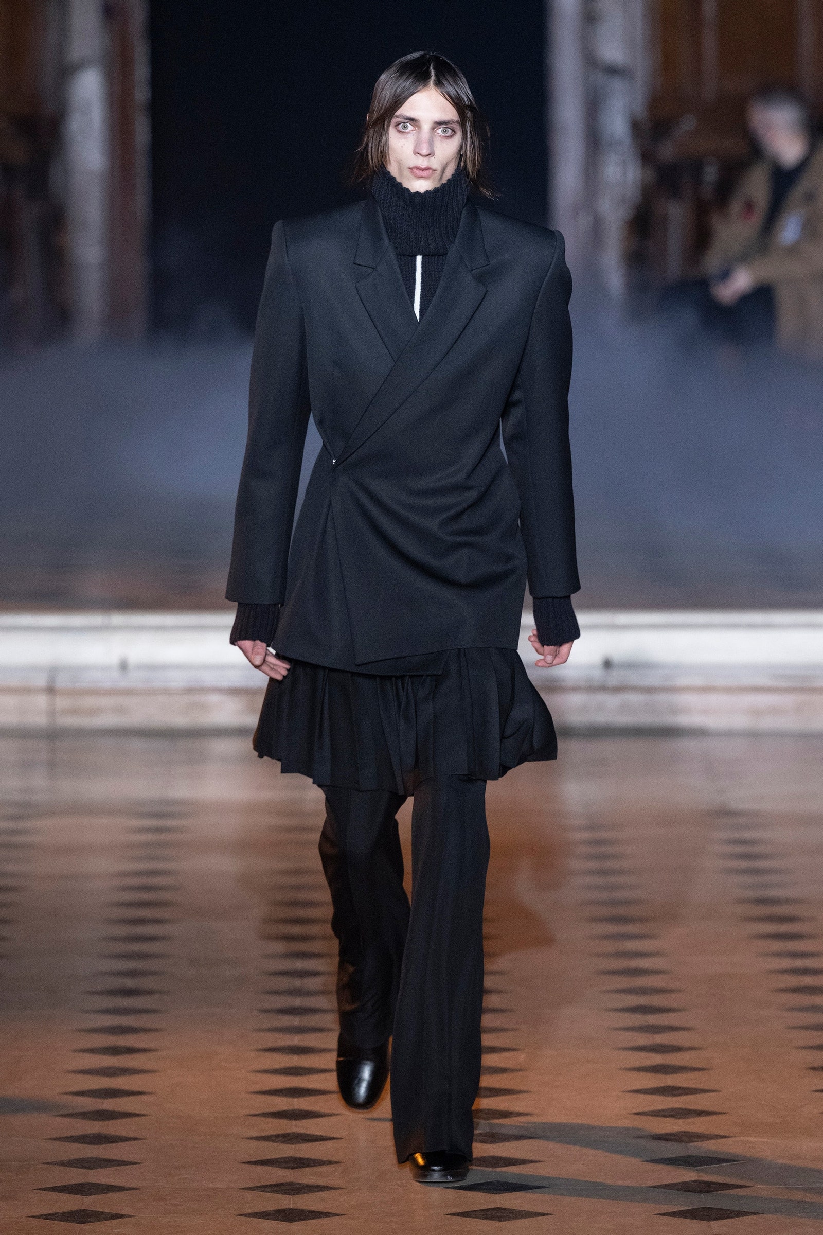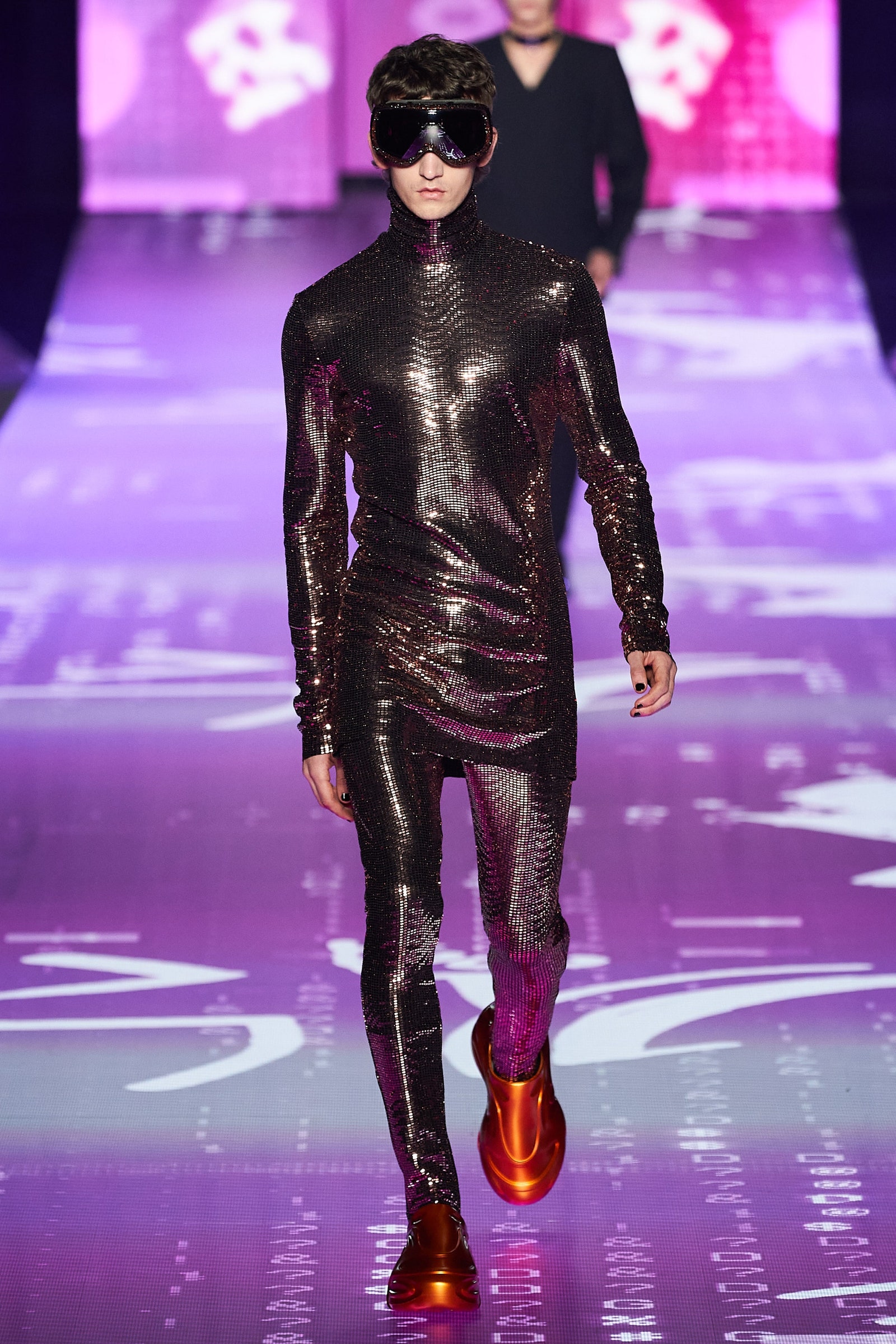Y2k hoài niệm thống trị thời trang nữ trong nhiều mùa, và giờ đây làn gió năm 2000 đang thổi sang cả những bộ sưu tập nam giới. Quần jean cạp trễ, rộng thùng thình được diện với quần lót boxer cố tình để hở ra ngoài xuất hiện tại Dior Men, Louis Vuitton và Alled-Martinez. Nhưng tất cả vẫn không thể hở hang hơn chiếc quần tây xẻ sâu phần trước của Y/Project.
