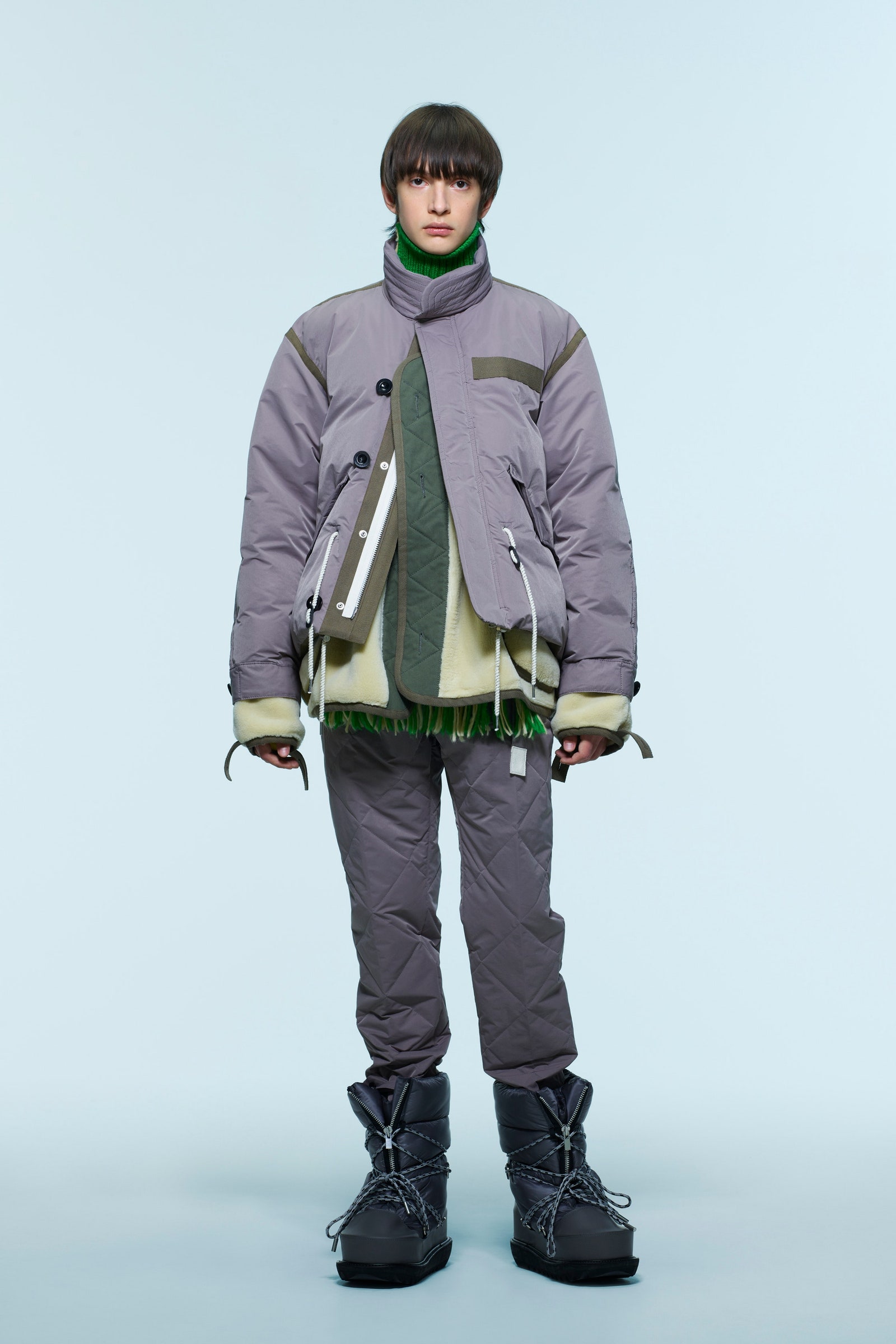 Phom dáng thời trang cơ bản của mọt cánh đàn ông, áo khoác bomber luôn là xu hướng thời trang được ưa chuộng rộng rãi, và xuất hiện gần như ở mọi mùa Thu Đông. Tiêu biểu là những chiếc áo khoác bomber lai blouson Giorgio Armani hay MA-1 của Raf Simons. Cảm giác độn phồng và xốp mịn của những chiếc áo này luôn khiến cho các anh thích thú.