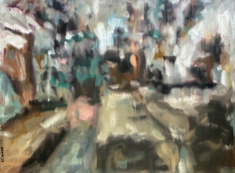 Nhắc đến sự chuyển biến này, với tôi, ba là một nguồn cảm hứng lớn. Có một khoảng thời gian ba không may đột quỵ và kéo theo hệ lụy là bị liệt nửa thân, một bên mắt không còn nhìn thấy và nhận thức như một đứa trẻ. Đó là lúc chính bản thân tôi cũng cảm thấy tiêu cực về mọi thứ. Hội họa vừa hay lại là ngọn đèn soi đường tôi bước tiếp. Tôi kiếm tìm sự đồng điệu với ba qua đôi mắt cận khi tháo kính, làm mọi thứ nhòe đi. Từ đây, các thực hành mới nhất của tôi đều có sự thay đổi đáng kể trong lối vẽ.
