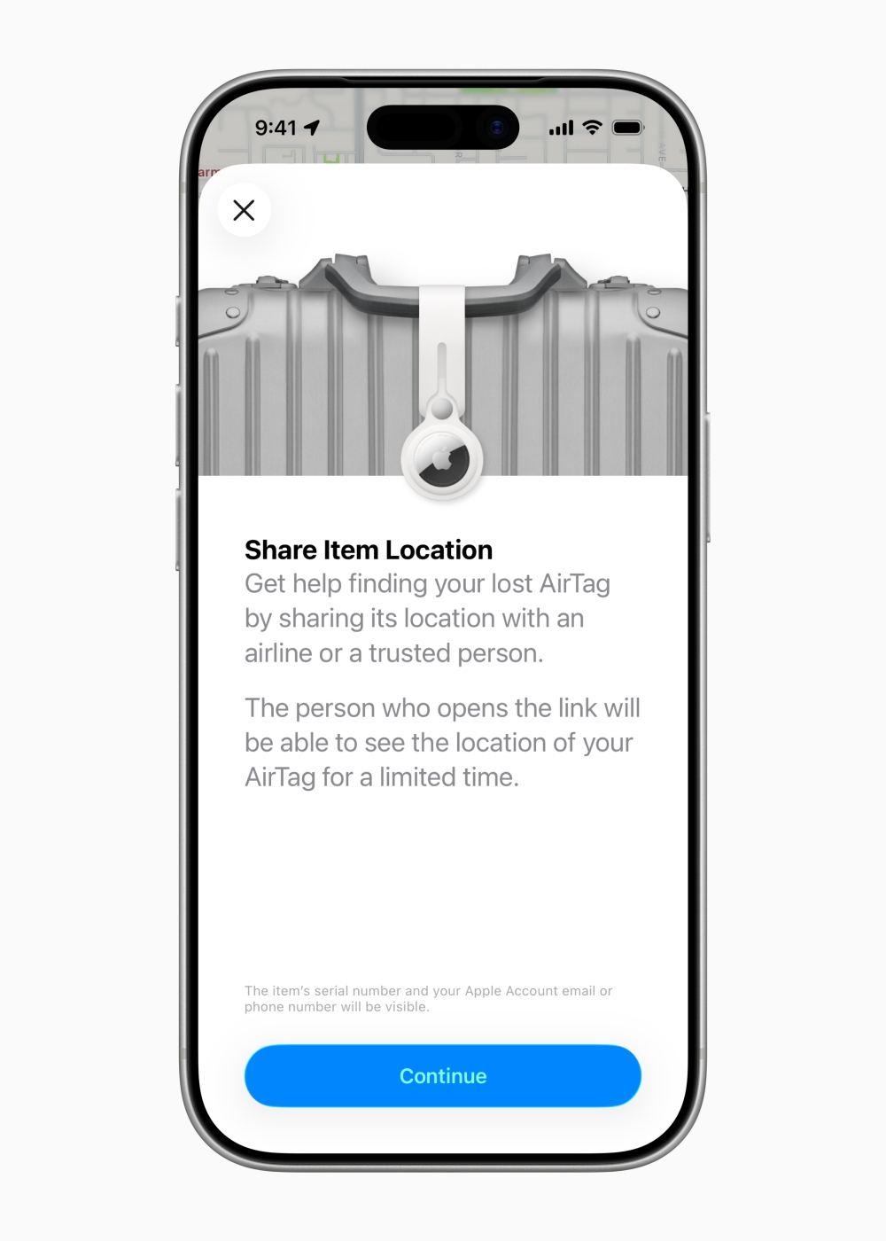 AirTag mới tích hợp liền mạch với “Chia sẻ vị trí vật dụng”, một tính năng trên iOS được thiết kế để giúp người dùng tìm lại vật dụng bị thất lạc bằng cách chia sẻ vị trí vật dụng tạm thời và an toàn với bên thứ ba như các hãng hàng không, từ đó họ có thể hỗ trợ tìm lại hành lý đến chậm hoặc các vật dụng thất lạc khác. Apple đã hợp tác trực tiếp với hơn 50 hãng hàng không để chấp nhận các liên kết một cách riêng tư và an toàn.