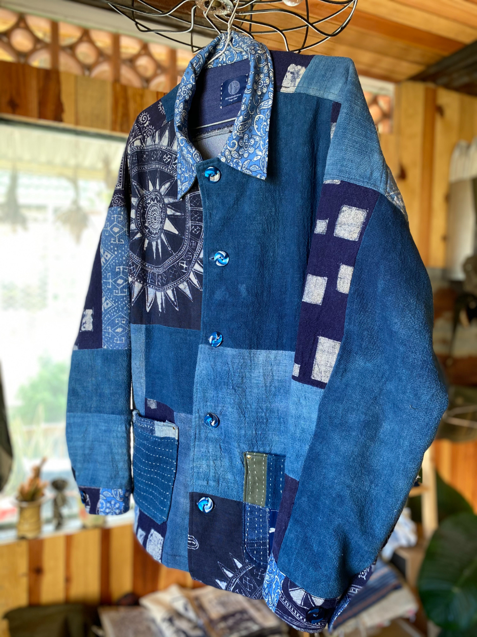 À, văn hóa Sashiko-Boro thì Thành biết được là nhờ vợ mình. Có một lần, vợ mình gửi cho mình xem bài viết về kỹ thuật dệt may này, và đọc xong mình rất thích. Trong văn hóa Nhật Bản, sashiko tức là mũi đâm, nhằm chỉ kiểu khâu từ thời Edo dùng để gia cố và sửa chữa những chỗ bị mòn rách. Còn boro có nghĩa là đống đổ nát, nhằm chỉ những quần áo được chắp vá nhiều mảnh vải với nhau, để che lắp đi những nơi sờn rách. Thế là mình tìm tòi nghiên cứu rất sâu về kiểu dệt may này. Mình xem tận đến những bài viết chuyên sâu bằng tiếng Nhật, và đọc hiểu bằng Google Dịch. Cũng từ đó, mình tìm hiểu thêm về patchwork, rồi nhiều thương hiệu nội địa Nhật đi theo phong cách này, điển hình là KAPITAL.