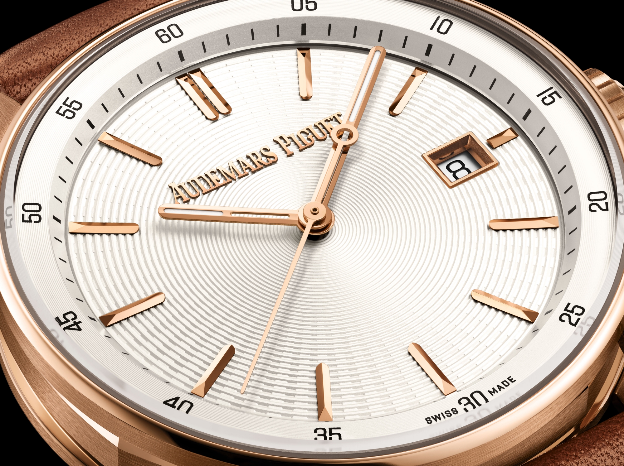 Phiên bản đầu tiên sở hữu mặt số ánh đen kết hợp dây đeo da cá sấu, trong khi mẫu còn lại nổi bật với mặt số tông bạc đi cùng dây da bê màu nâu hoàn toàn mới, được nhấn nhá bằng đường chỉ may trắng tinh tế. Cả hai mặt số đều tôn vinh ngôn ngữ thiết kế đặc trưng của bộ sưu tập: những vòng tròn đồng tâm gợi liên tưởng đến gợn sóng trên mặt nước, được điểm xuyết bằng những rãnh bắt sáng vô cùng sinh động. Trên nền thiết kế chủ đạo này, các cọc giờ bằng vàng hồng 18 carat cùng bộ kim phủ dạ quang hiện lên đầy ấn tượng, góp phần nâng cao khả năng đọc giờ, cảm nhận thoải mái khi sử dụng và tinh thần hiện đại của tổng thể thiết kế.