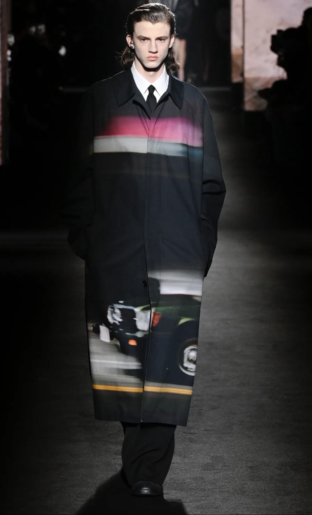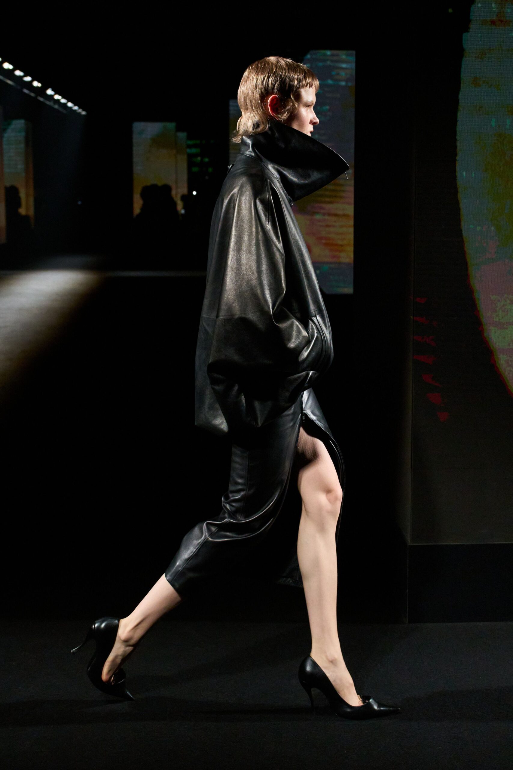 Tại Paris, khu vực bên ngoài show diễn của Balenciaga mang đến sự náo nhiệt quen thuộc. Bên trong, không gian trình diễn được đặt tại một địa điểm rộng lớn trên đại lộ Champs-Élysées. Phần dàn dựng hình ảnh do Sam Levinson đảm nhiệm. Hàng chục màn hình video chiếu những khung cảnh mang màu sắc điện ảnh: Phong cảnh California, đàn sói trong đêm, những quán bar vắng lặng và gương mặt của các diễn viên mới trong mùa ba của “Euphoria”.