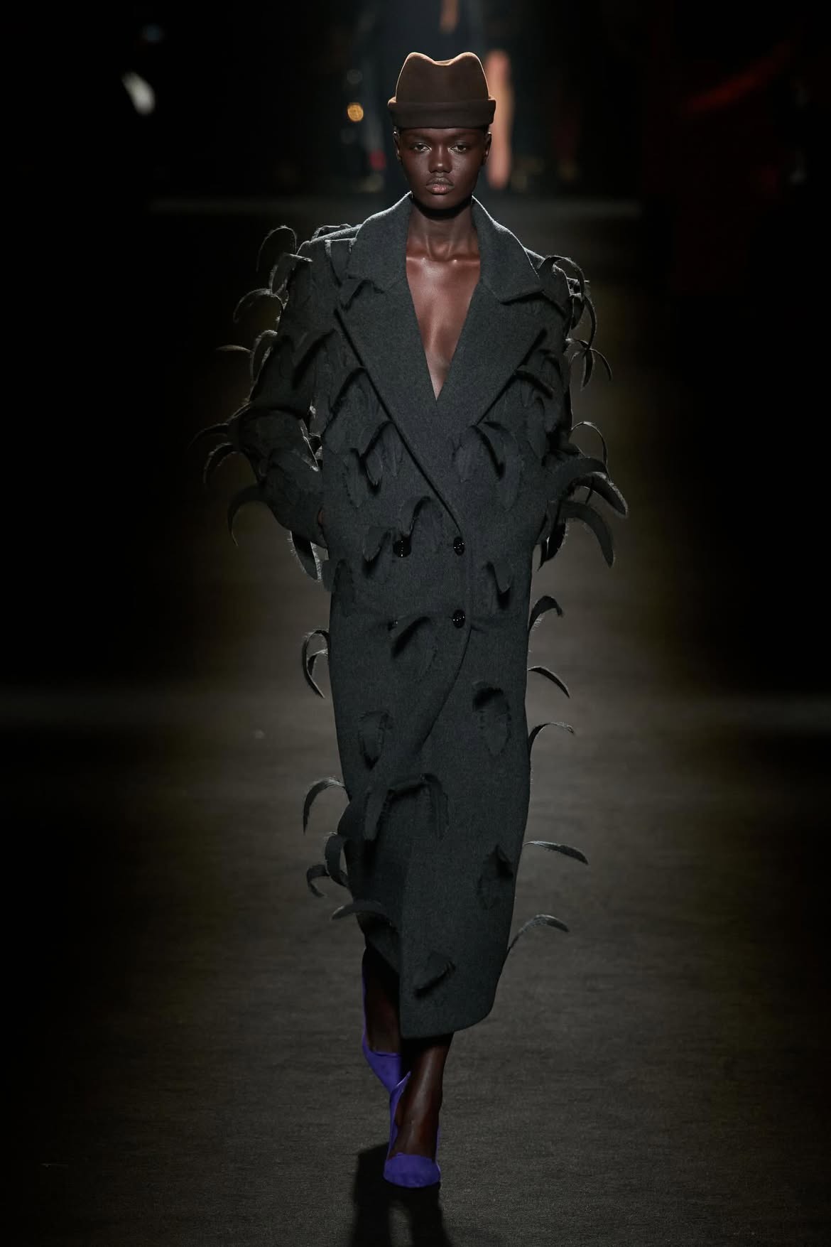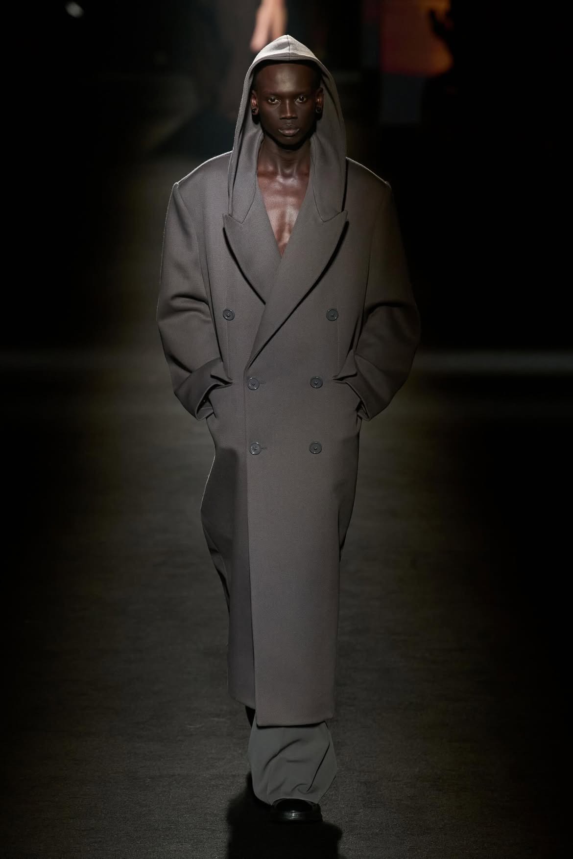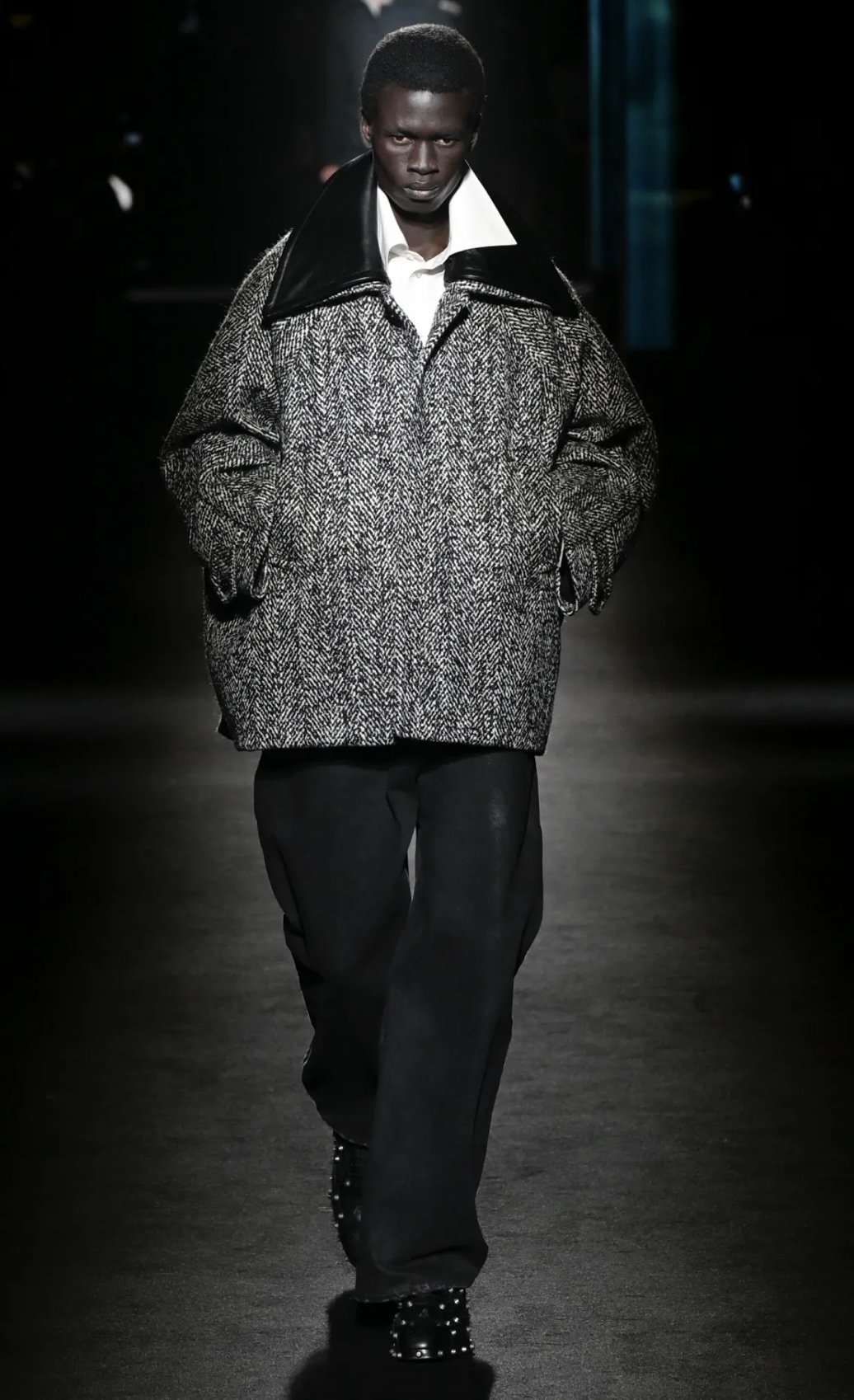 81 người mẫu bước đi dưới một dải ánh sáng mảnh, khoác lên mình những bộ trang phục được tính toán kỹ lưỡng. Trọng tâm của đa số thiết kế là áo khoác statement, nhiều mẫu sở hữu phần lưng phồng hoặc cấu trúc kén tằm, gợi nhắc đến phom dáng cocoon trứ danh của nhà sáng lập Cristóbal Balenciaga.