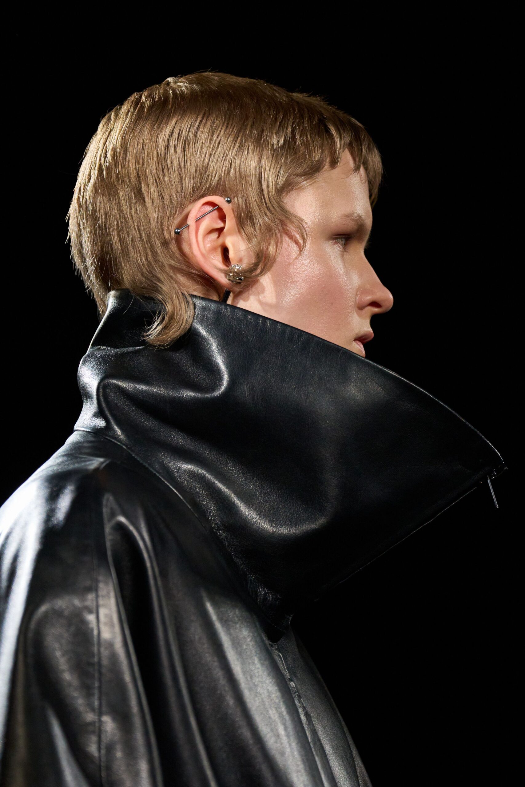 Piccioli chọn cổ áo portrait cùng các biến thể cổ dựng ôm sát khuôn mặt như funnel neck làm điểm nhận diện chính của bộ sưu tập. Theo ông, chi tiết này phản chiếu cách Sam Levinson khắc họa thế hệ Gen Z trong các tác phẩm của mình.