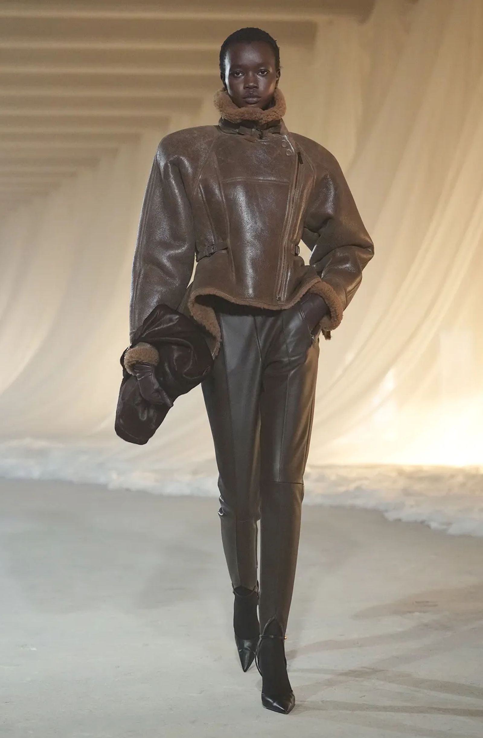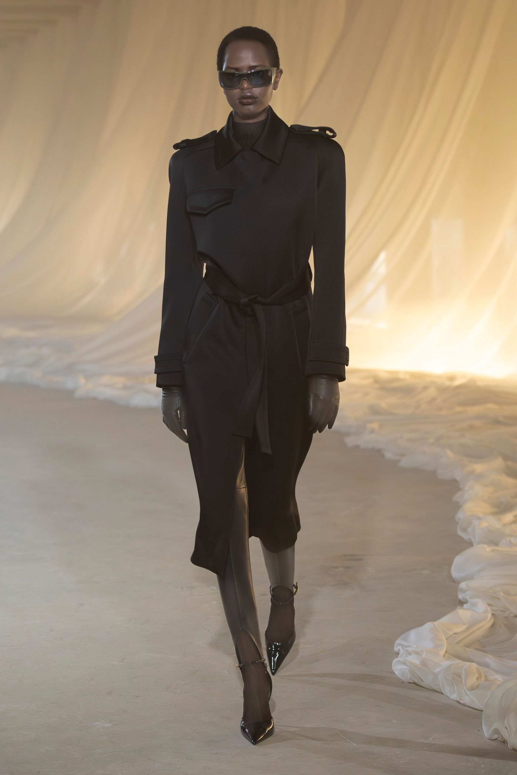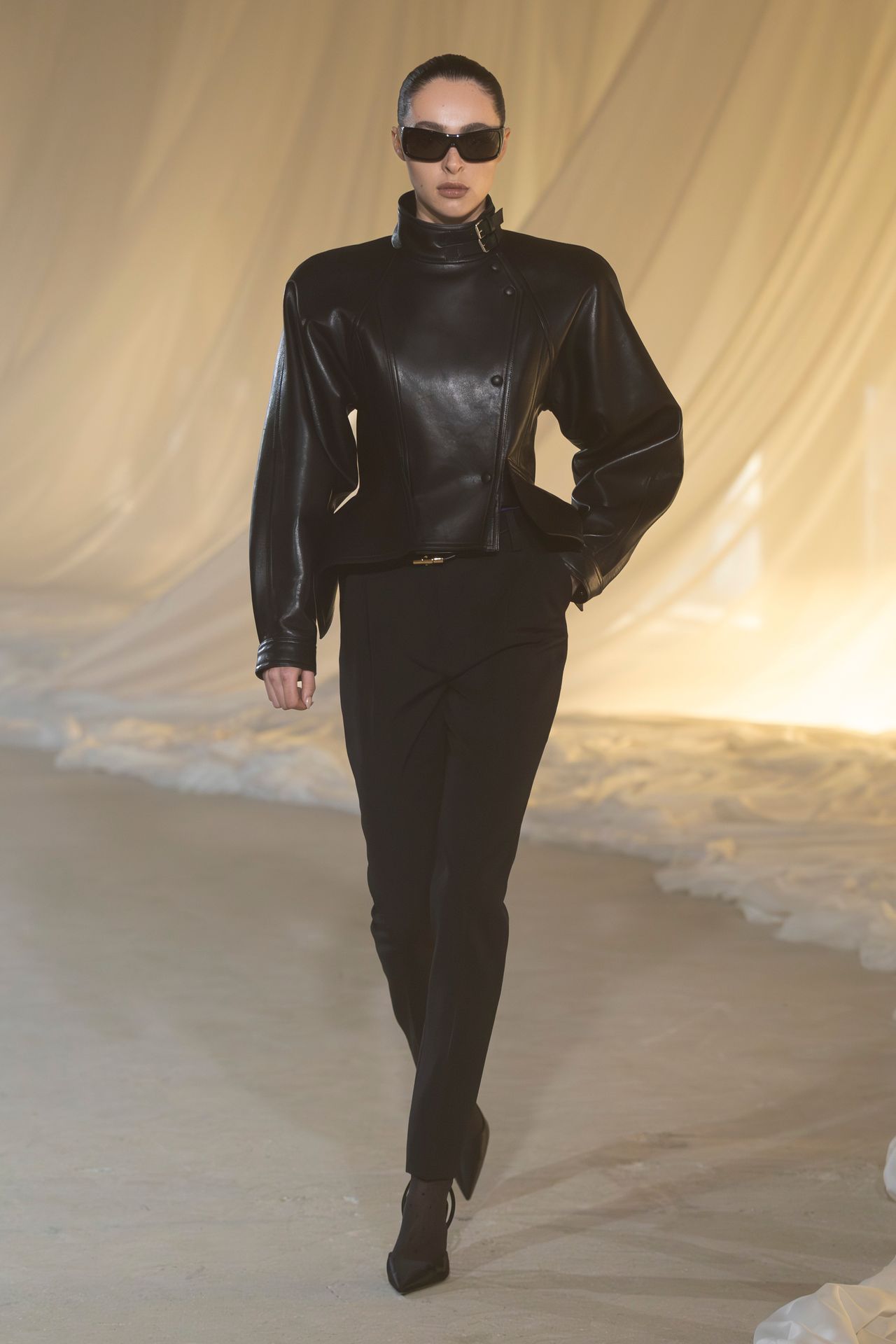 Antonin Tron đặc biệt say mê vẻ thanh lịch đầy quyền uy với bờ vai sắc sảo và sức quyến rũ đầy bản năng của những nữ chính trong dòng phim đen (film noir) thập niên 1940, cũng như những “người kế thừa” đầy cá tính của họ trong các bộ phim neo-noir thập niên 1980. Ngay cả bối cảnh của buổi trình diễn cũng mang đậm tính điện ảnh. Được thiết kế bởi kiến trúc sư Andrea Faraguna từ Berlin – Người vừa vinh dự nhận giải Golden Lion tại Triển lãm Kiến trúc Venice Biennale – không gian trình diễn chuyển mình từ một khung cảnh đêm tối huyền bí sang bầu không khí ngập tràn ánh sáng, biểu trưng cho sự khởi đầu của một kỷ nguyên mới rạng rỡ của Balmain.