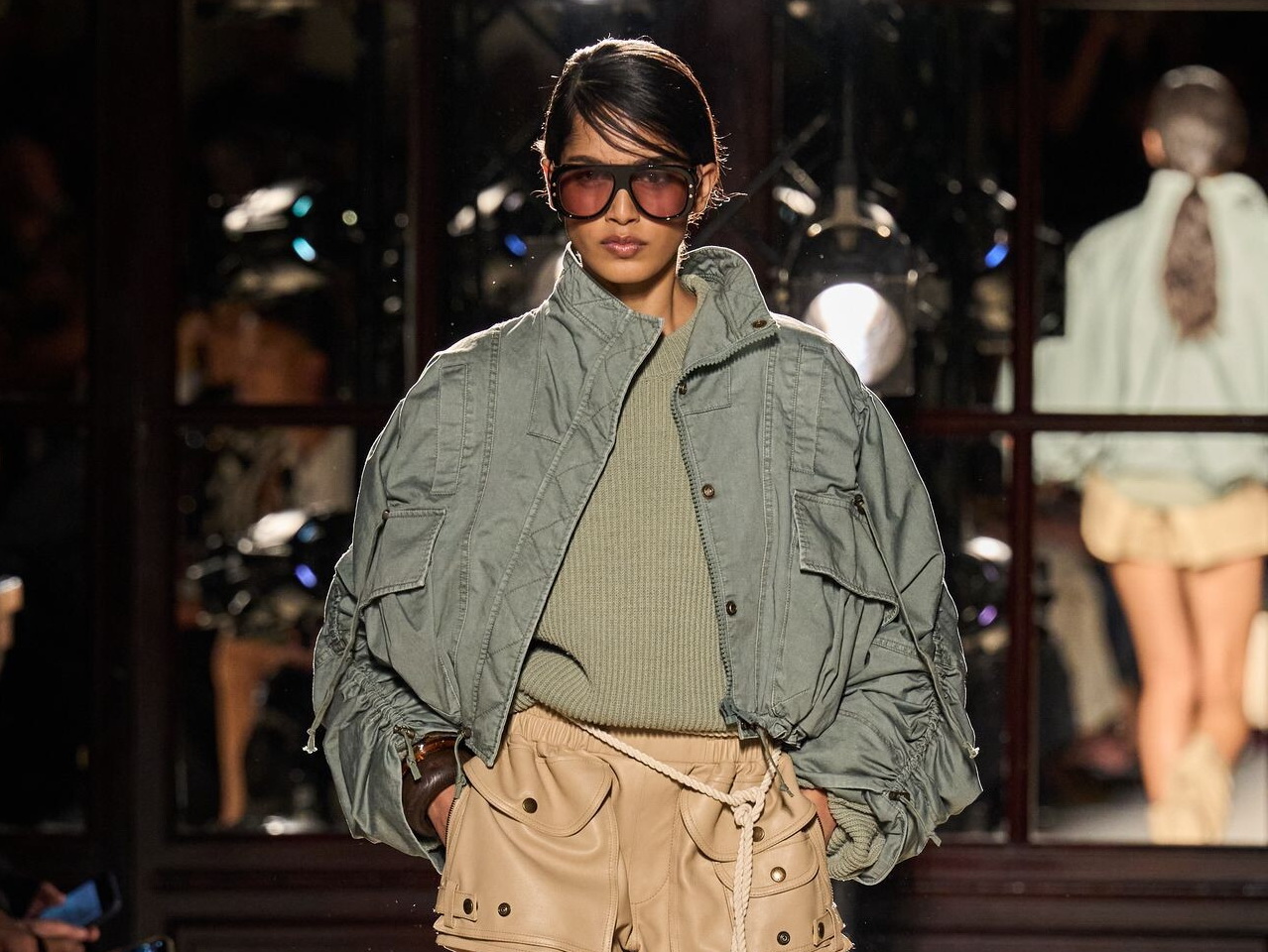 Giới mộ điệu có thể cảm nhận đường chân trời đó trong chất liệu và bảng màu tươi mới giữa những gam ấm của cát, sắc đất của sa mạc, xanh mát của ốc đảo và gam nâu đỏ trầm của gỗ trôi và san hô. Tinh thần ấy được thể hiện rõ qua nét nữ tính của bộ sưu tập – trong không khí, gió, và sự chuyển động. Mọi thứ đều nhẹ nhàng và linh hoạt: những nếp drap và xếp ly mềm mại trên satin, mousseline, georgette và crêpe; vẻ dịu dàng của da Nappa và da lộn; cùng những phom dáng ôm trọn cơ thể mà tôi đã giới thiệu vào mùa đông trước, nay được tái hiện bằng len và cotton – với sarouel, quần dù, và áo bomber tựa như món báu vật được tìm thấy từ chiếc rương vintage xưa cũ.