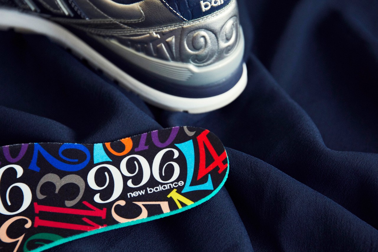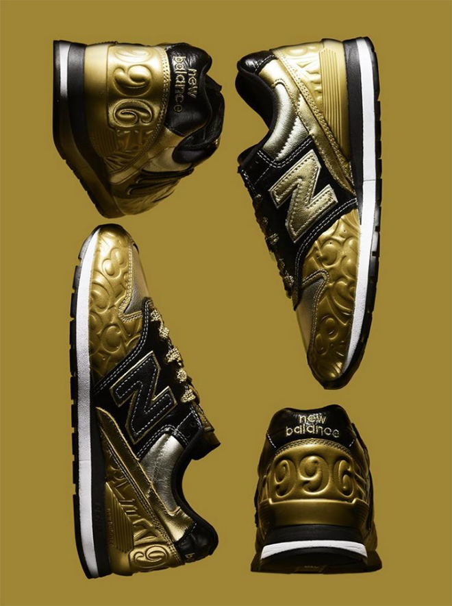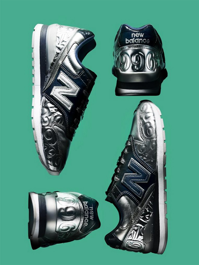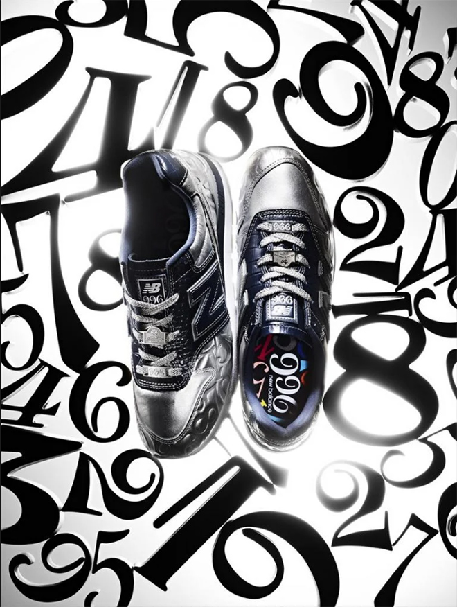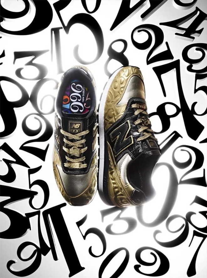 Với hai màu kim loại, mẫu giày thể thao 996 hoàn toàn mới được lấy cảm hứng từ các biểu tượng đồng hồ cổ điển, có nhiều màu bạc – nhấn mạnh tầm quan trọng của kim loại trong thế giới sản xuất đồng hồ – vàng và xanh hải quân. Giống như mặt số đồng hồ thông thường, mỗi đôi giày thể thao đều có các chữ số quá khổ được in nổi vào các phần da ánh kim ở mặt trên, cùng với một bản in đế nhiều màu phù hợp.
