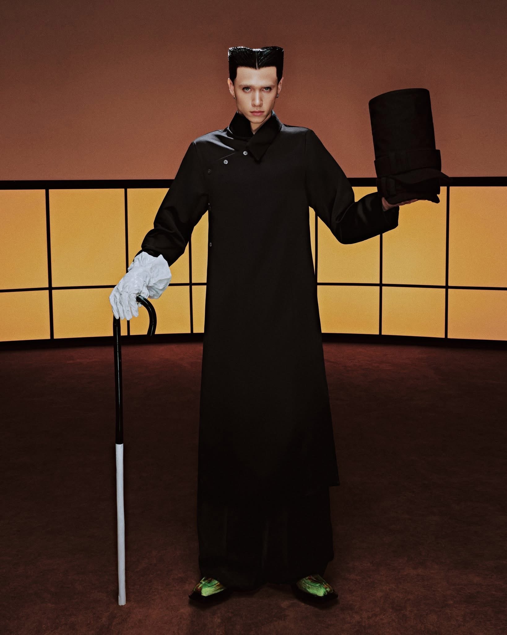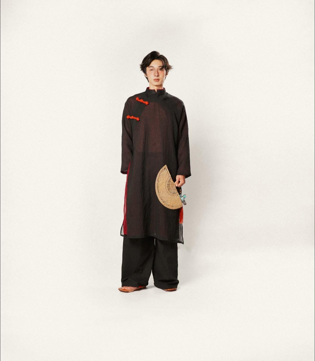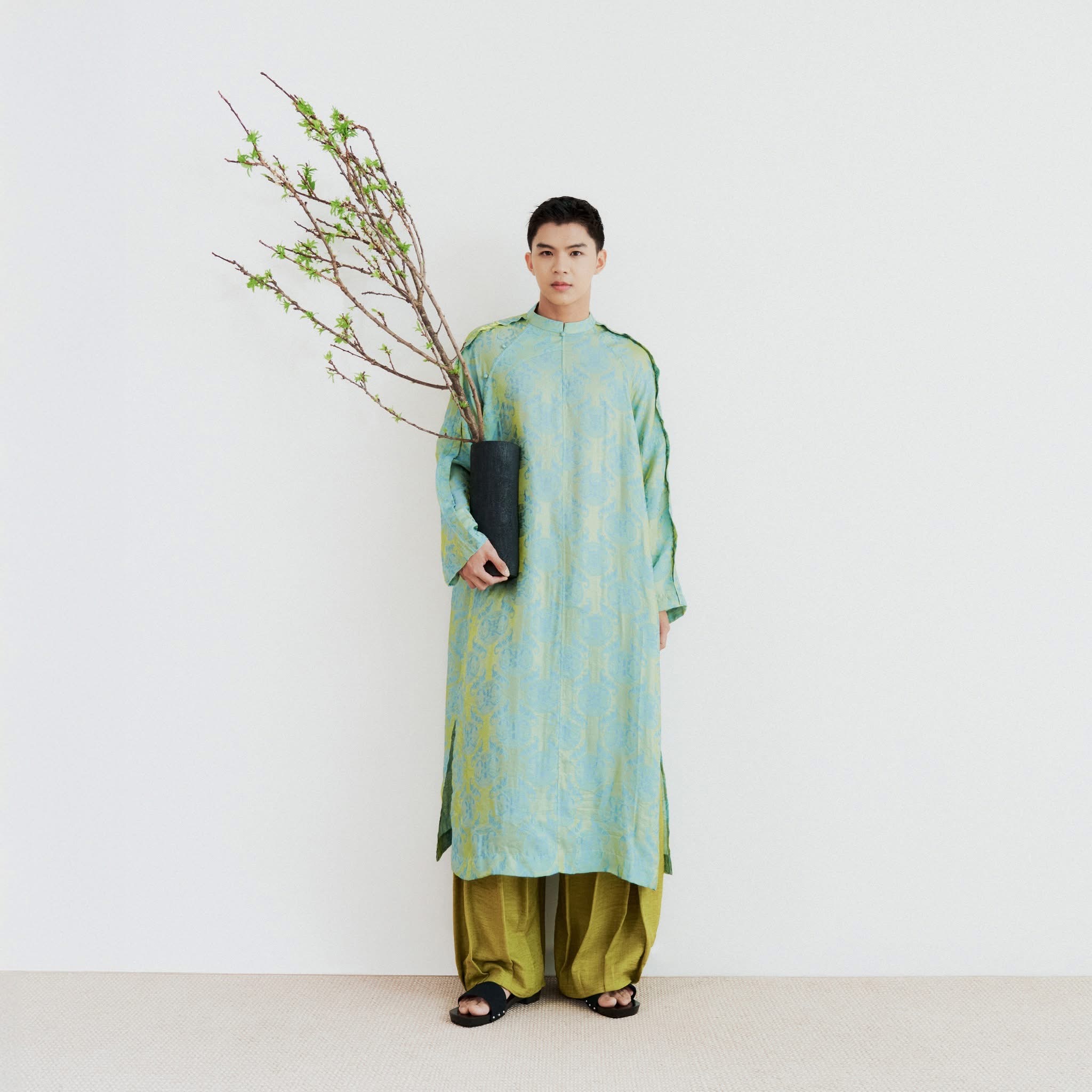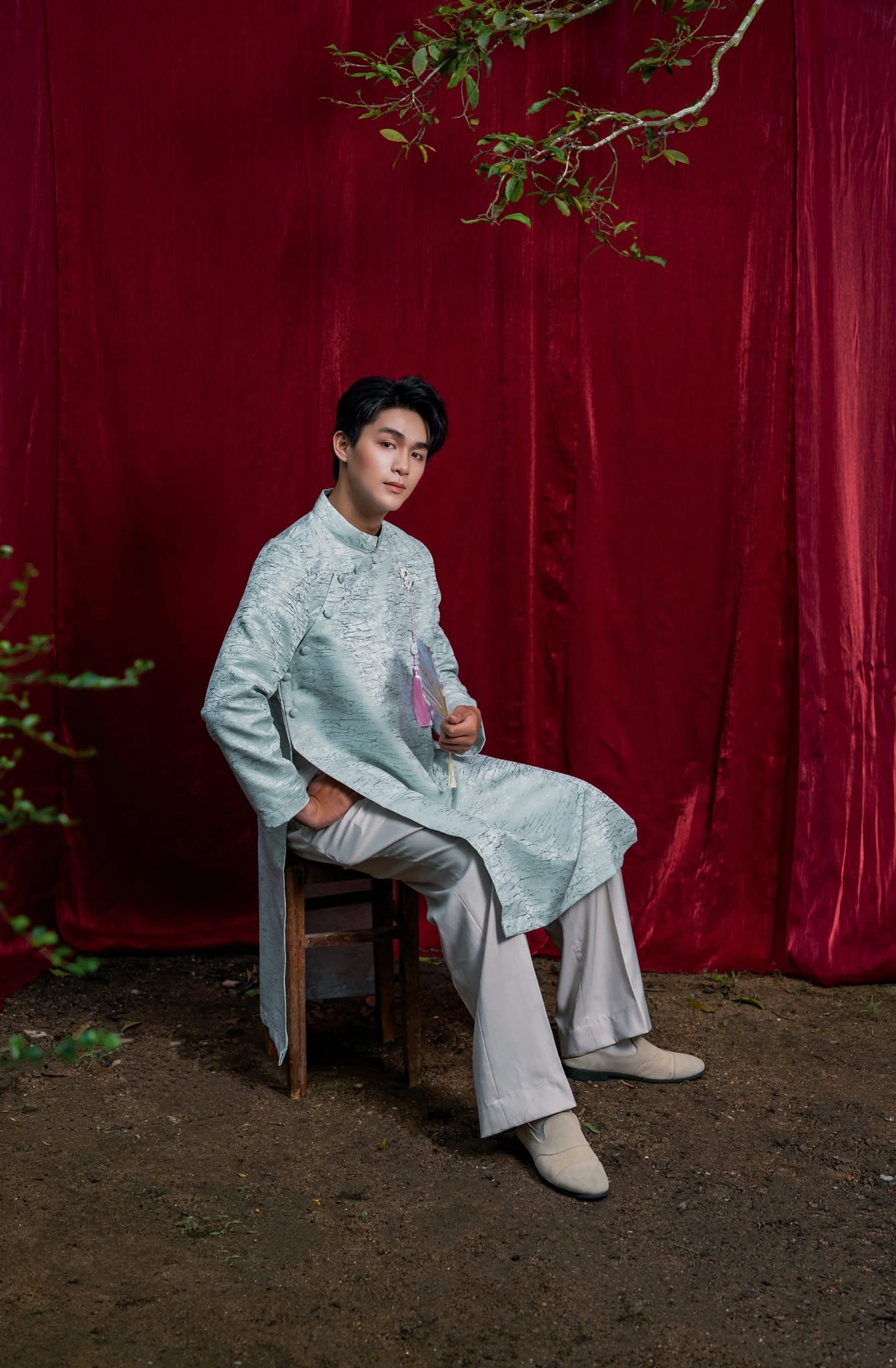 Hoàng Thị ’26 Là hành trình xuôi về miền Tây, nơi dòng Cửu Long đánh thức những ký ức dịu êm về người đàn ông đã bình thản đi qua bao mùa nước nổi mà thương hiệu THER muốn mang đến cho bộ sưu tập áo dài 2026. Ảnh hưởng của Đông Dương được thể hiện qua các trang phục gam màu phảng phất nét cổ xưa như xanh rêu mái đình, ánh vàng nhạt của tường vôi cũ và sắc đỏ mùa lễ hội. Tất cả tạo nên một không gian thị giác nơi người đàn ông hiện diện như phần hồn của kiến trúc và văn hoá phương Nam là sự cân bằng, chỉn chu và đầy tự trọng.