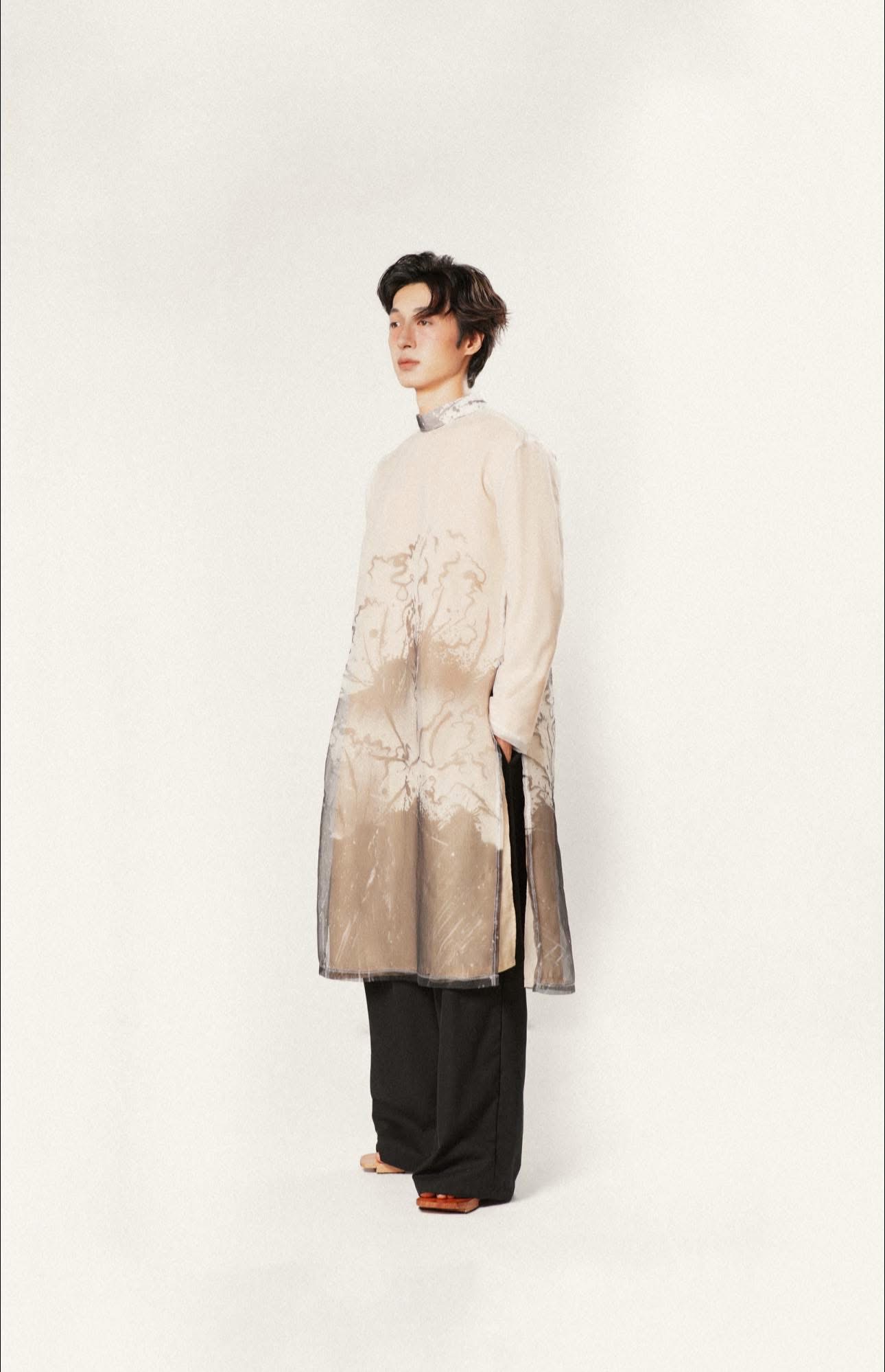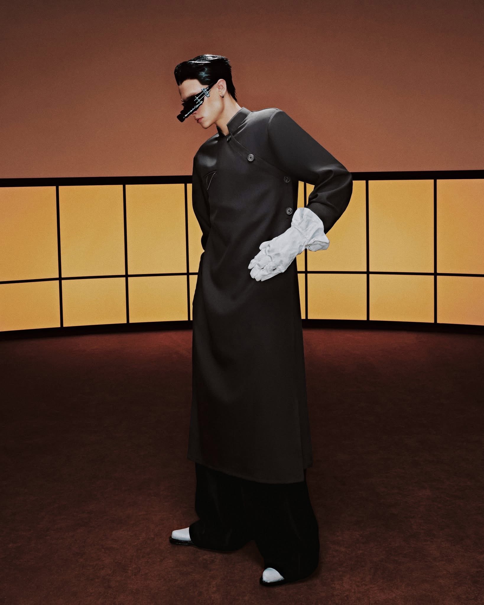 Áo dài trong bộ sưu tập của thương hiệu OUTOFSIGHT được tiếp cận như một cấu trúc lạ mắt kết hợp giữa tính hiện đại và tinh thần truyền thốn. Phom dáng quen thuộc được giữ lại nhưng được đội ngũ thiết kế xử lý một từ thay đổi hình thức, điều chỉnh tỷ lệ đến tập trung vào cấu trúc, kỹ thuật dựng phom và xử lý cầu vai. Ở đó, áo dài không được nhìn như một biểu tượng để tái hiện, mà như một cấu trúc đang tiếp tục tồn tại trong hiện tại. Những đặc tính vốn có về chiều dài, tính truyền thống vẫn được giữ lại, nhưng được đặt trong một ngôn ngữ thiết kế mới và hiện đại hơn.