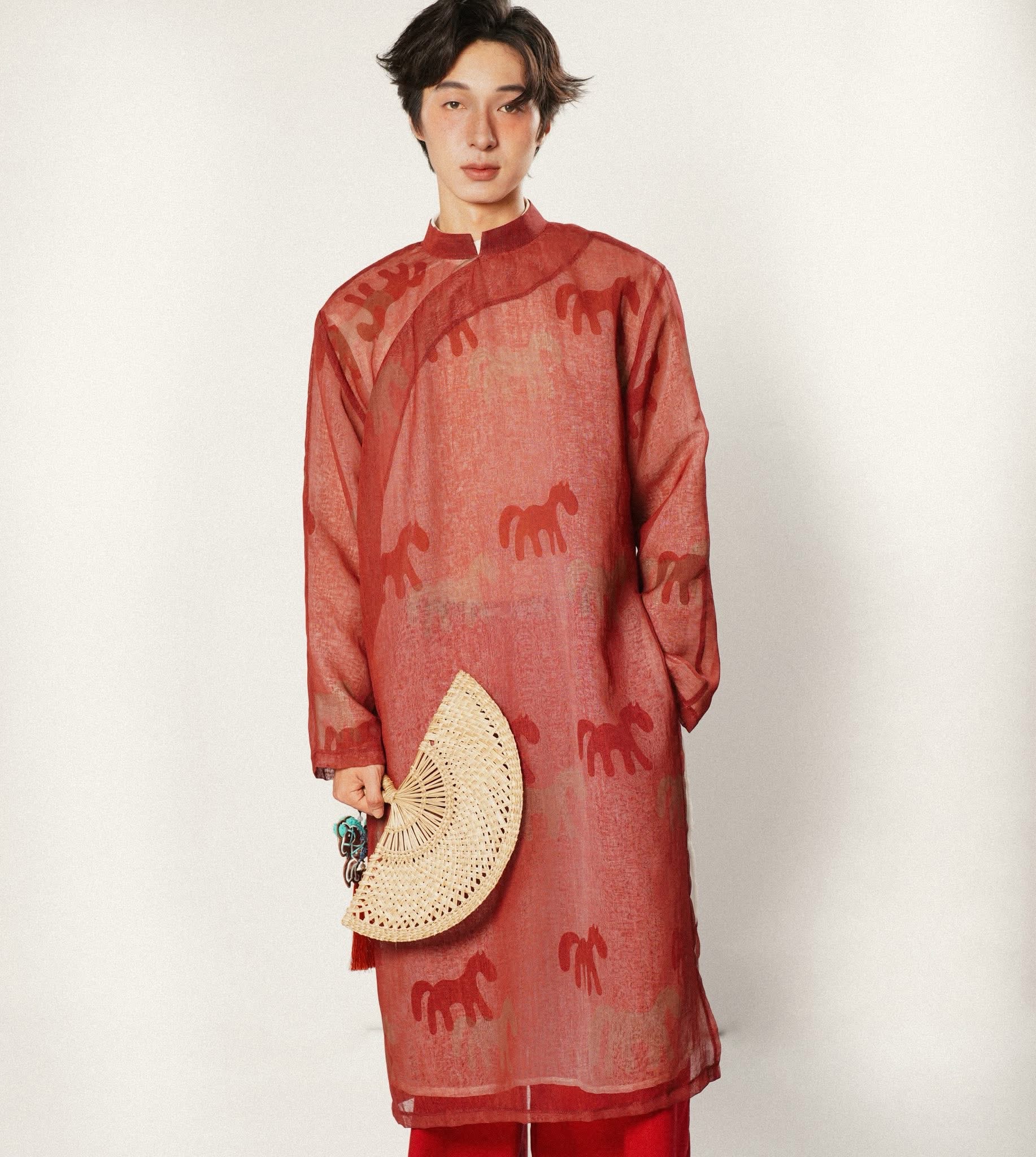 Phúc Mã Cát Tường chính là chủ đề cho bộ sưu tập mới của thương hiệu Magnus. Trong niềm không khí hân hoàn chào đón những ngày mùa Xuân đang rộn ràng đến, thương hiệu Việt mang đến những thiết kế áo dài như lời gửi gắm đến các chàng trai một lời chúc năm Mới mọi sự đều “Phúc Mã Cát Tường”. Điểm nhấn ấn tượng trên thiết kế chính là cách đội ngũ sáng tạo nên từng lớp áo dài tách rời để khách hàng có thể kết hợp thoải mái theo sở thích cá nhân.