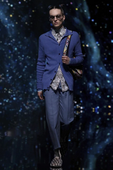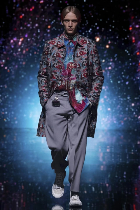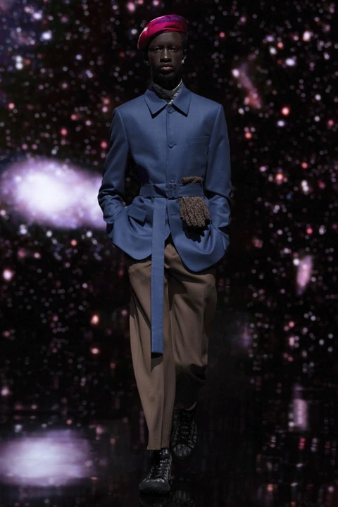 Giám đốc sáng tạo Kim Jones đã hợp nhất yếu tố truyền thống với các phát kiến của thời đại kỹ thuật số. Từ đó cho ra mắt một show diễn thời trang trực tuyến với bày trí sân khấu như một không giản ảo– tập trung khai thác hiệu ứng thị giác. Đây là sự phản chiếu cho công cuộc cách mạng số hóa của một nhà mốt di sản trong thế kỷ 21: đồng bộ giá trị thực tại, lịch sử và tầm nhìn tích cực về tương lai. Kim Jones thể hiện thái độ đó bằng sân khấu tái hiện không gian của vũ trụ đầy sao.