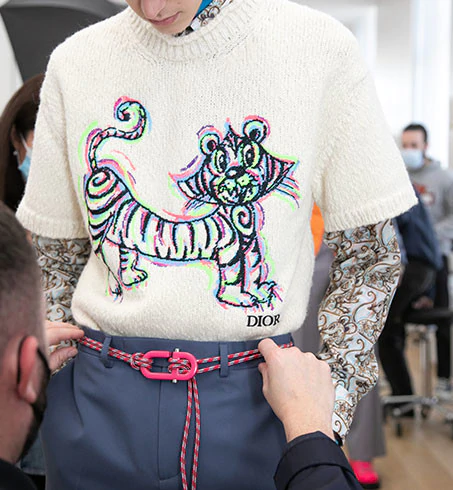 Văn hóa Trung Quốc trở thành nguồn cảm hứng mạnh mẽ cho bộ sưu tập lần này của Kim Jones dành cho Dior Men. Vị giám đốc sáng tạo khéo léo lồng ghép kỹ thuật may mặc và thêu đính biểu trưng của Trung Quốc vào mỗi thiết kế. Ngoài ra, những gam màu mang đậm chất châu Á như đỏ rực, vàng xanh cobalt.. cũng gợi nhớ đến cảm hứng Đông Phương trong bộ sưu tập.