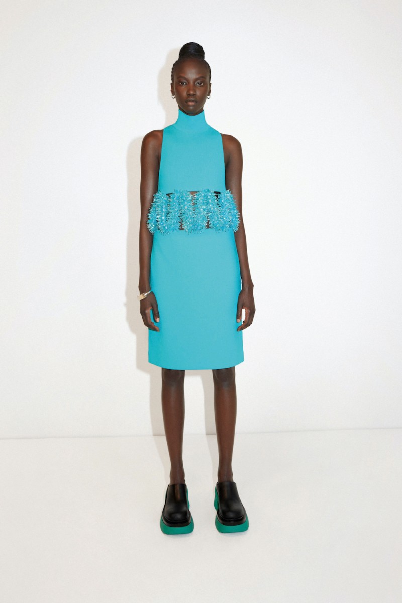Wardrobe 02 là một tinh thần hoàn toàn khác biệt với Salon 01. Nếu như ở bộ sưu tập trước, ta thấy được một Bottega Veneta khép kín, ẩn mình giữa mùa dịch, thì đến với Wardrobe 02, nhà mốt toát lên sức sống tươi mới và hân hoan, như thể sẵn sàng tiệc tùng bất cứ lúc nào. Những chiếc váy lấp lánh, chất liệu lông vũ, pha lê và đính cườm lấp lánh tỏa sáng rực rỡ cùng những gam màu rực nóng lấy xanh lá cây làm chủ đạo.