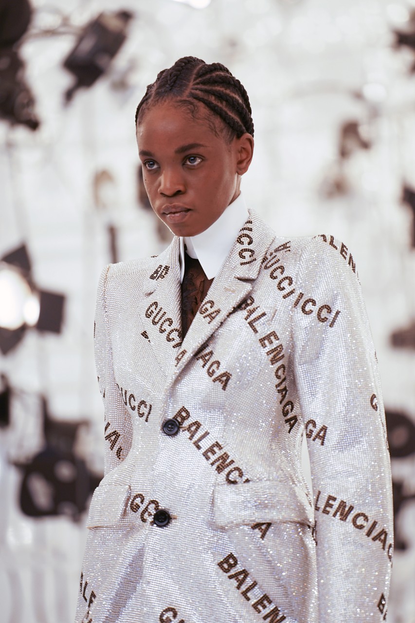 Sự giao thoa giữa Gucci và Balenciaga đến từ việc trao đổi phom dáng-họa tiết cho nhau. Với sự cho phép của Demna Gvasalia – Giám đốc Sáng tạo Balenciaga, Alessandro Michele giới thiệu thiết kế váy và áo khoác sequin với phom vai sắc nhọn – thiết kế đặc trưng từ thương hiệu nước Pháp. Sự kết hợp còn được tìm thấy ở dòng phụ kiện. Dòng túi Balenciaga Hourglass được chấm phá với họa tiết monogram của Gucci. Ngược lại, dòng túi Jackie 1961 của nhà mốt nước Ý cũng sở hữu họa tiết sọc từ dòng logo của thương hiệu anh em. Ngoài ra, các thiết kế nón cũng mang điểm nhấn riêng, khi lần lượt được khắc dòng chữ số 100 hoặc Savoy Club, tên của khách sạn mà Guccio Gucci từng làm việc trước khi thành lập nên nhà mốt trứ danh này.