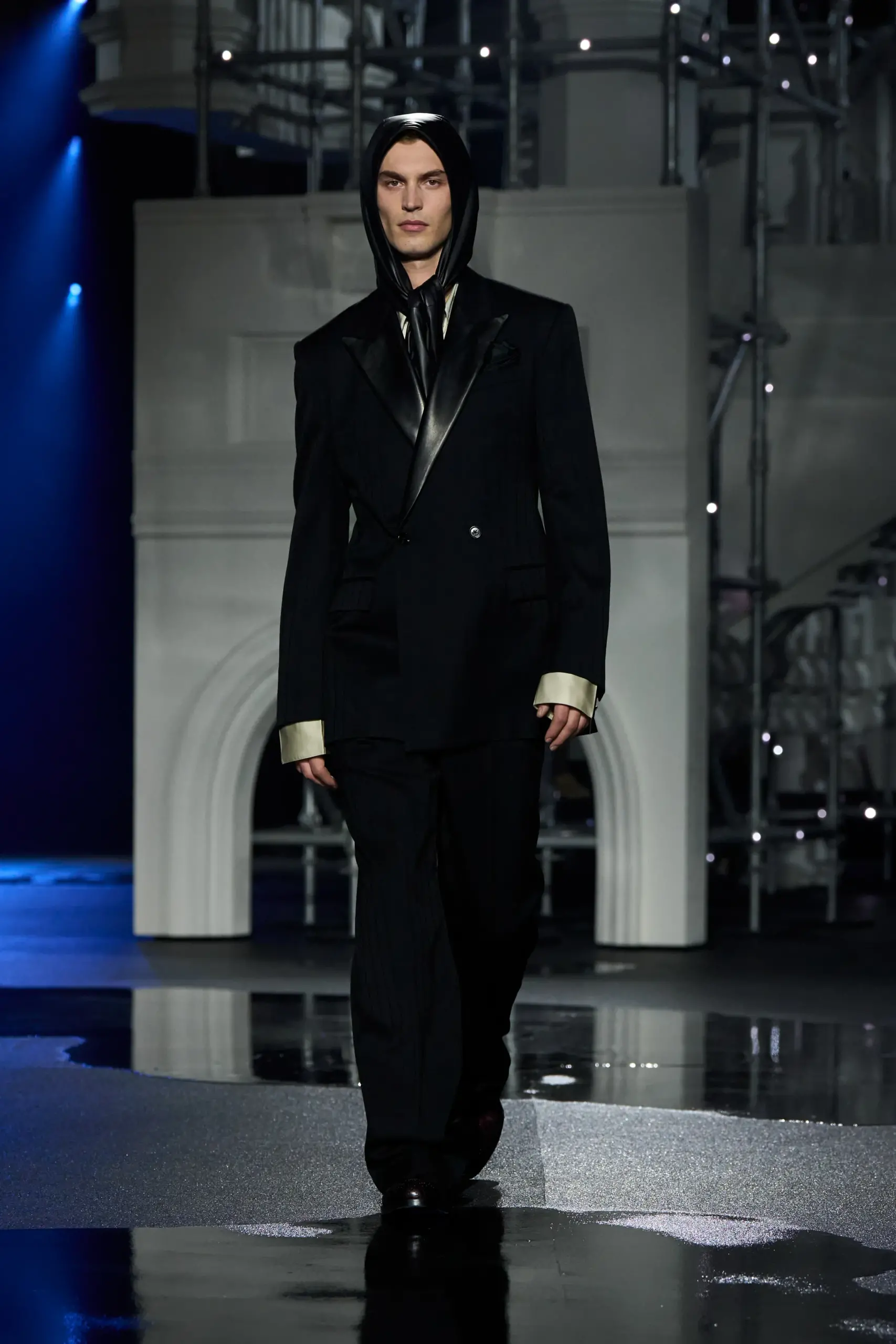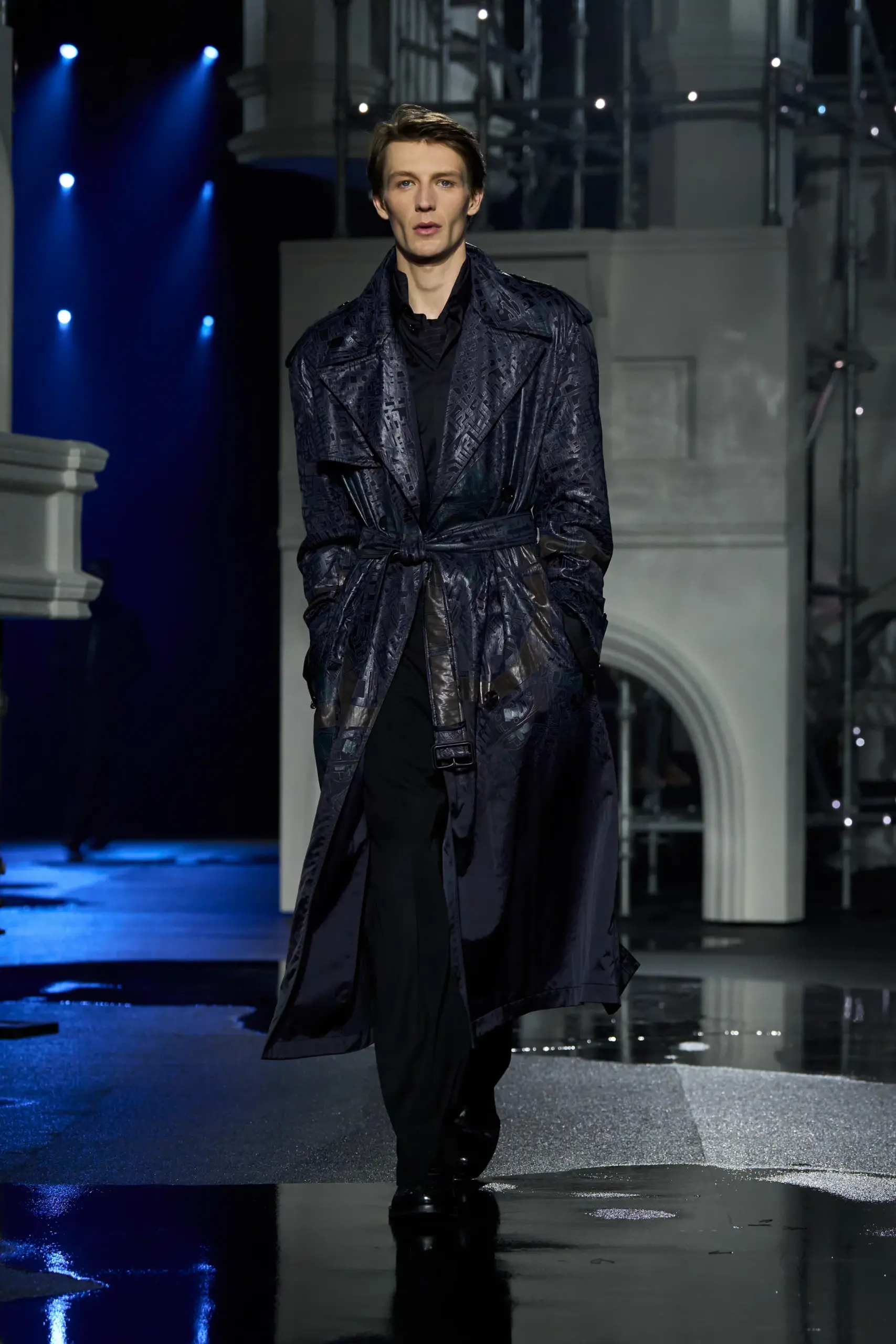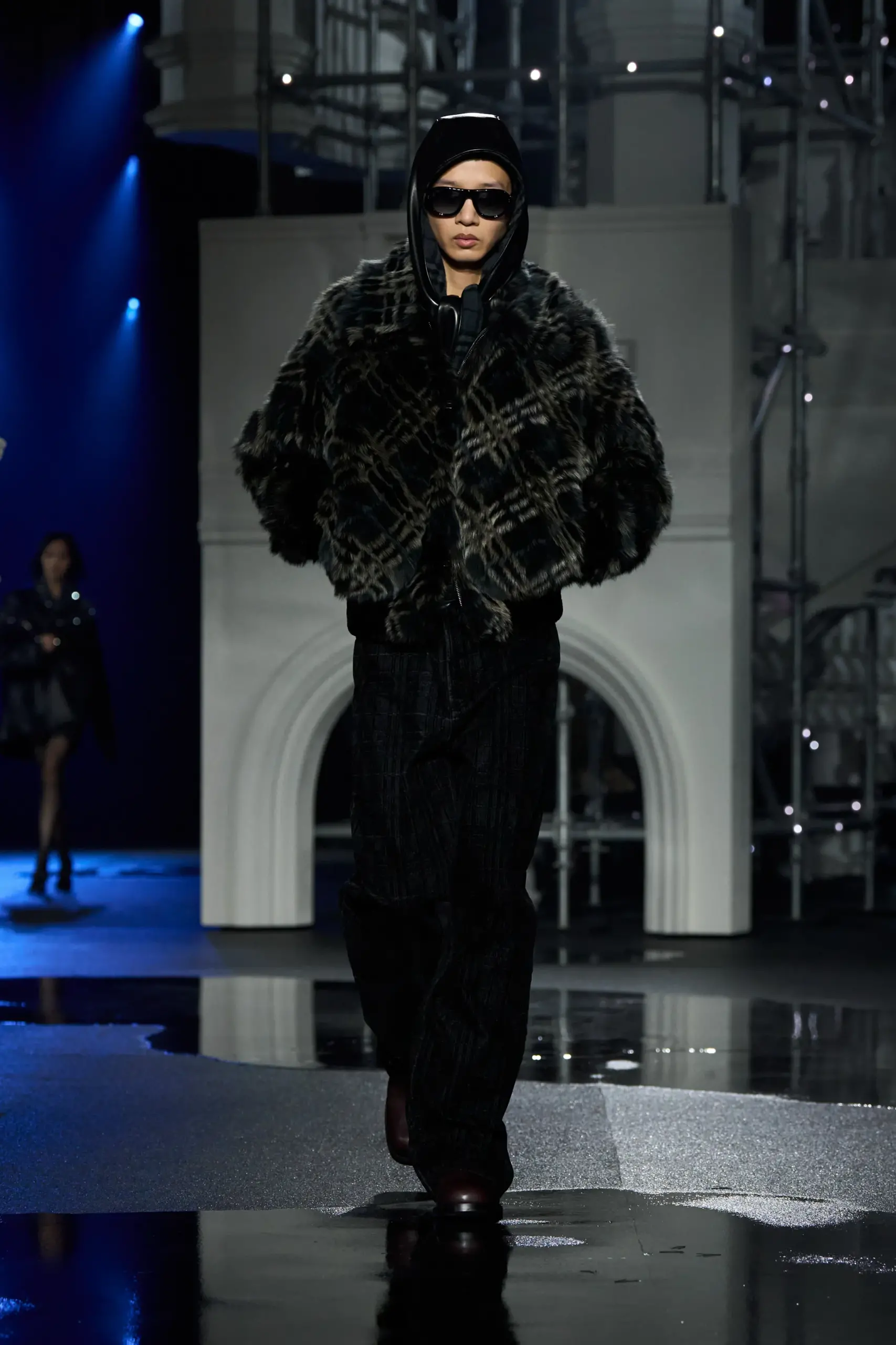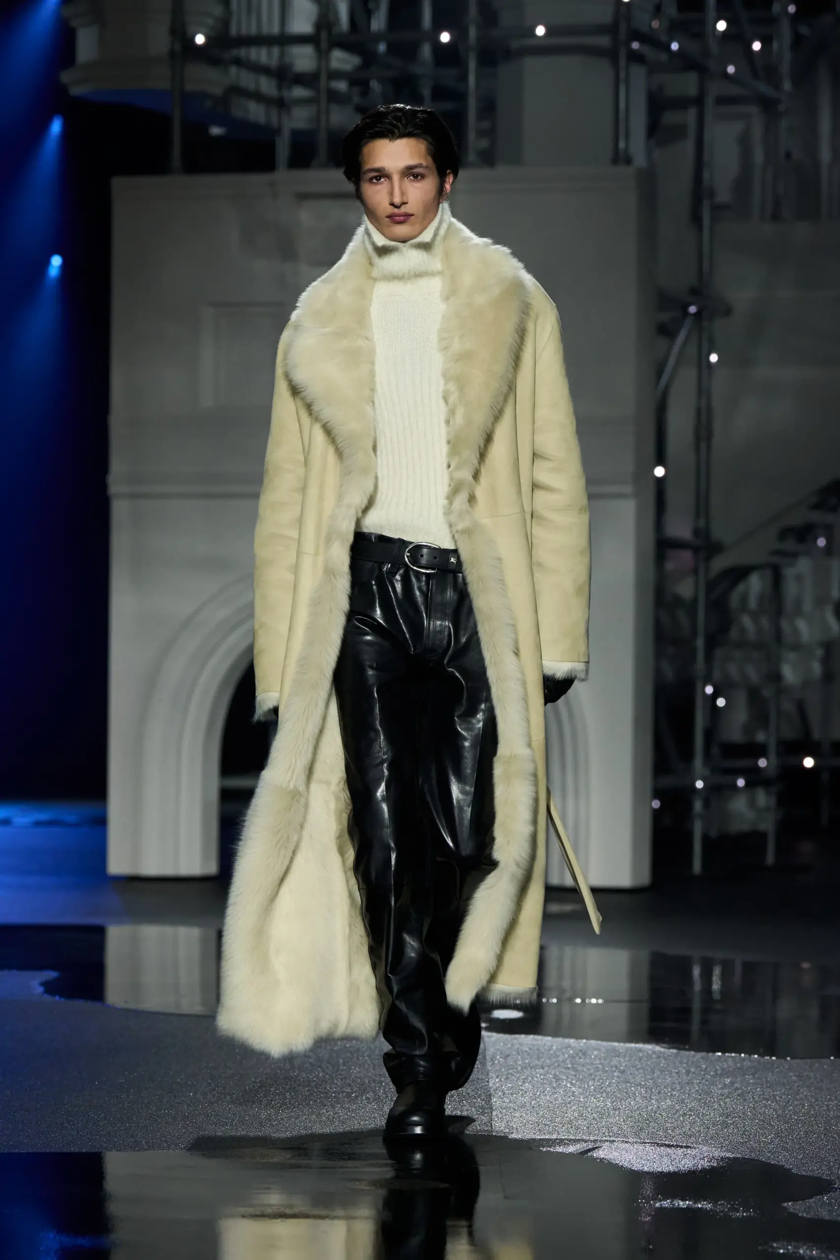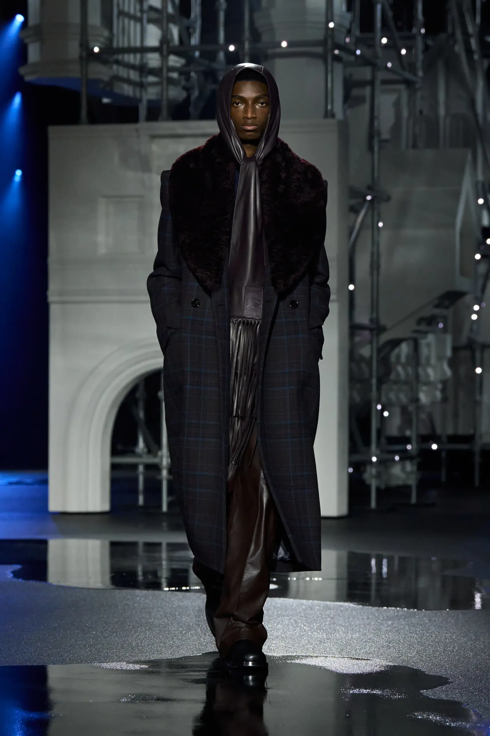 Burberry đã “bắt nhịp” với thời tiết mưa ẩm đặc trưng của London bằng một show diễn xoay quanh đời sống mùa đông nơi thành phố này khi bầu trời tối và chiếc ô trở thành phụ kiện không thể thiếu. Giám đốc sáng tạo Daniel Lee chia sẻ rằng studio của anh tại Horseferry House có nhiều cửa sổ và giếng trời, nơi anh có thể nghe tiếng mưa rơi suốt cả ngày. Chính âm thanh ấy đã truyền cảm hứng cho bộ sưu tập. Thương hiệu đã nâng tầm ý tưởng tại không gian rộng lớn của Old Billingsgate, tái hiện viễn cảnh mùa đông London với mô hình Cầu Tháp – Biểu tượng kiến trúc thế kỷ 19 của thành phố.