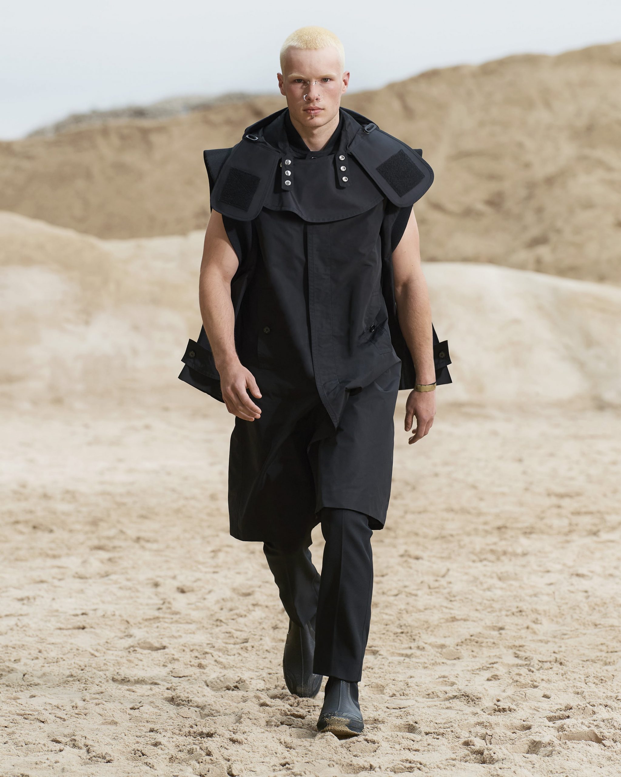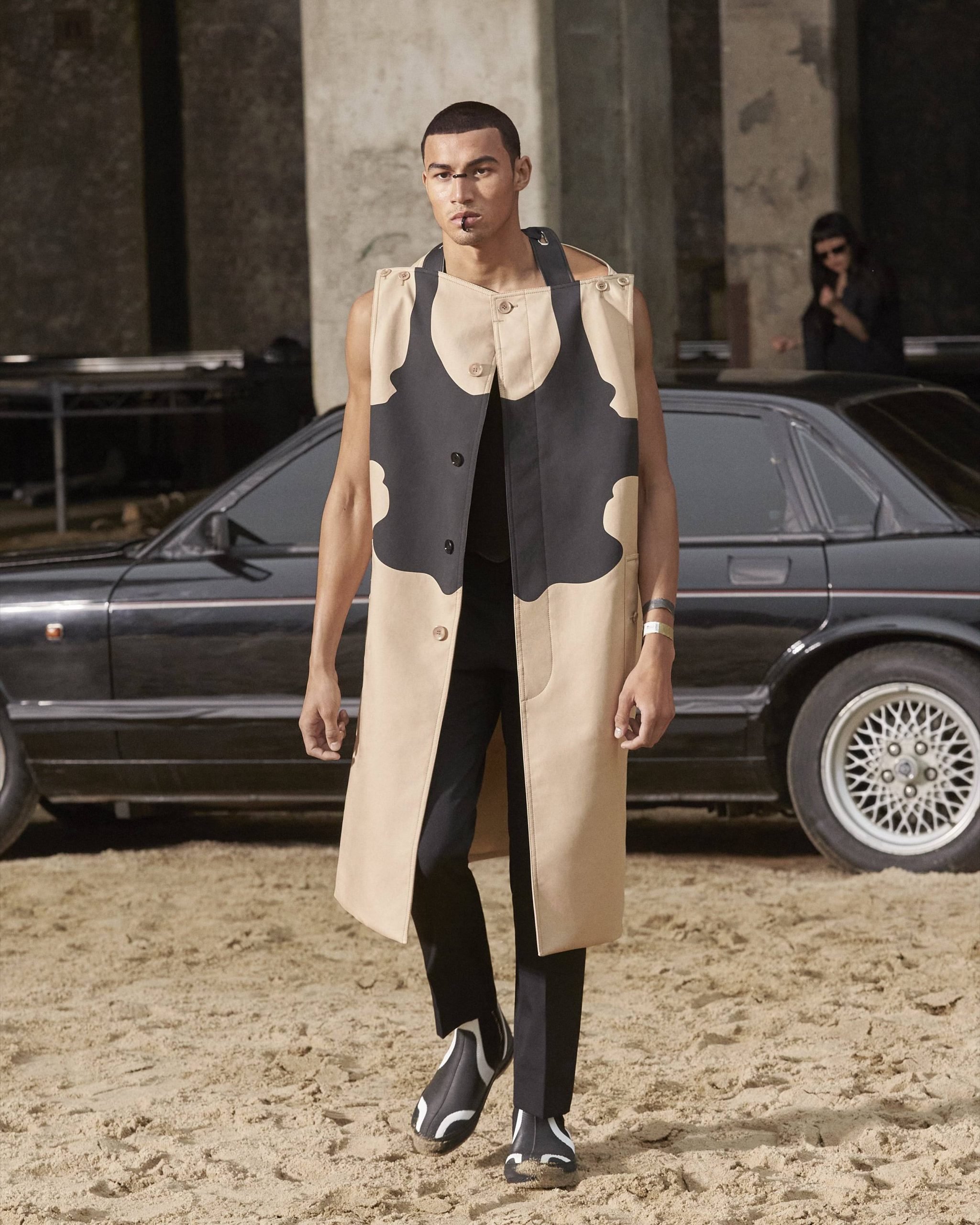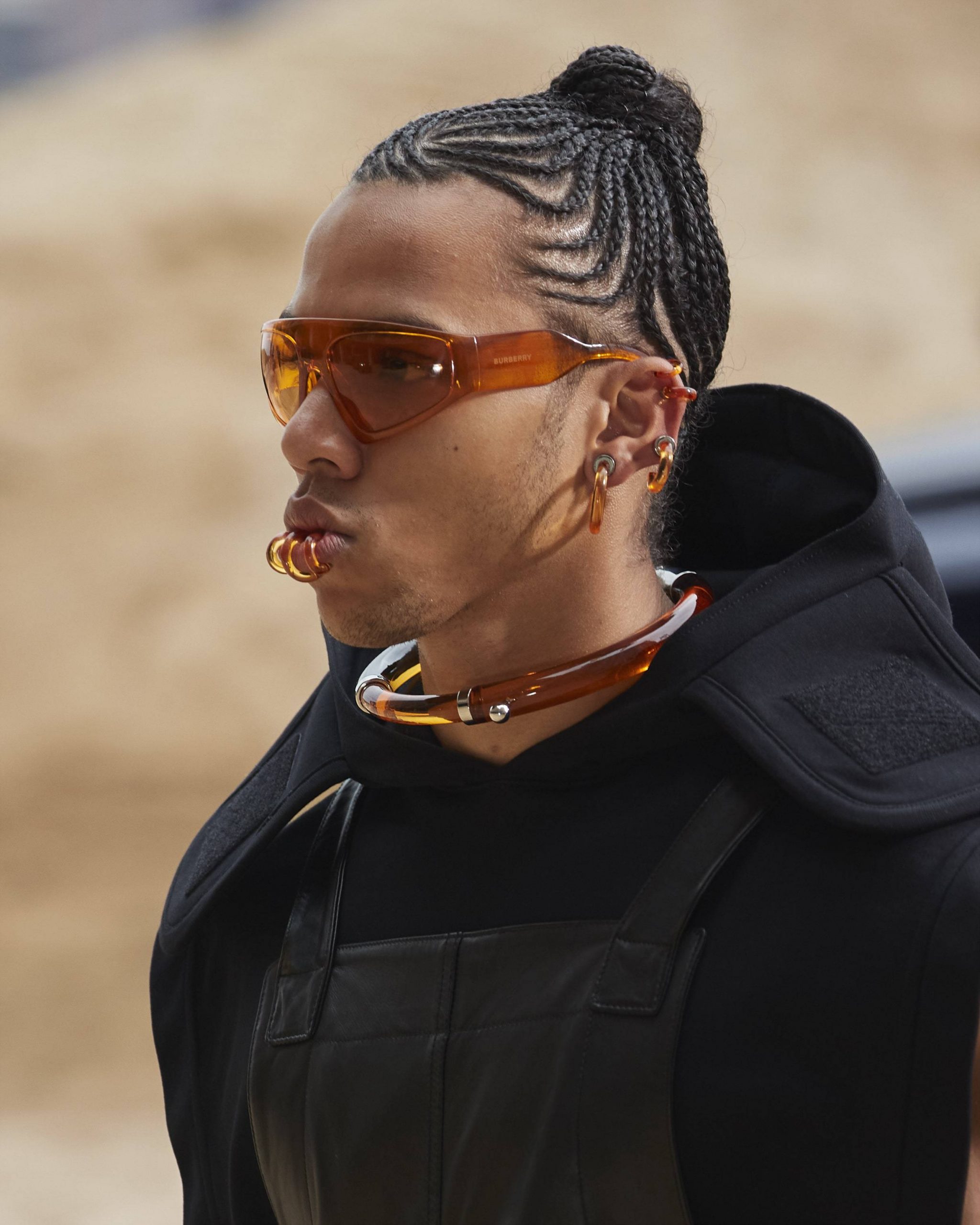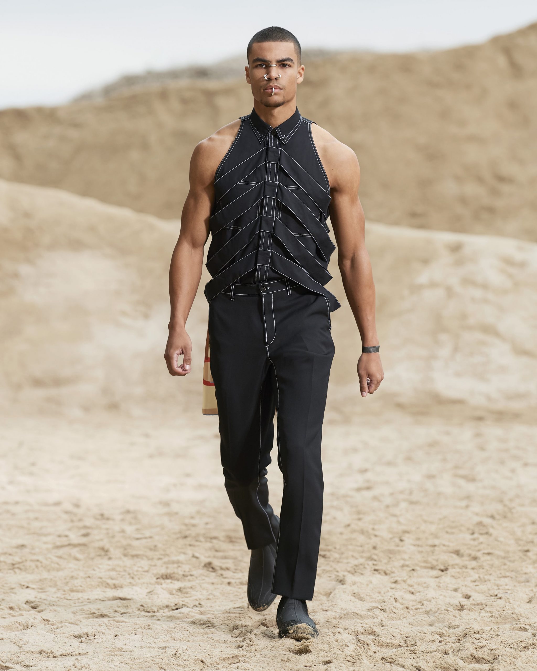 Bộ sưu tập thời trang Nam mùa Xuân Hè 2022 của Burberry, Riccardo Tisci đã áp dụng hình thức nghệ thuật siêu thực để thể nghiệm hai yếu tố: tự do và đồng điệu. Điều đó thể hiện qua cách một số cặp đôi người mẫu cõng người bạn đồng diễn và bước đi một cách hiên ngang, tự tại. Buổi trình diễn được ghi hình ngoài trời, địa hình là bãi cát tương phản với lối kiến trúc đô thị thô sơ và tối giản của khu Millennium Mills tại Royal Victoria Docks, phía Đông London. Một loạt những người mẫu trình diễn với tinh thần táo bạo, khoác lên mình những thiết kế mới nhất của Burberry, tạo nên bầu không gian của những khoảnh khắc trẻ trung tích cực, khai thác sức mạnh tinh thần, năng lượng của âm nhạc và những chuyển động.