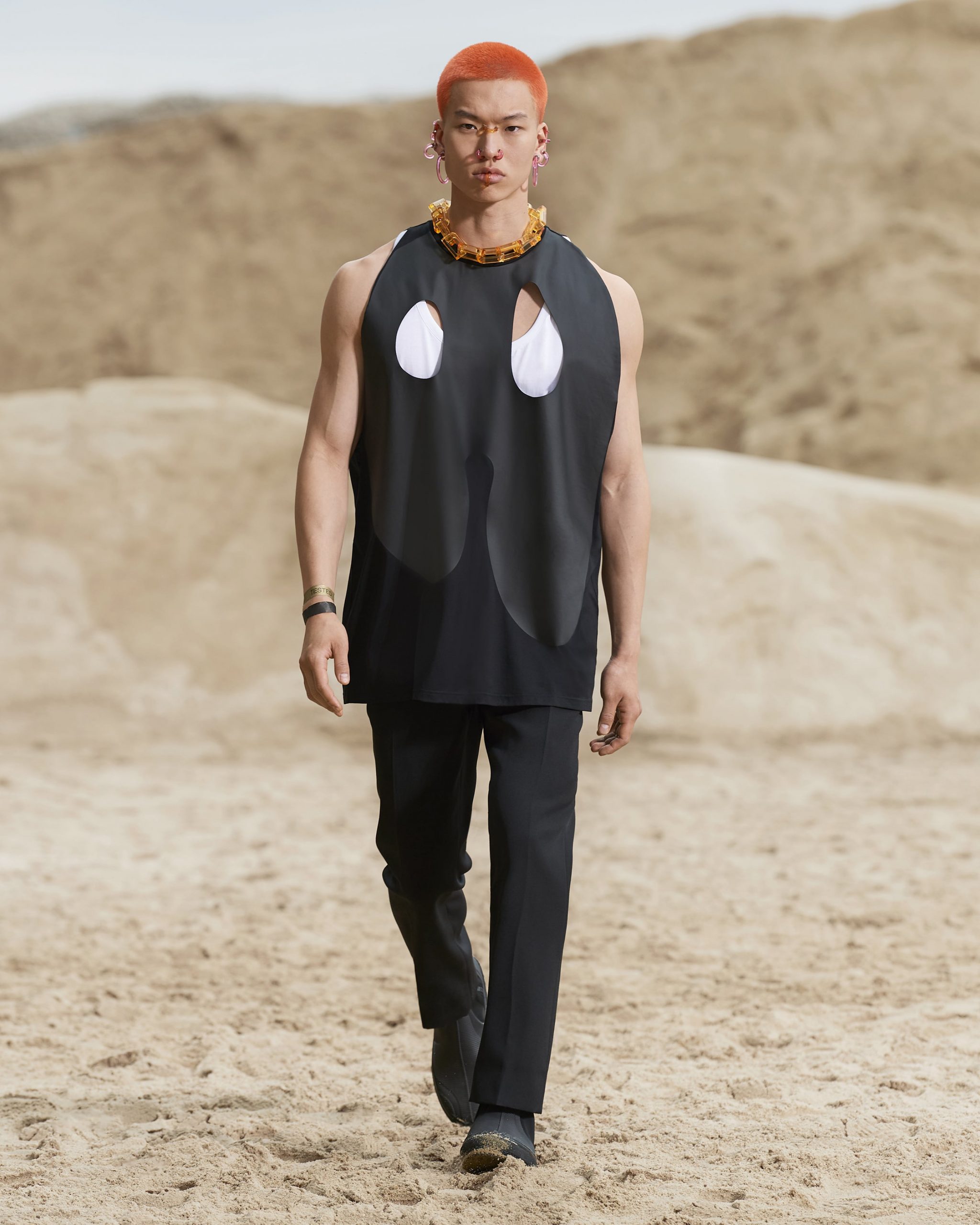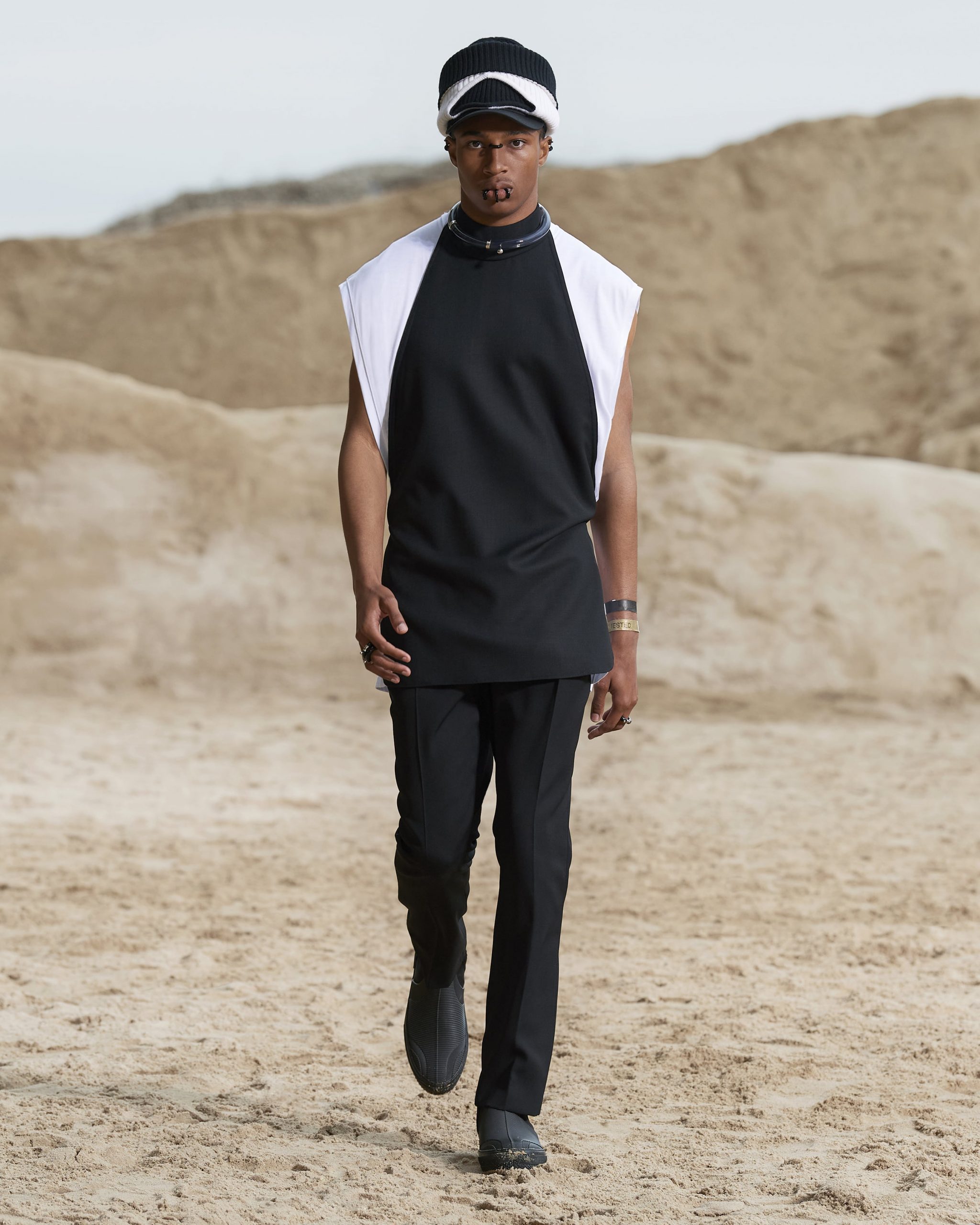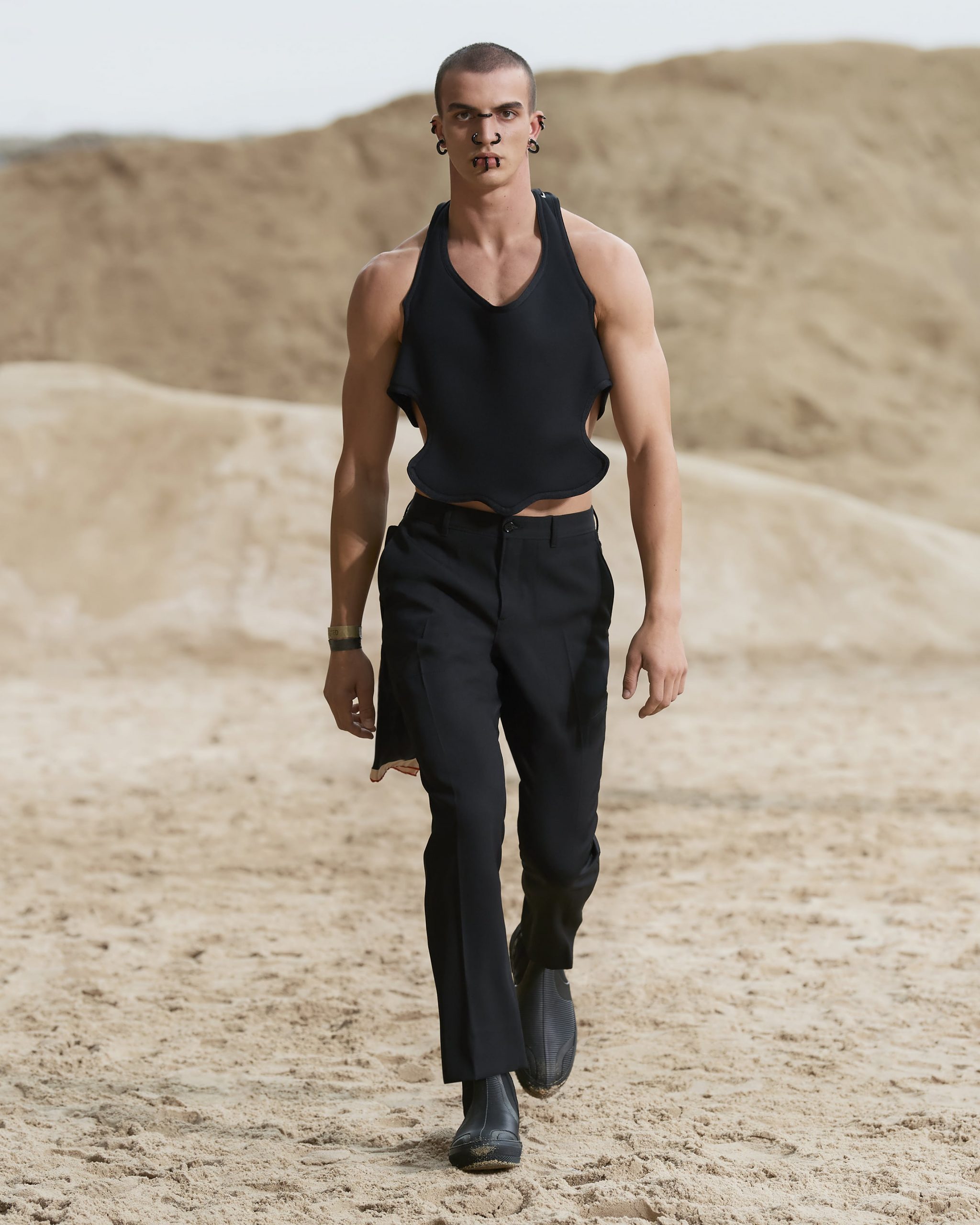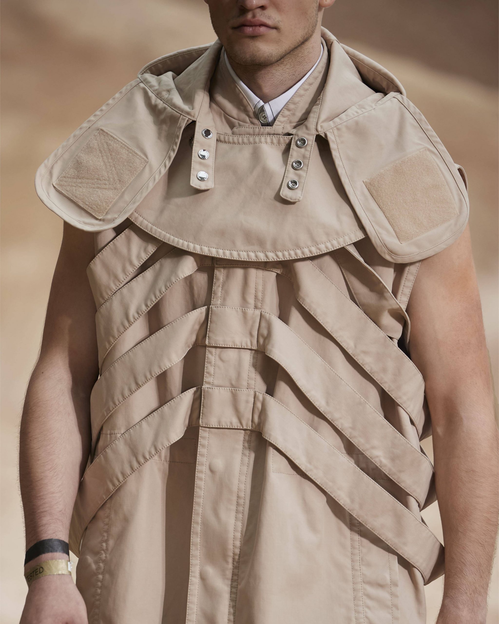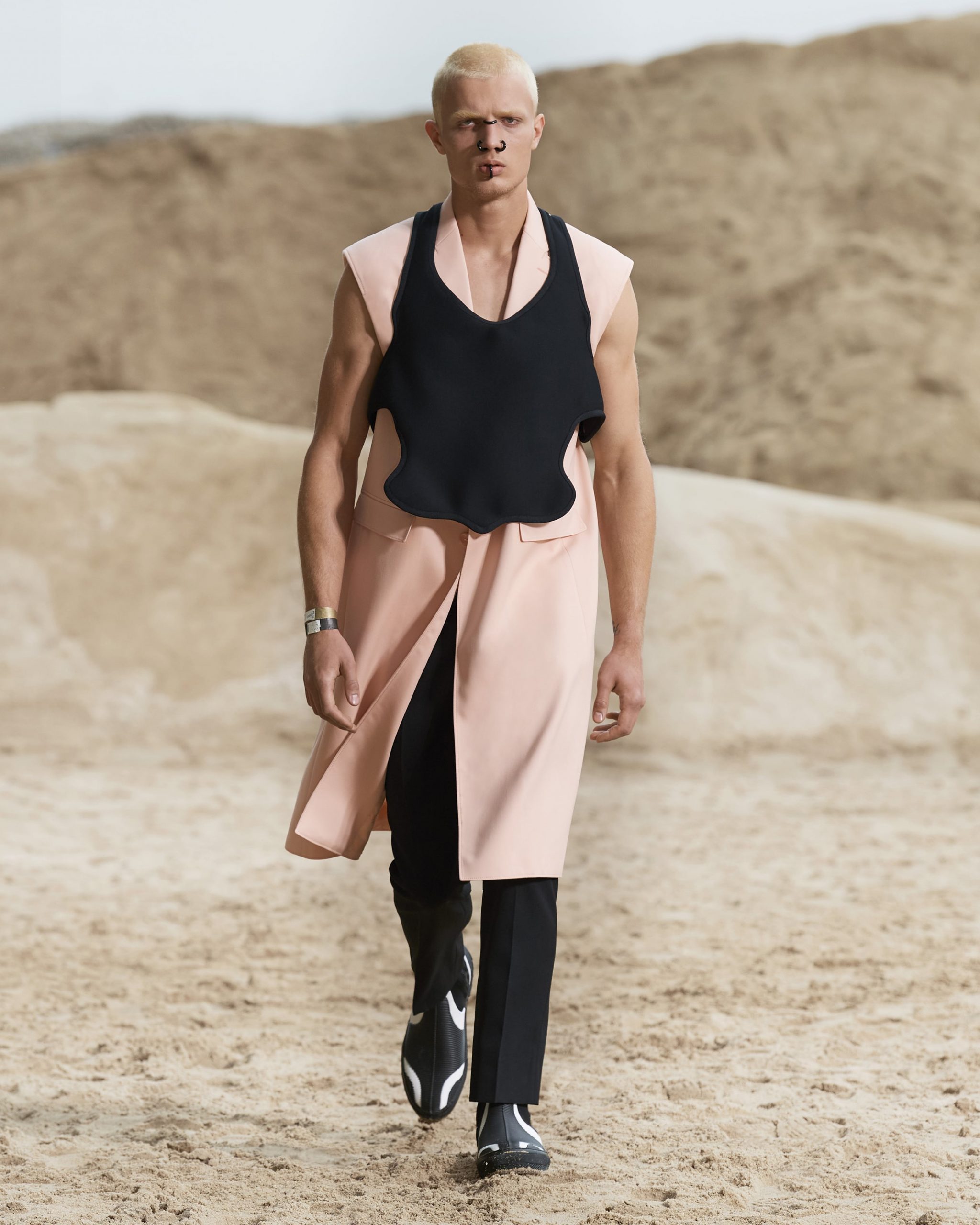 Bộ sưu tập thời trang Nam mùa Xuân Hè 2022 của Burberry, Riccardo Tisci đã áp dụng hình thức nghệ thuật siêu thực để thể nghiệm hai yếu tố: tự do và đồng điệu. Điều đó thể hiện qua cách một số cặp đôi người mẫu cõng người bạn đồng diễn và bước đi một cách hiên ngang, tự tại. Buổi trình diễn được ghi hình ngoài trời, địa hình là bãi cát tương phản với lối kiến trúc đô thị thô sơ và tối giản của khu Millennium Mills tại Royal Victoria Docks, phía Đông London. Một loạt những người mẫu trình diễn với tinh thần táo bạo, khoác lên mình những thiết kế mới nhất của Burberry, tạo nên bầu không gian của những khoảnh khắc trẻ trung tích cực, khai thác sức mạnh tinh thần, năng lượng của âm nhạc và những chuyển động.