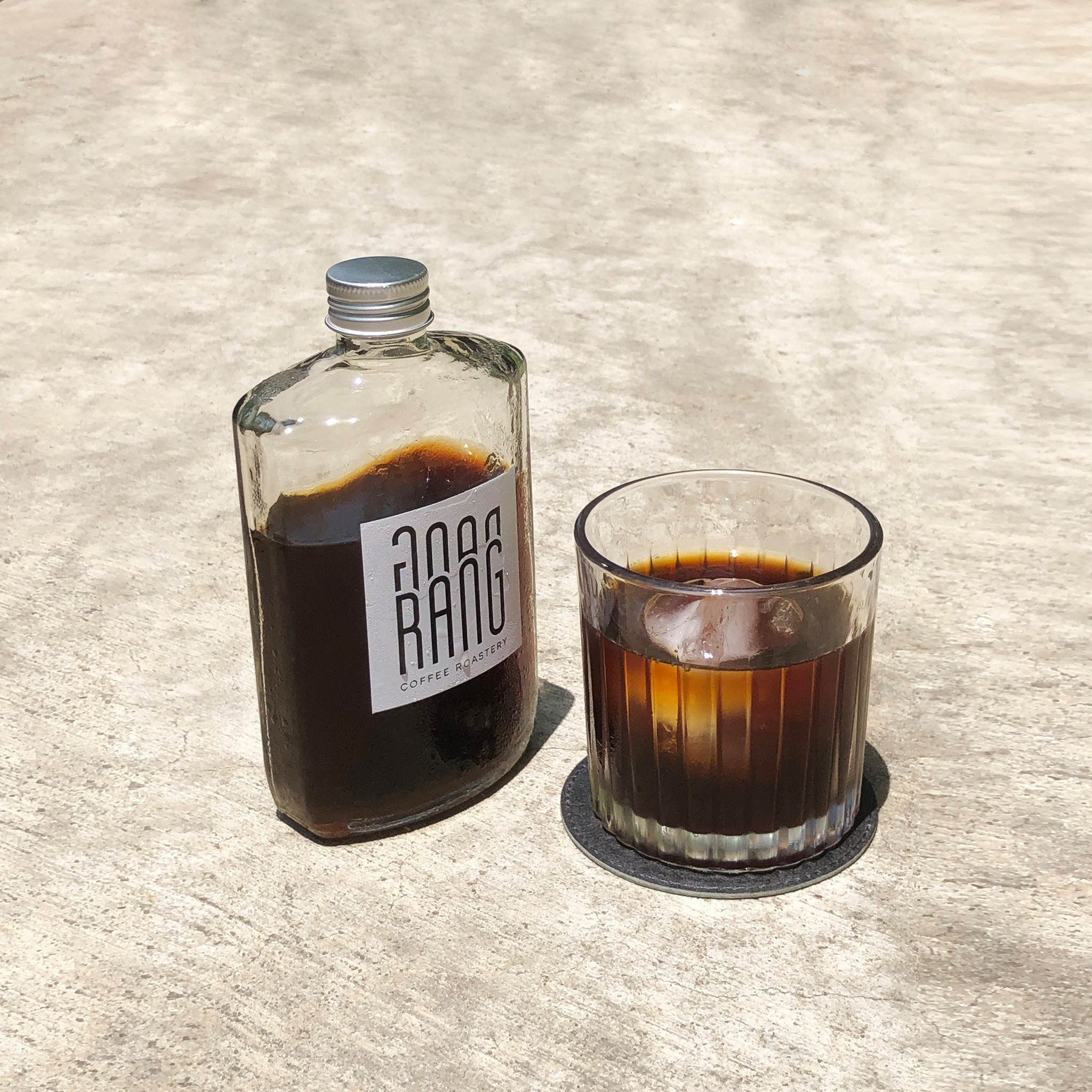 Cold Brew của Rang Rang được làm từ hỗn hợp hạt xay thô Colombia (độ cao vùng trồng dao động từ 1.200 mét đến 1.800 mét) và Ethiopia (độ cao trung bình từ 1290m – 3000m) để tăng thêm hương vị. Tỷ lệ pha 1/10 với 1 gr Cà phê/10 gr nước với thời gian ủ từ 16 tiếng – 24 tiếng.