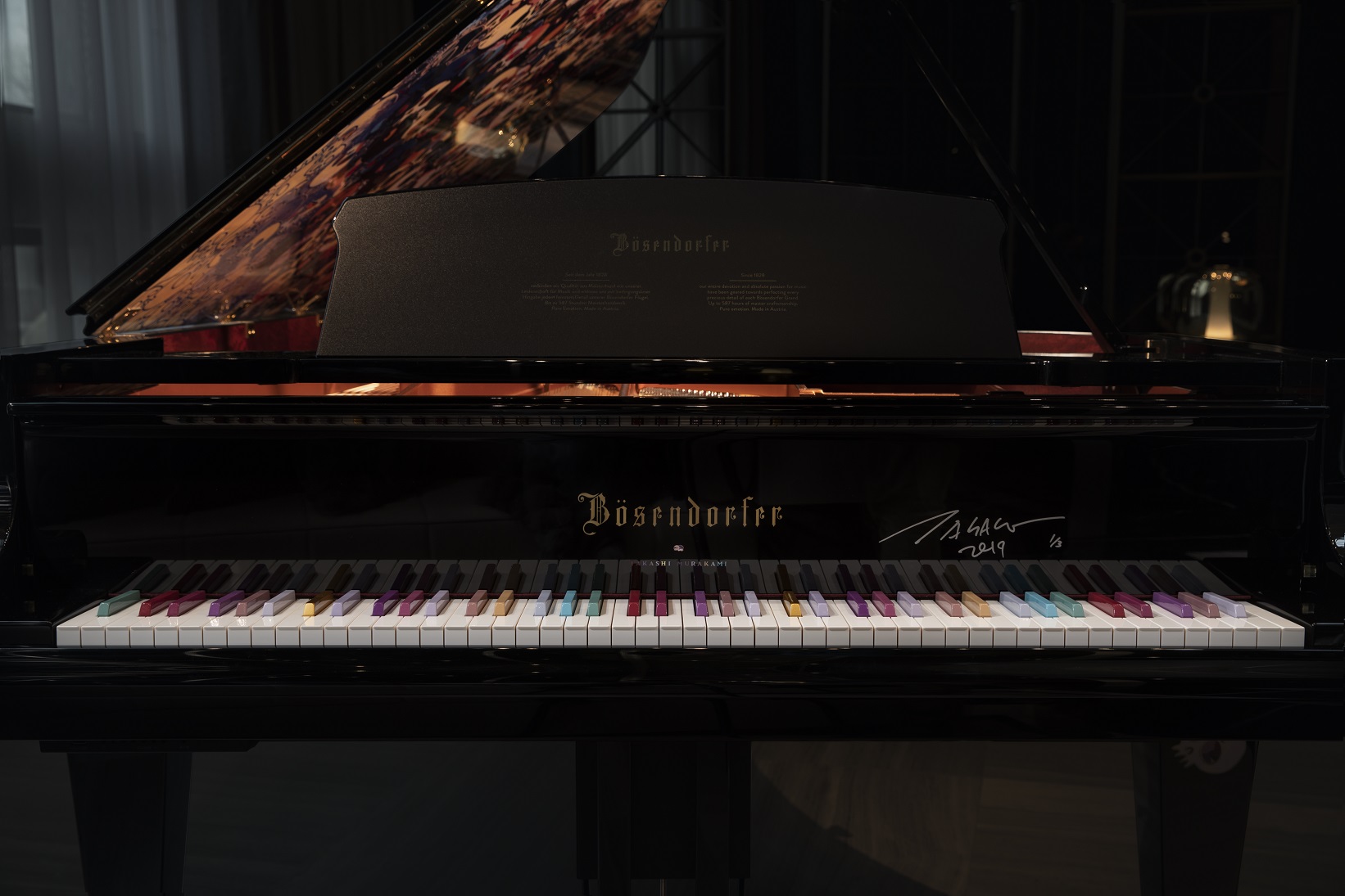 Chữ ký của Takashi Murakami được thể hiện trong màu sắc của thiết kế, cùng với một chi tiết họa tiết dưới chữ ký Bösendorfer phía bên trong và bên hông đàn. Thiết kế có chữ ký Takashi Murakami được giới hạn cho ba cây đại dương cầm 280 VC trên toàn thế giới.