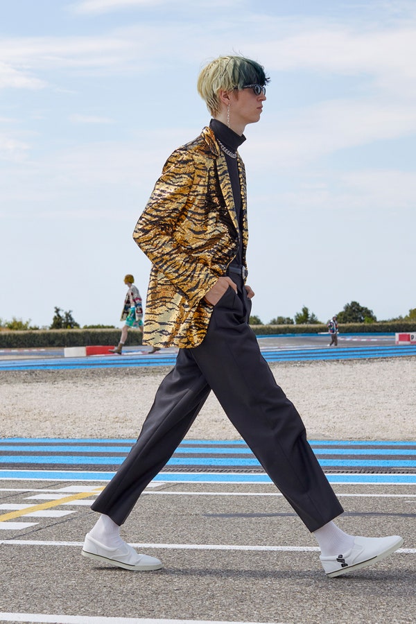 Nếu những mùa thời thời trang trước, Heidi Slimane đã tôn vinh nguồn gốc tư sản của nhà mốt Celine. Mùa hè này, ông ra mắt một bộ sưu tập lấy cảm hứng từ những video sáng tạo trên nền tảng TikTok. Điểm nhấn của các thiết kế nằm ở các hình in thoe trường phái Nghệ thuật quang học (Op-Art Prints) và những chiếc bóng lười nhác và váy quây dành cho nam giới. Show diễn mang đến một trong những thứ hiếm hoi trong năm: niềm vui trào dâng khi một nhà thiết kế bậc thầy hòa minh vào kho báu của một thế hệ khác để giải thích quy luật chuyển giao của các sáng kiến và xu hướng.