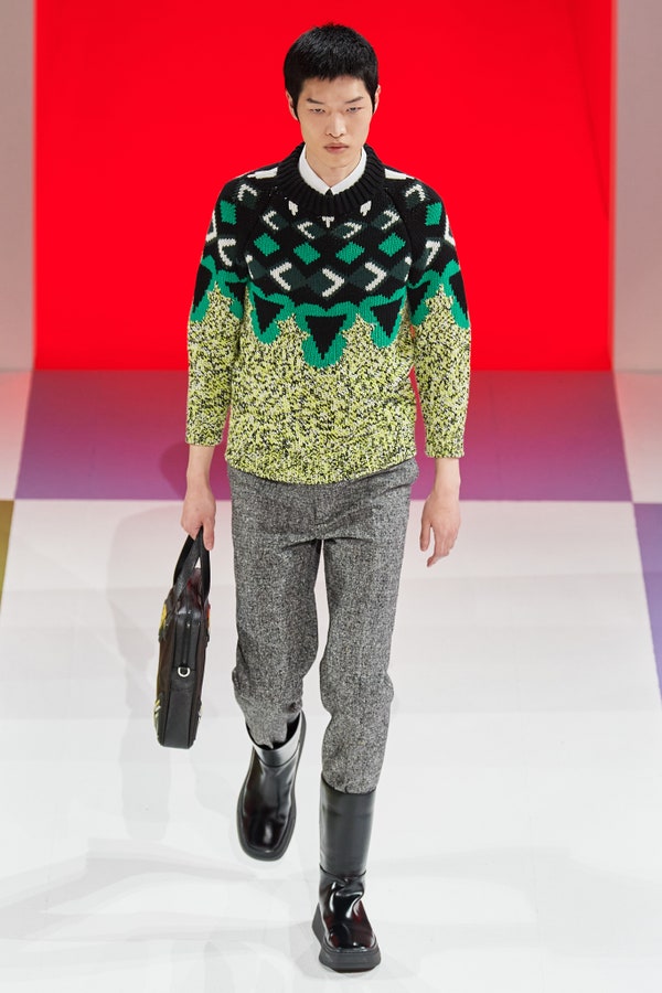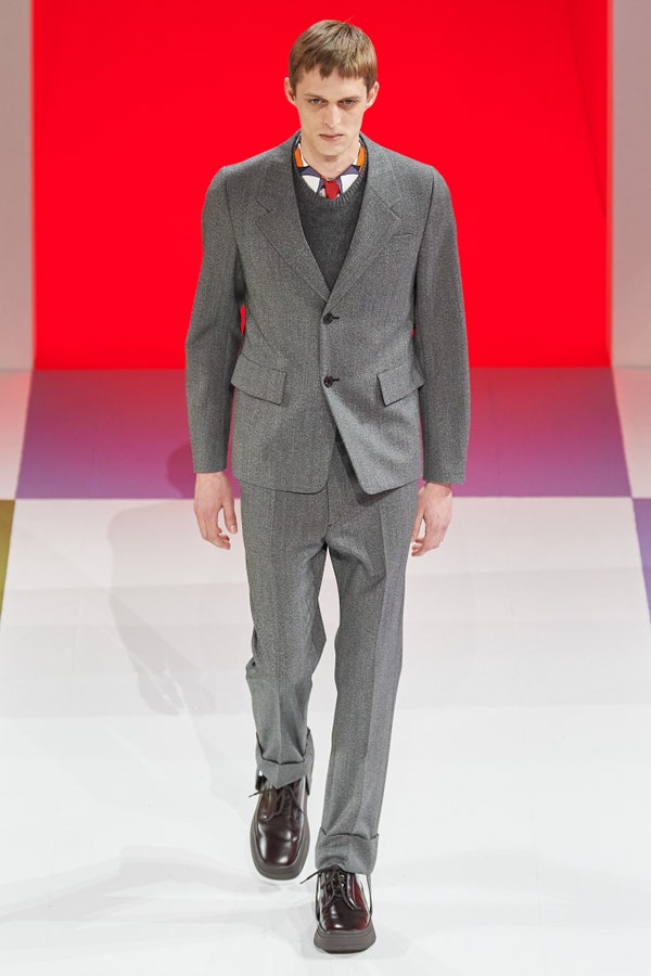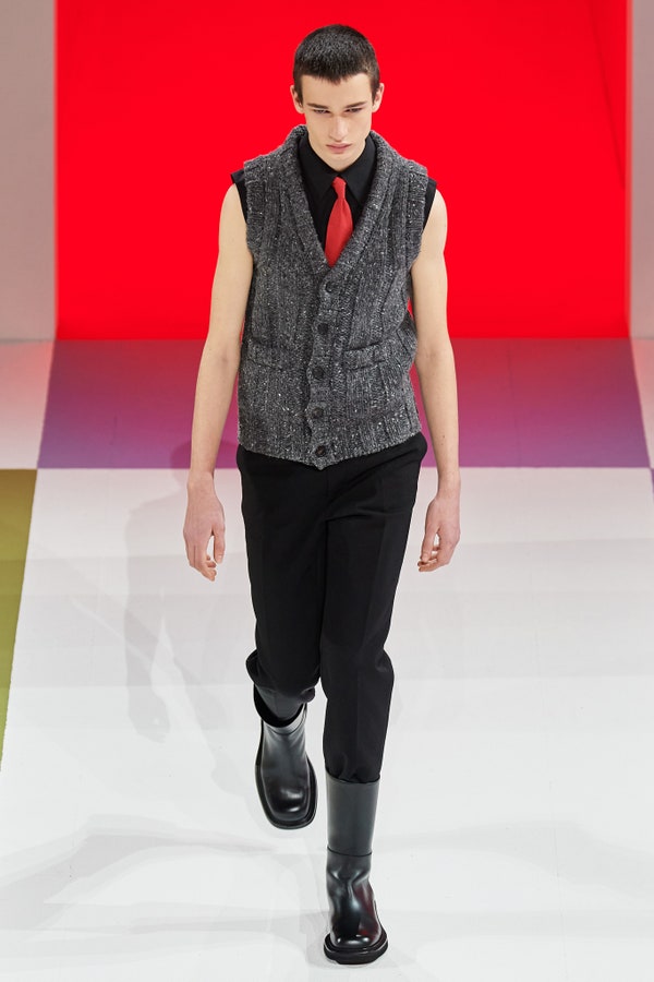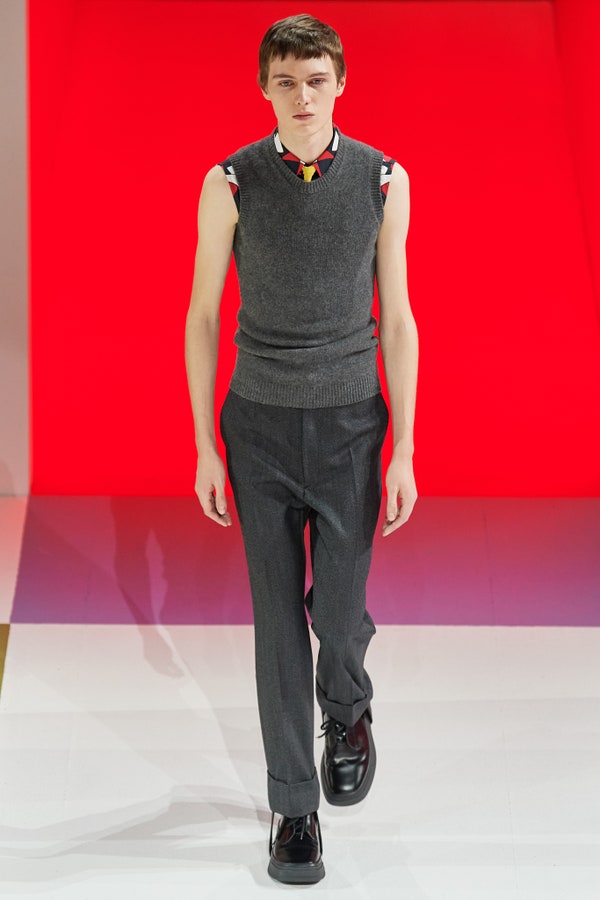 Đây là một năm đầy dấu ấn của Prada khi Raf Simons trở thành đối tác sáng tạo của hãng và quý bà Prada sáng tạo ra phong cách của năm khi phối sweatpants củng cà vạt vào tháng Tám. Tuy nhiên, bộ sưu tập của quý bà Prada trình diễn vào tháng Một mới chính là tuyên ngôn mạnh mẽ nhất của năm 2020.