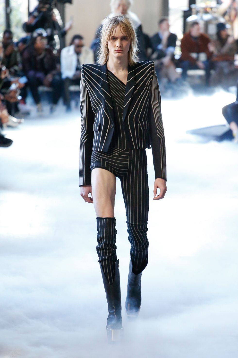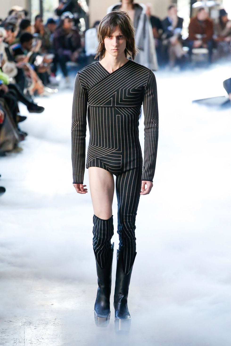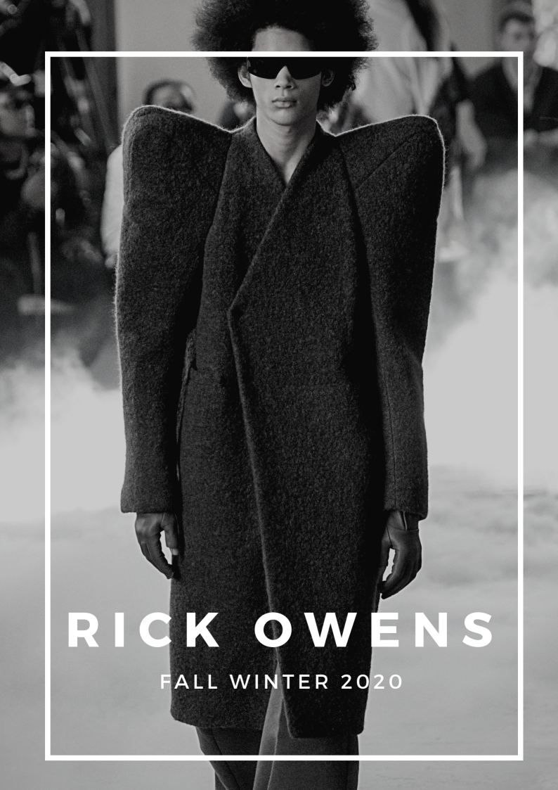 Có nhiều thứ về tuần lễ thời trang mà chúng ta không thích như thời tiết, hàng chờ dài đàng dặc hay giao thông kinh khủng. Nhưng những show diễn hoành tráng như Rick Owen tại Paris vào tháng Một năm nay khiến ta thở dài trong hoài niệm. Thiệp mời là những miếng kim loại nặng có khắc tên. Owens mang đến các đôi giày cùng các thiết kế áo khoác độn vai quá khổ đồ sộ, ồn ào. Bản thân mỗi bộ trang phục là một màn trình diễn và sẽ định hình xu hướng thời trang menswear năm sau.