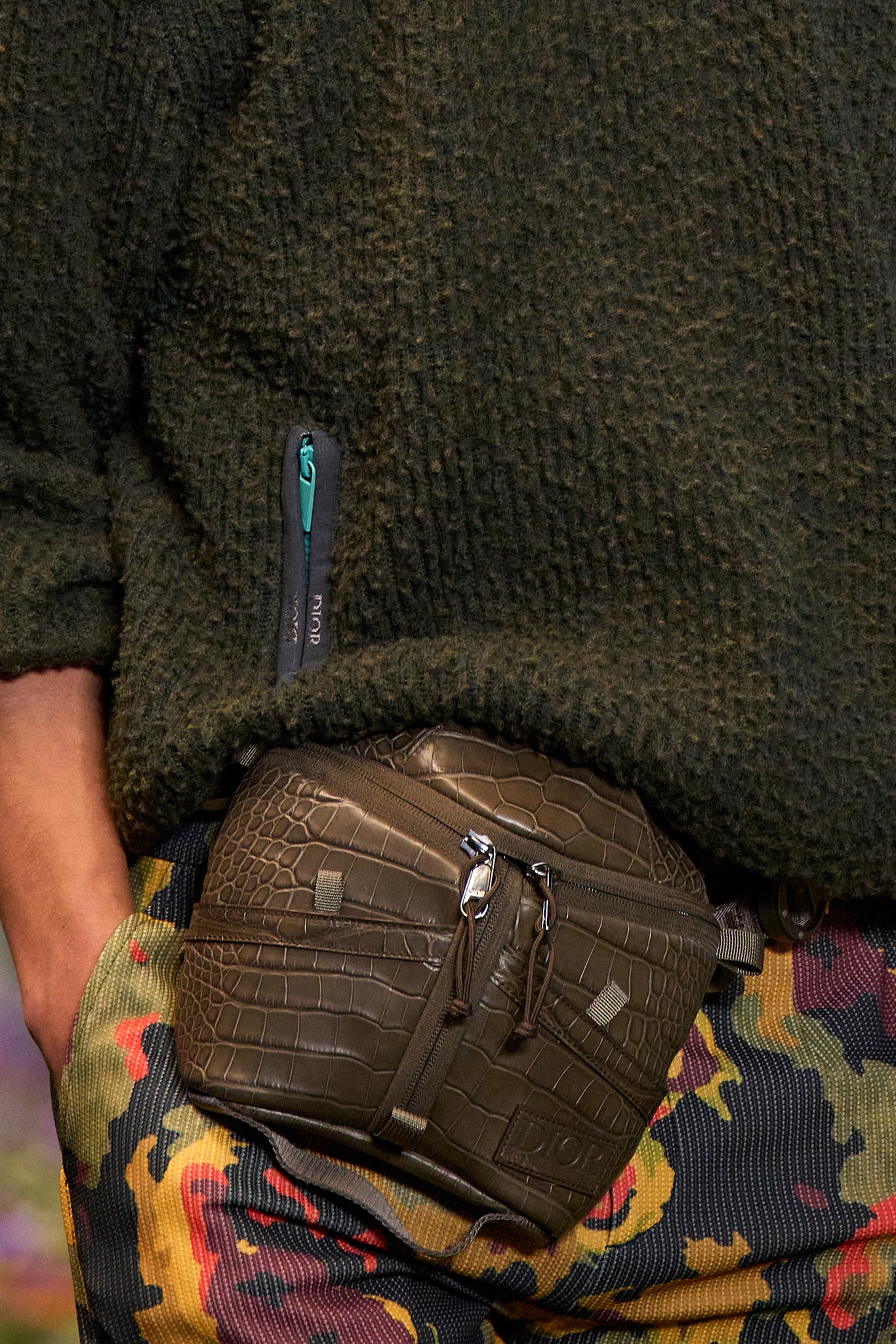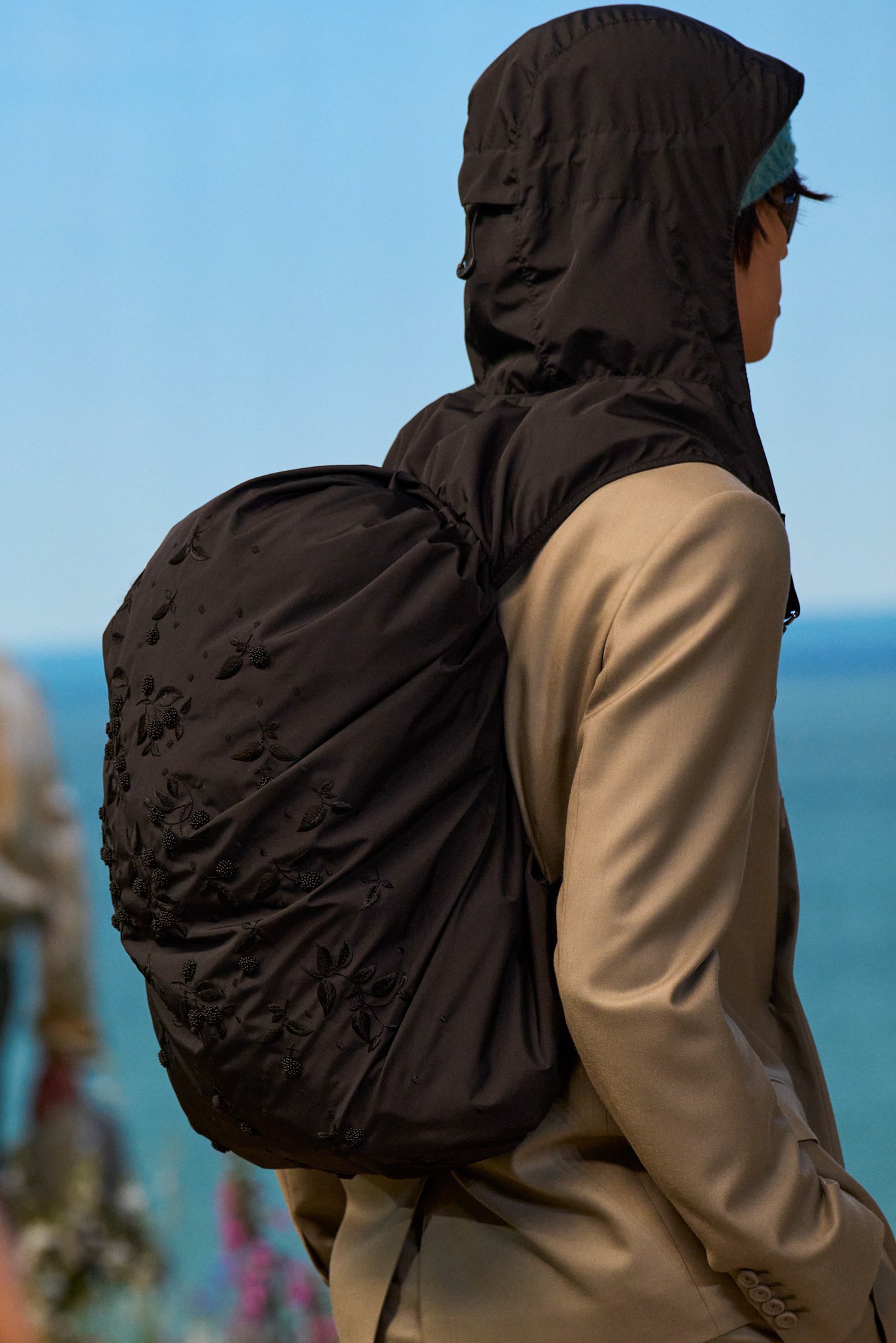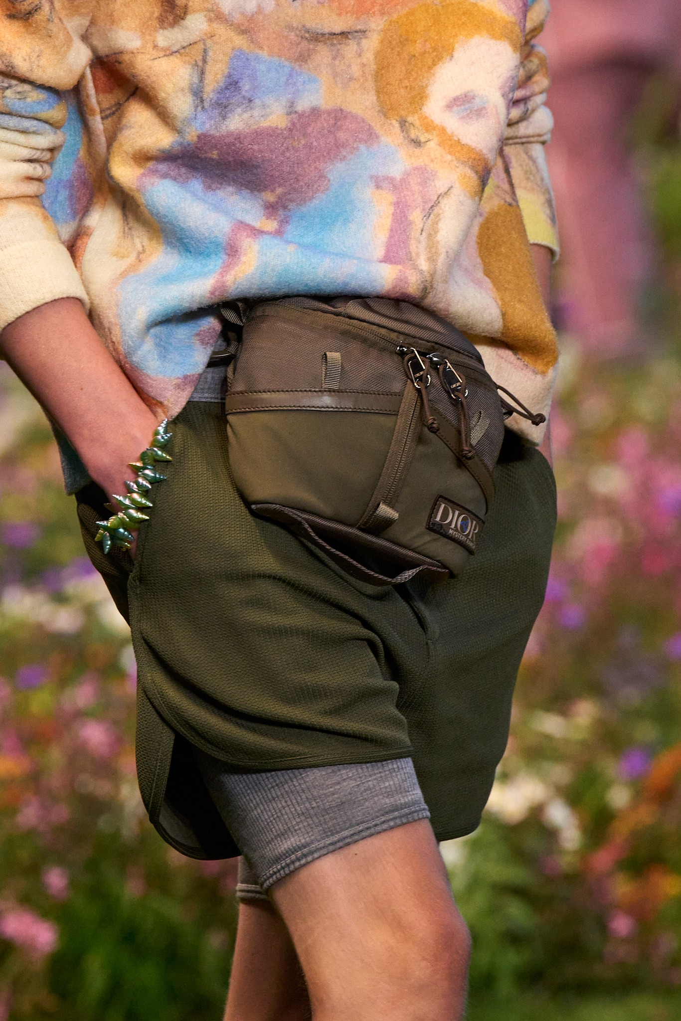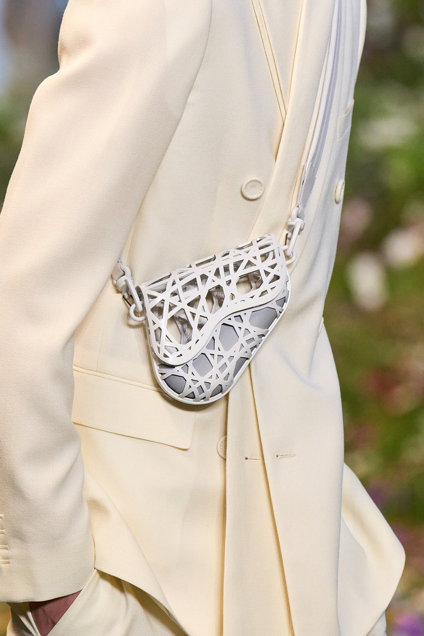 Giữa những tính chất ứng dụng cần có, Kim Jones vẫn giữ được sự lãng mạn của Dior qua tông màu xám-hồng phấn đặc trưng, cùng những tác phẩm nghệ thuật về tình yêu.
