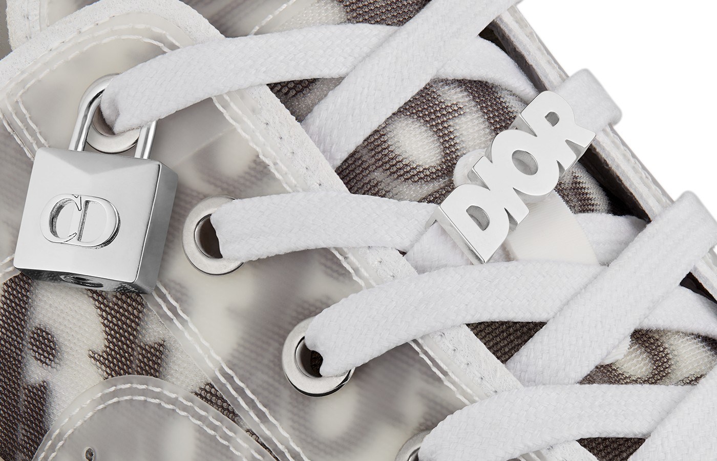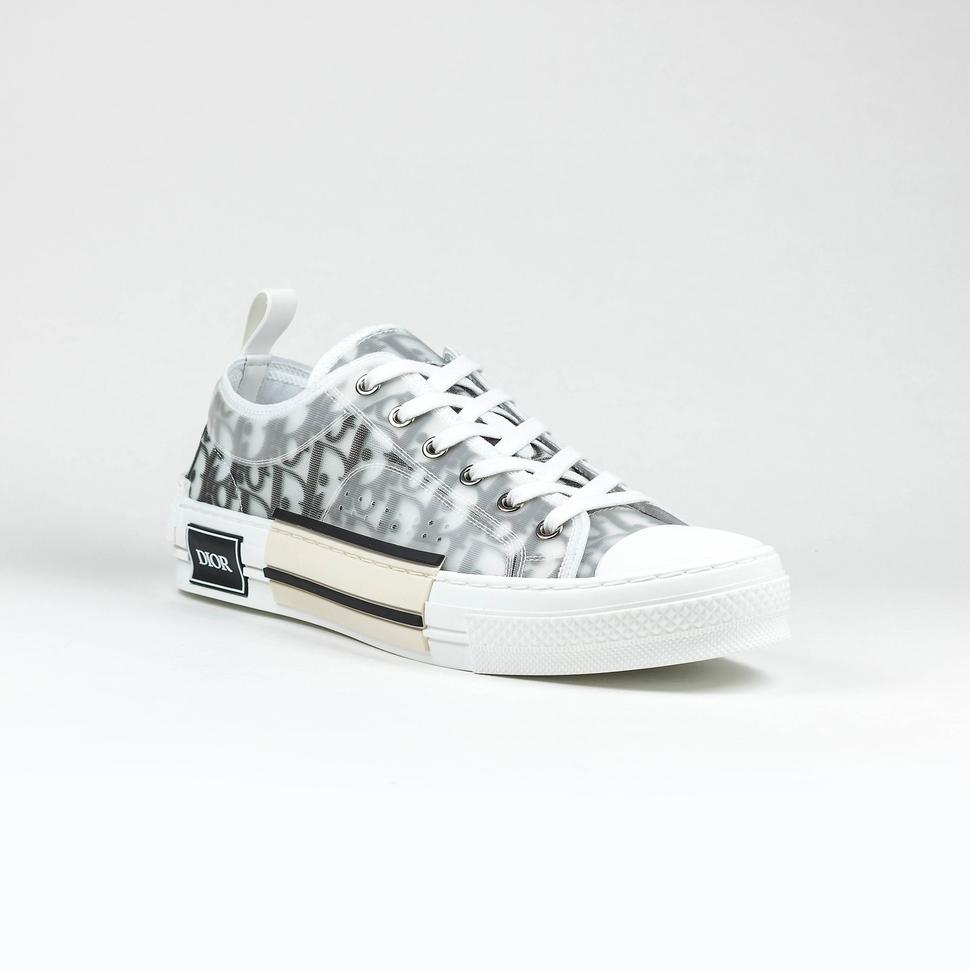 Thể hiện tinh thần thể thao mà Kim Jones gửi gắm, dòng giày B27 sneakers chính là điểm nhấn sáng giá trong bộ sưu tập. B27 sở hữu phối màu cơ bản – xám, trắng, đen – cùng 2 thiết kế cổ thấp và cao. Bề mặt đa chất liệu của dòng giày là sự đan xen giữa họa tiết thêu Dior Oblique biểu tượng và các lớp da đục lỗ cao cấp.