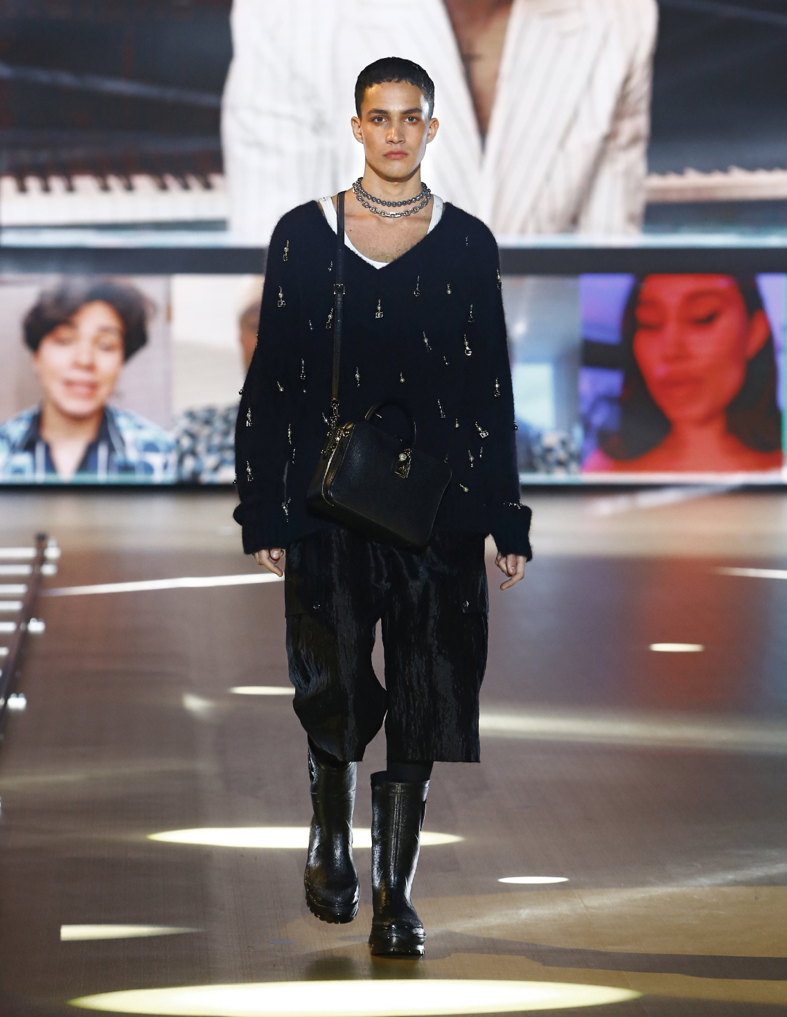 Với hashtag #DGTogether làm tên gọi chính, buổi trình diễn Dolce & Gabbana Thu Đông 2021-22 còn là đại diện cho sự kết nối rộng rãi của thế hệ mới. Với Internet và mạng xã hội, mối liên kết con người trở nên rộng lớn hơn bao giờ hết. Điều ấy đã được phản ánh qua background sân khấu là hàng trăm màn ảnh nhỏ thể nghiệm chức năng gọi video call của các thiết bị thông minh.