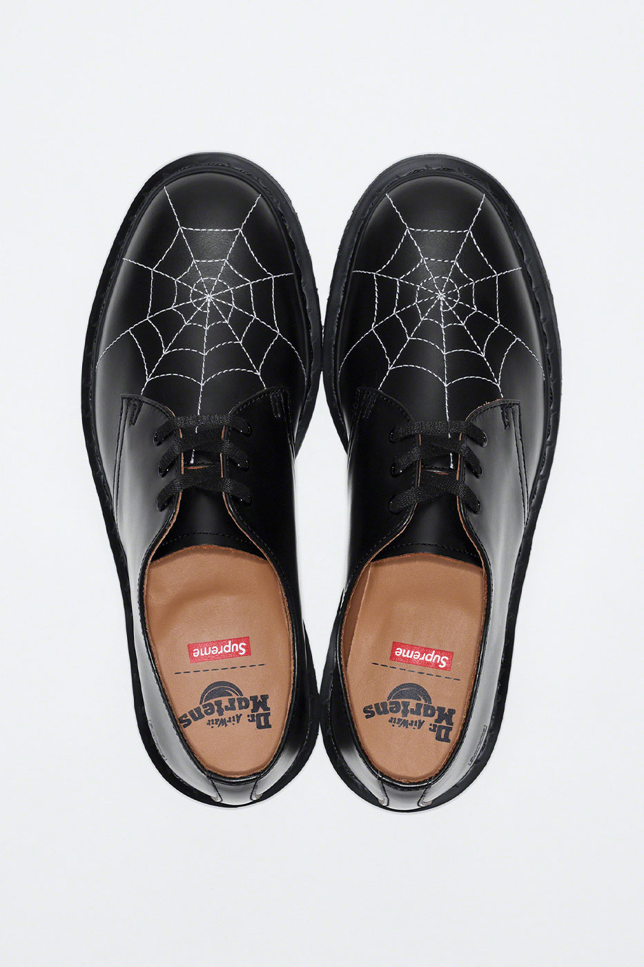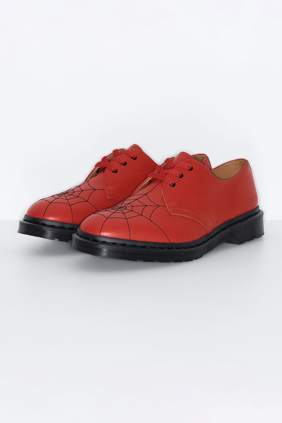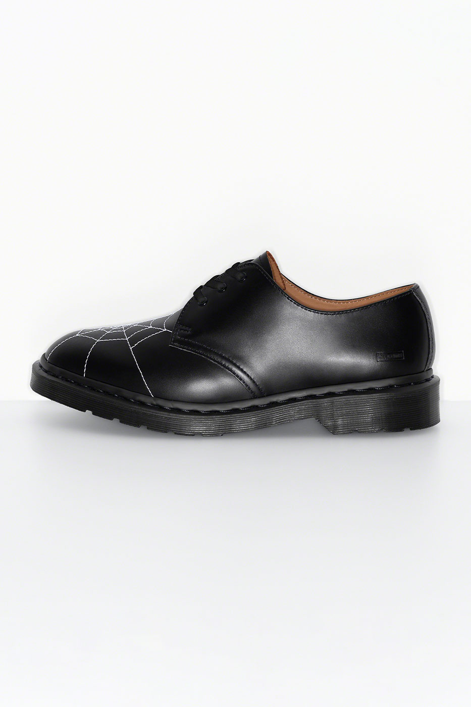 Phong cách giày oxford mang tính biểu tượng của Dr. Martens được mang lớp vỏ bọc từ chất liệu da trơn cổ điển, ở trên mũi là hình ảnh mạng nhện thêu để tạo điểm nhấn tương phản.