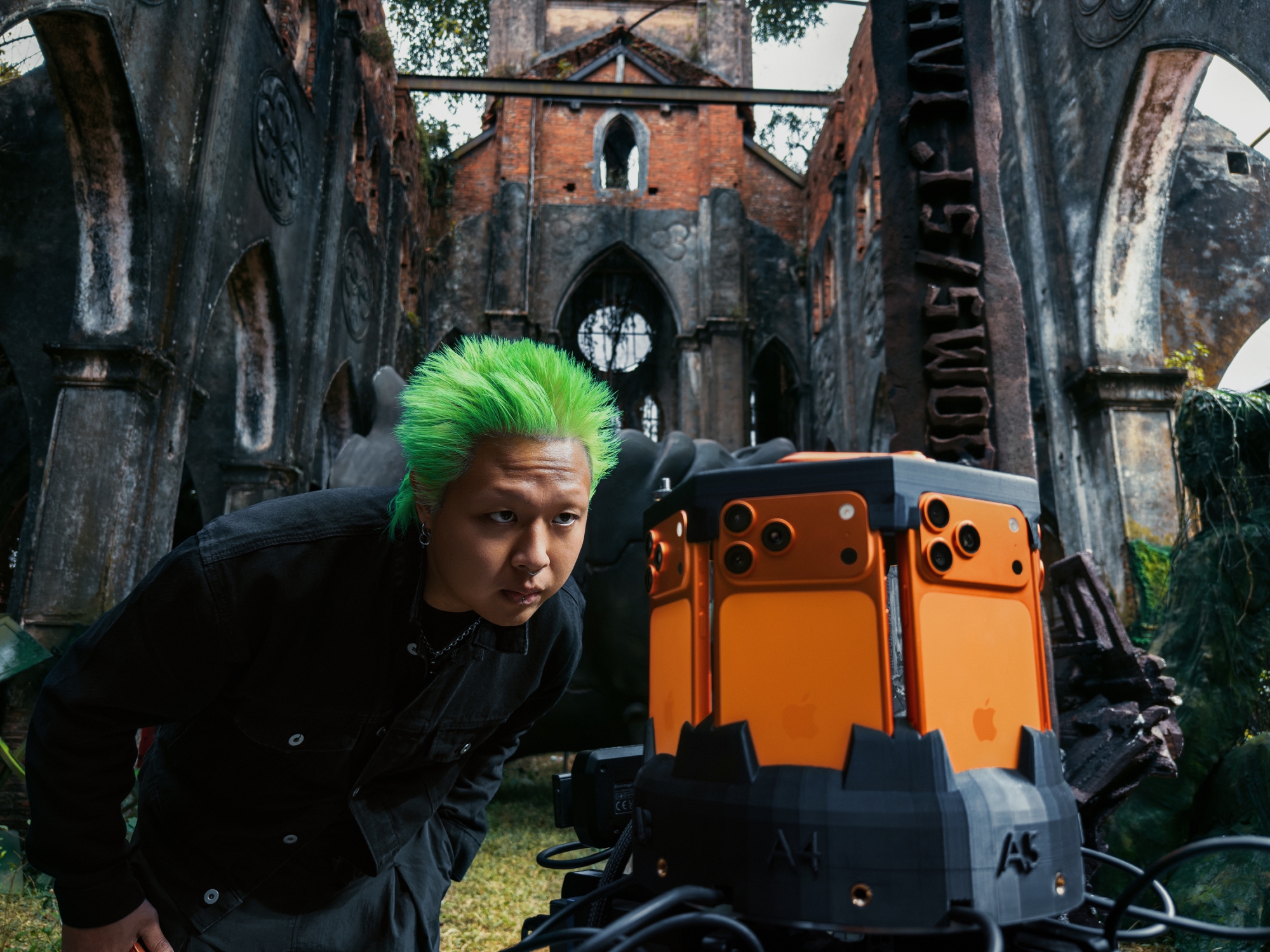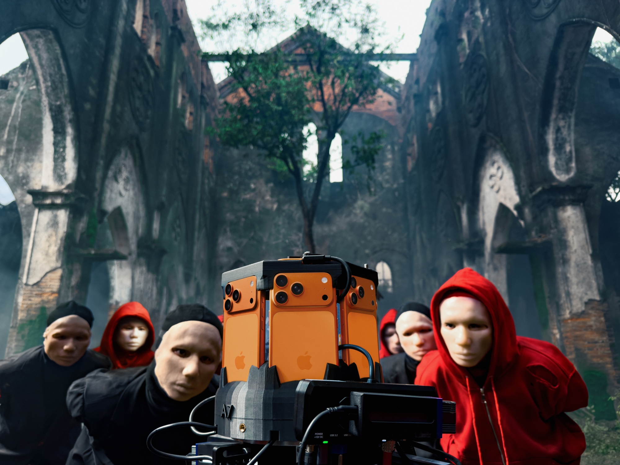 Để hiện thực hóa tầm nhìn nghệ thuật của dự án, ekip sản xuất đã sử dụng 8 chiếc iPhone 17 Pro gắn trên một hệ thống rig được thiết kế chuyên biệt. Tám thiết bị được đồng bộ hóa bằng genlock, ghi lại ba thực tại song song với từng khung hình khớp hoàn hảo, tạo nên một thế giới liền mạch, sống động nơi người xem được thực sự hòa mình vào bên trong. Toàn bộ video được quay bằng ProRes RAW với Apple Log 2, mang đến độ trung thực màu sắc và chiều sâu hình ảnh vượt trội, giúp câu chuyện trở nên sống động hơn bao giờ hết.