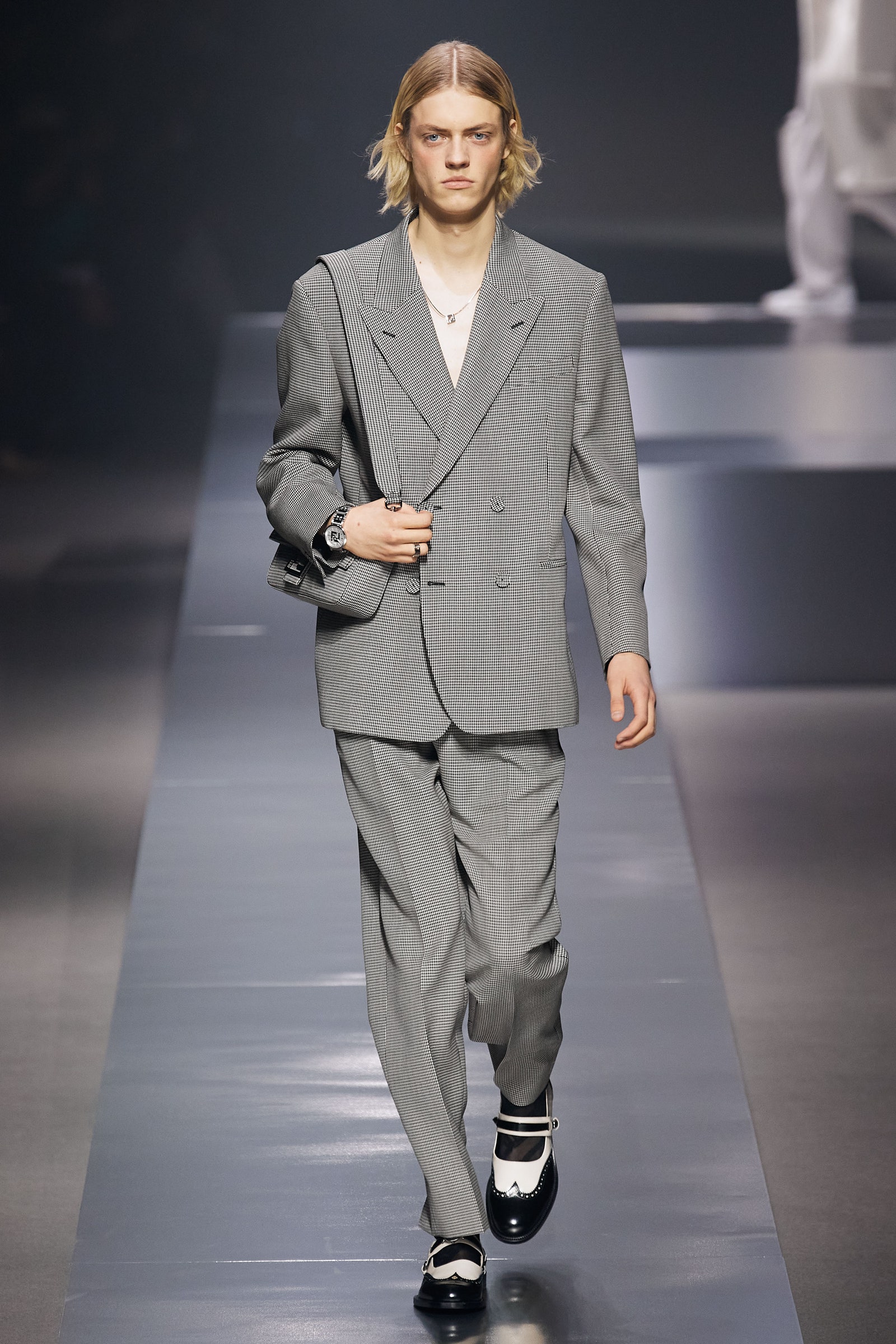 Bên cạnh họa tiết houndstooth và kiểu dáng tuxedo, nét cổ điển còn được nhà mốt tôn vinh qua mẫu giày lười và Oxfords kinh điển.