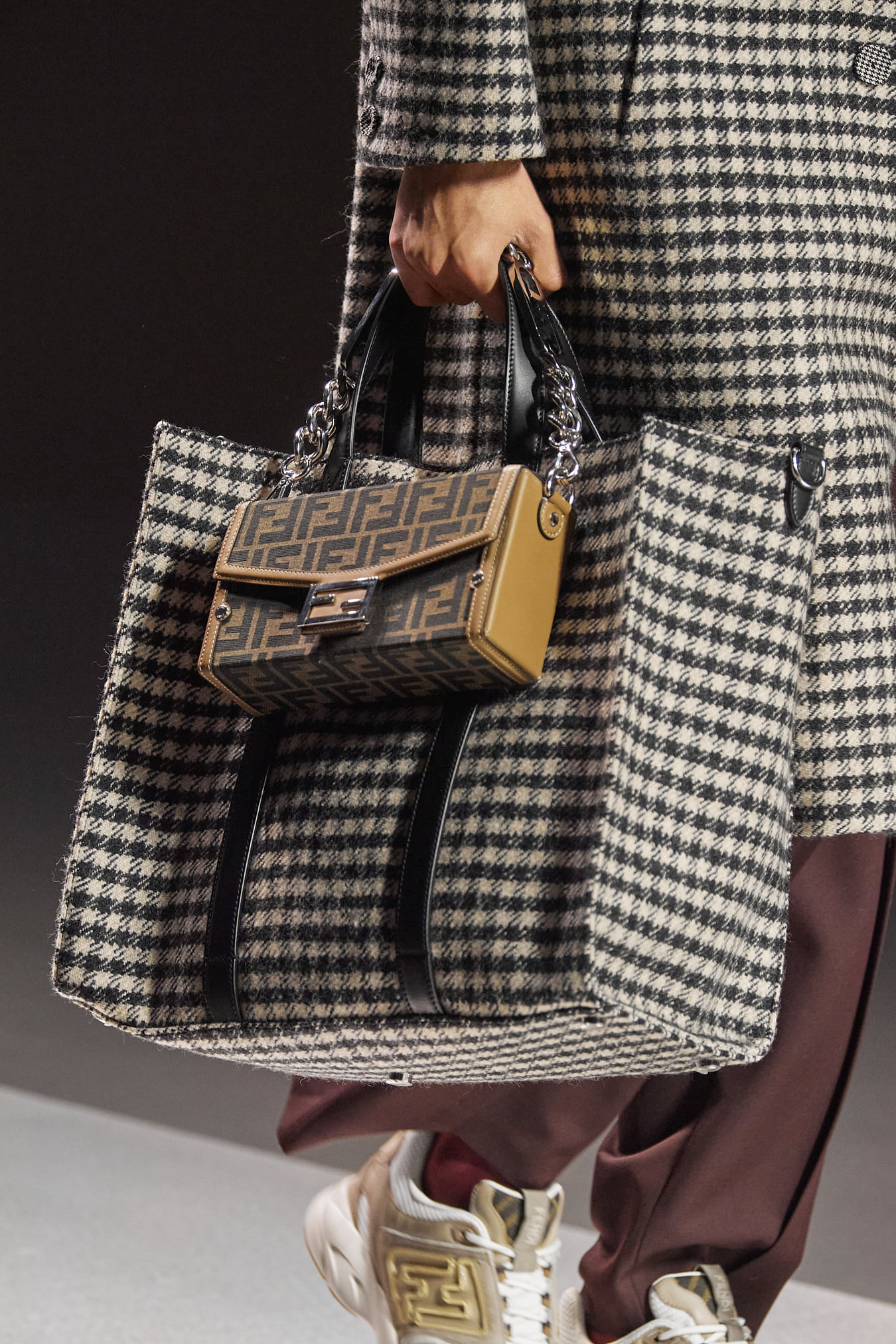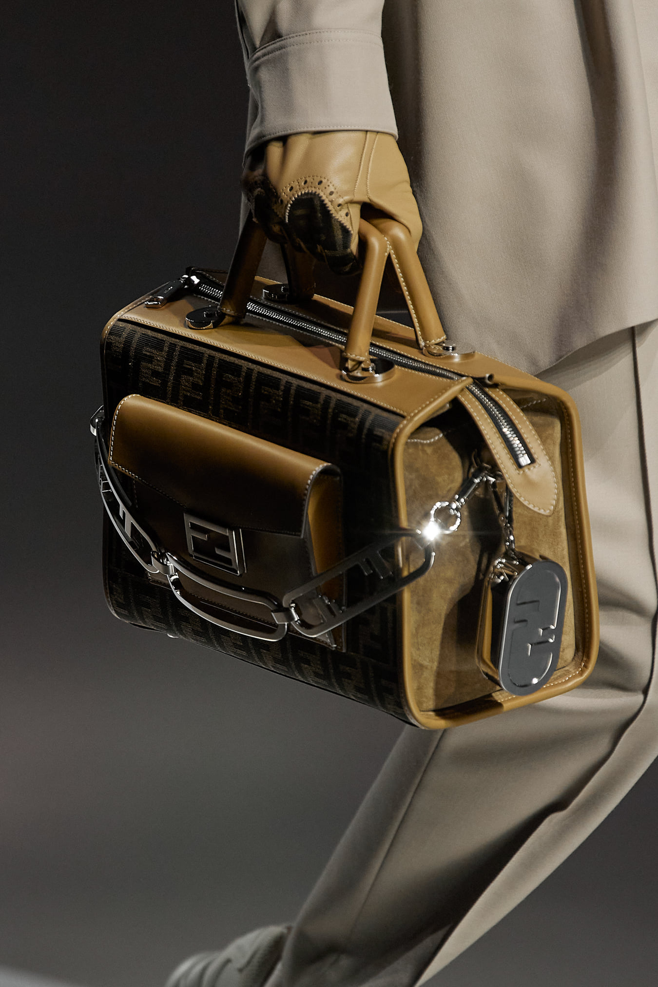 Ngoài ra, điểm sáng đáng chú ý của bộ sưu tập còn đến từ dàn phụ kiện sang trọng. Đa dạng kích cỡ, kiểu dáng, chất liệu và họa tiết, những chiếc túi của bộ sưu tập vẫn giữ được tinh thần lịch lãm vượt thời gian. Đặc biệt, ngoài ký hiệu Fendi, hình ảnh O’Lock cũng được sử dụng như một họa tiết monogram, thể hiện tính chất xu thời của bộ sưu tập, khi kiểu họa tiết này vẫn đang là xu hướng thu hút rất nhiều khách hàng thế hệ mới.