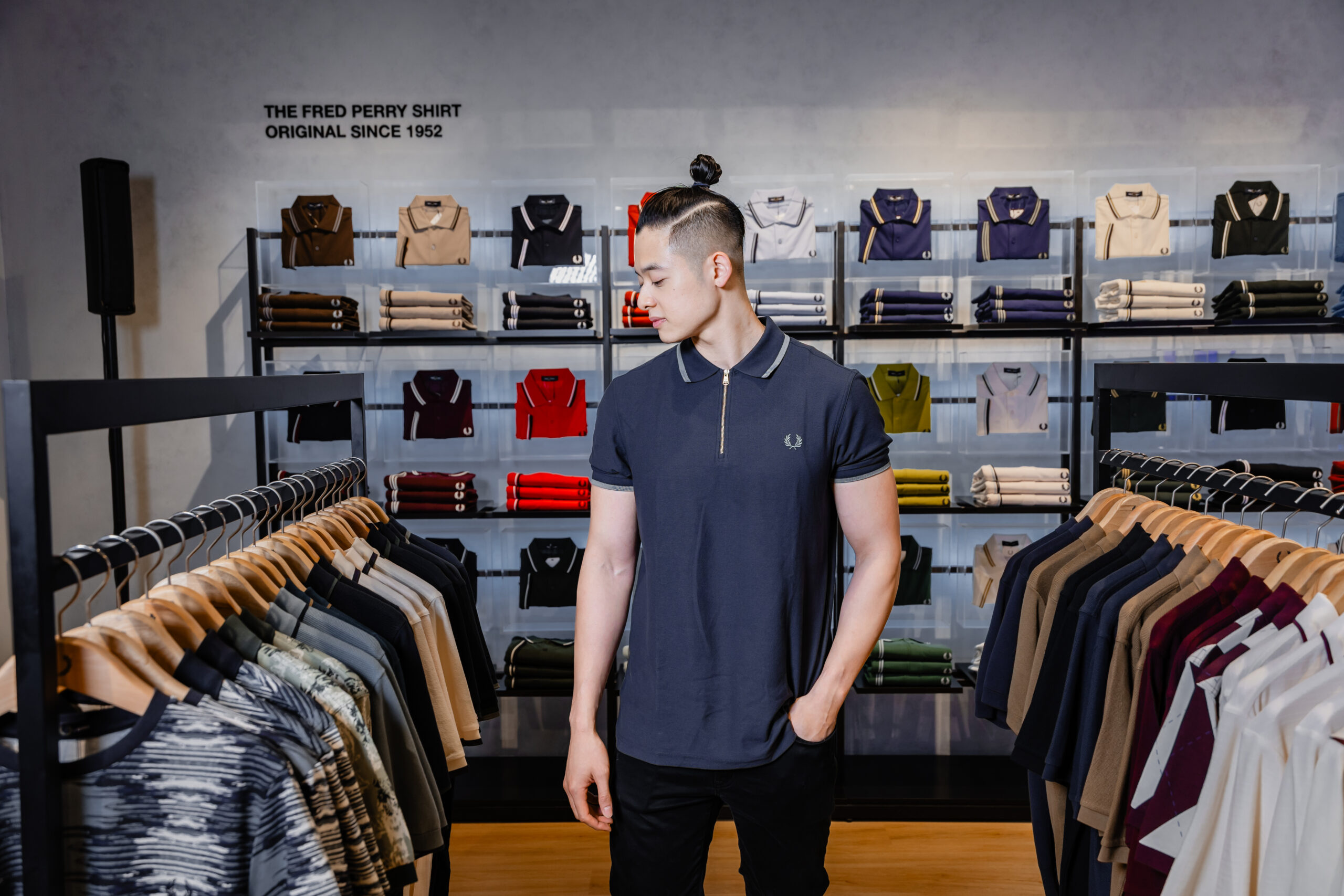 Tại sự kiện khai trương, Fred Perry giới thiệu những thiết kế mới nhất từ dòng sản phẩm The Fred Perry Shirt – biểu tượng cốt lõi của thương hiệu. Chiếc áo polo nguyên bản, vẫn giữ nguyên thiết kế mang tính biểu tượng của Fred Perry: tối giản và hiện đại với những bảng màu mới cập nhật liên tục theo từng mùa, thể hiện tinh thần năng động và sự tự do, từ thời trang thể thao ứng dụng vào văn hóa đường phố Subcultural, mang tinh thần tự do của các cộng đồng thanh niên Anh.