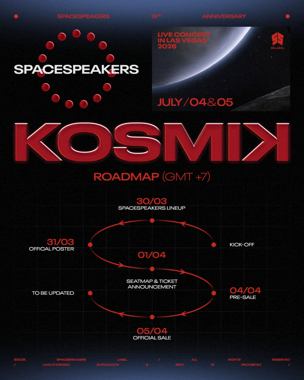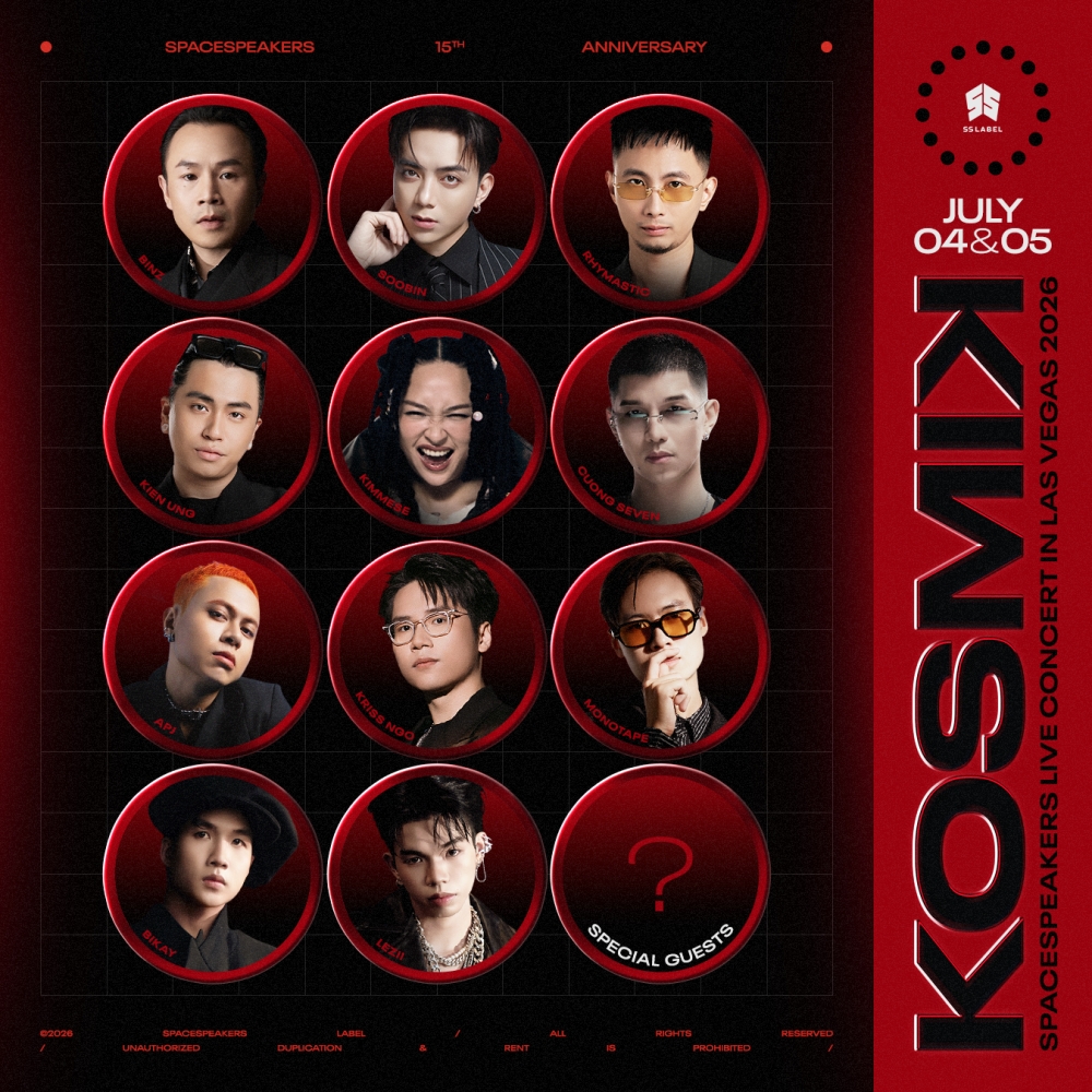 Vào ngày 01/04 vừa qua, SS Label đã chính thức đáp lại sự chờ đợi của khán giả khi công bố full line-up KOSMIK Live Concert 2026 In Las Vegas. Diễn ra vào hai đêm 04 – 05/07, concert lần này là sự giao thoa đặc biệt khi quy tụ toàn bộ nghệ sĩ trực thuộc SS Label, chào đón sự trở lại của những mảnh ghép SpaceSpeakers như Kimmese và hội ngộ cùng dàn nghệ sĩ khách mời thân thiết (Andree Right Hand, Bùi Lan Hương, Kay Trần, Bùi Công Nam, Xuân Nghi, Lil Wuyn, 16 Typh..). Sự quy tụ đa dạng này hứa hẹn mang đến những tiết mục collab độc đáo giữa nhiều cá tính âm nhạc.