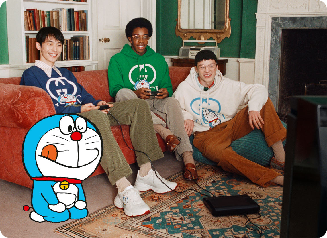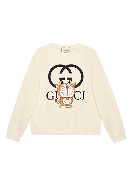 Nhân dịp năm mới 2021 năm Tân Sửu, Gucci chính thức phát hành bộ sưu tập kết hợp cùng Doraemon, chú mèo máy truyện tranh tuổi thơ của bao thế hệ. Gucci x Doraemon nằm trong loạt thiết kế Epilogue, nhằm kỉ niệm 50 năm ra đời của chú mèo máy (2020), đồng thời kỉ niệm 100 năm thành lập thương hiệu cao cấp nước Ý (2021).