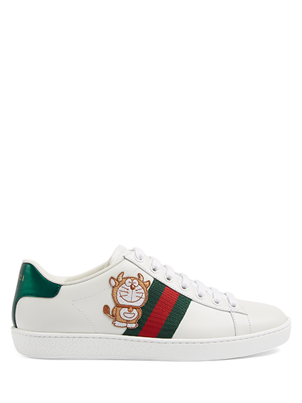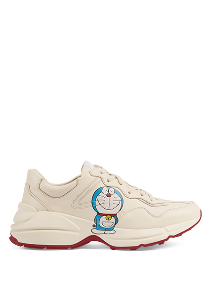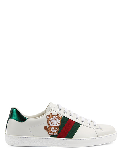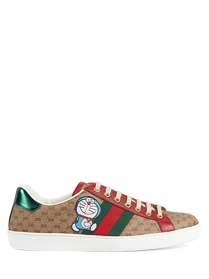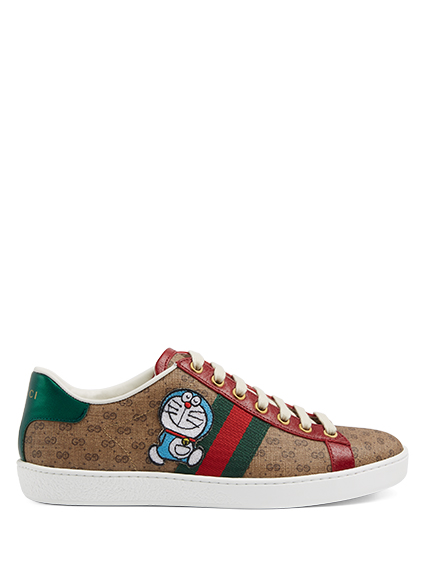 Các dòng giày Ace, Rhyton và dép Princeton vẫn giữ cho mình kiểu dáng và chất liệu quen thuộc, tuy nhiên, chúng được điểm sắc bằng hình tượng chú mèo Doraemon. Sang trọng, quý phái, và hoài niệm với chú mèo máy béo ú.
