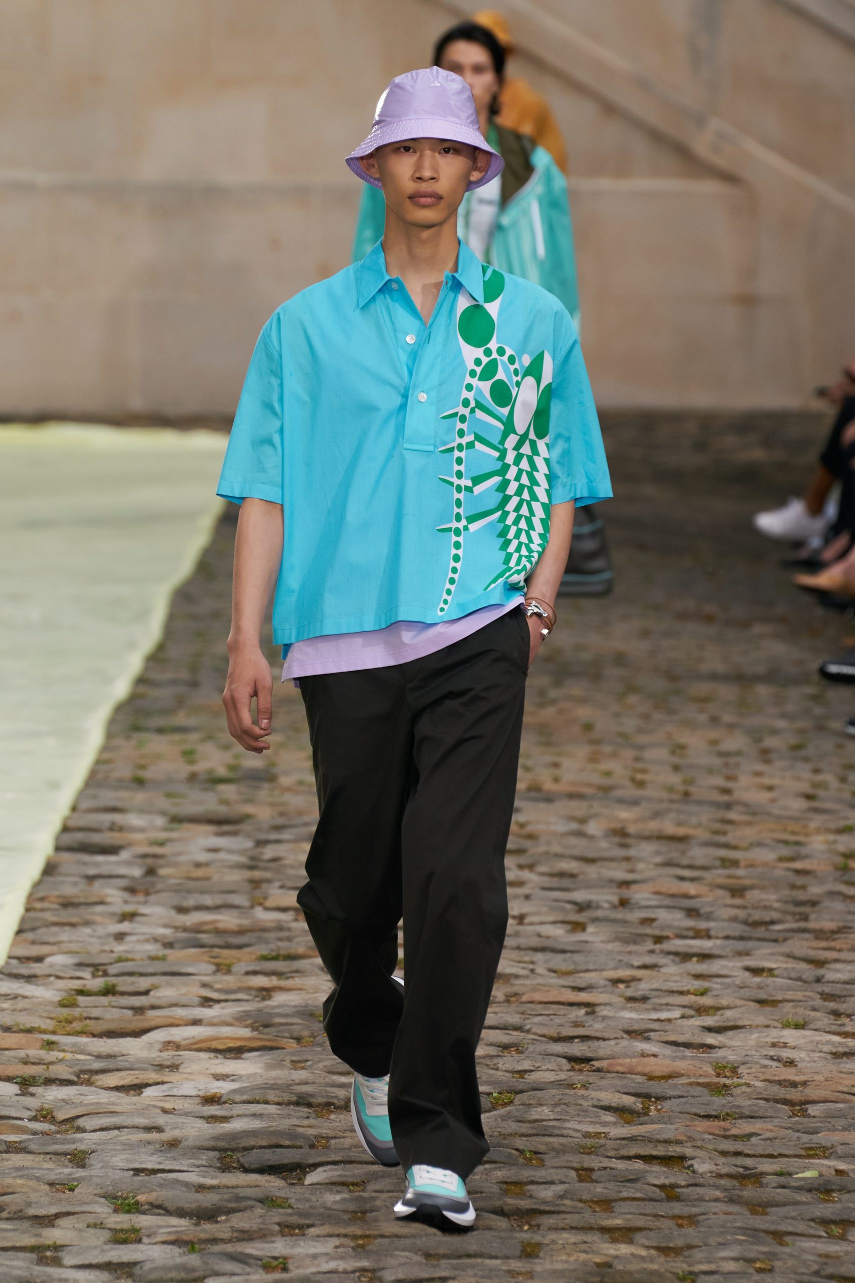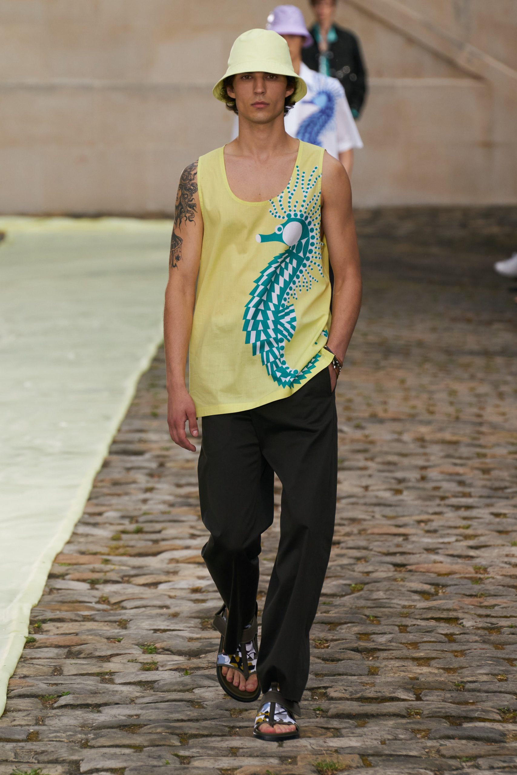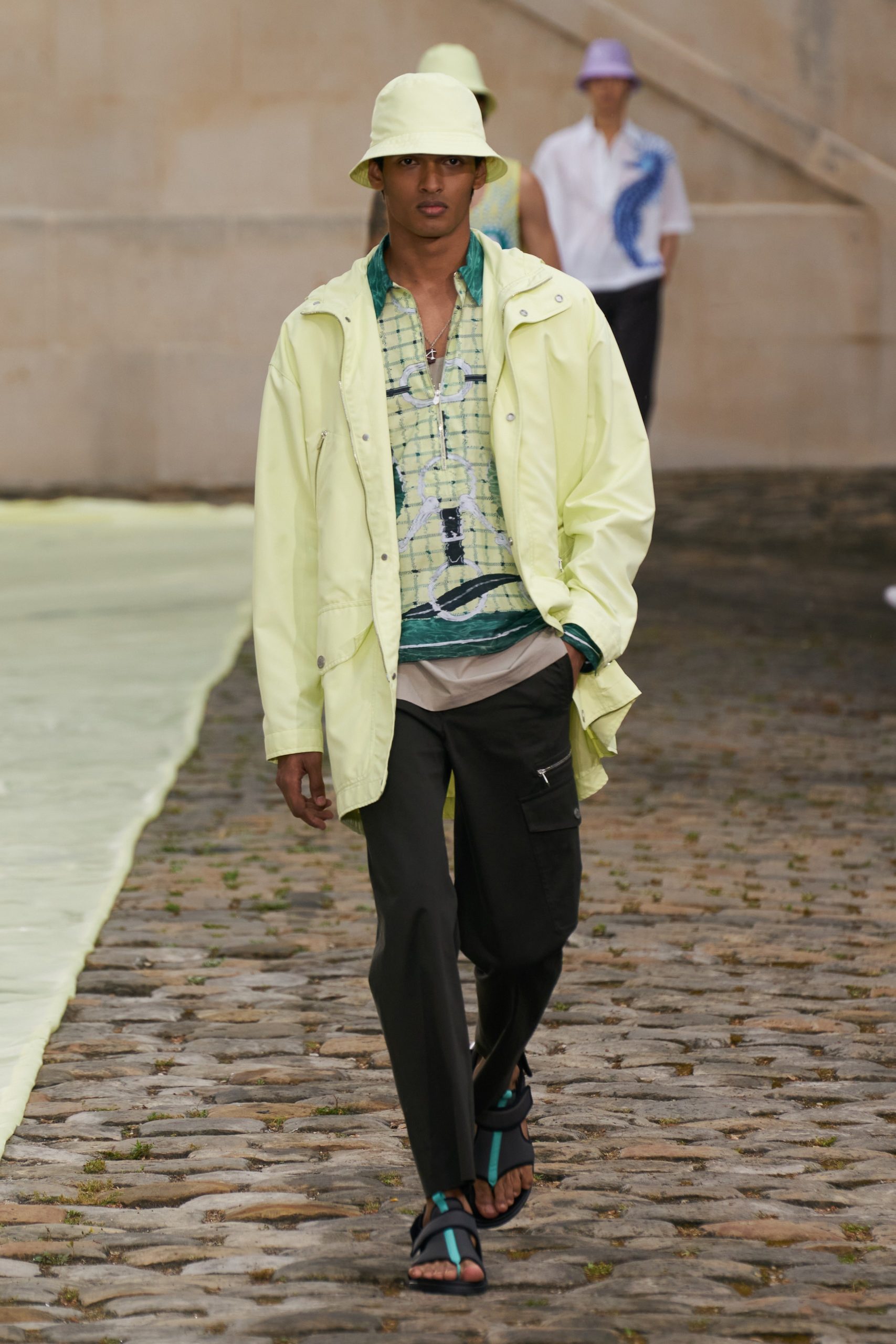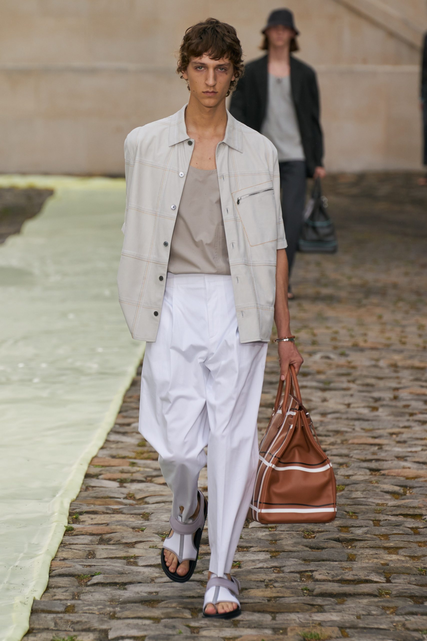 Phom dáng của bộ sưu tập mùa hè được giữ ở mức cơ bản, với các kiểu dáng sơ mi, áo cardigan, áo khoác blouson, áo khoác parka, quần dài ống rộng, quần ngắn cao hơn gối và nón tai bèo. Xăng-đan được thiết kế theo nhiều phom dáng thư thả, trong khi giày thể thao sở hữu những sắc màu nổi bật. Túi xách của bộ sưu tập không chỉ sặc sỡ mà còn to rộng hơn, trái ngược với phiên bản toàn đen của túi Birkin nam đầu tiên, đảm bảo không gian chứa thoải mái cho những chuyến đi ngao du.