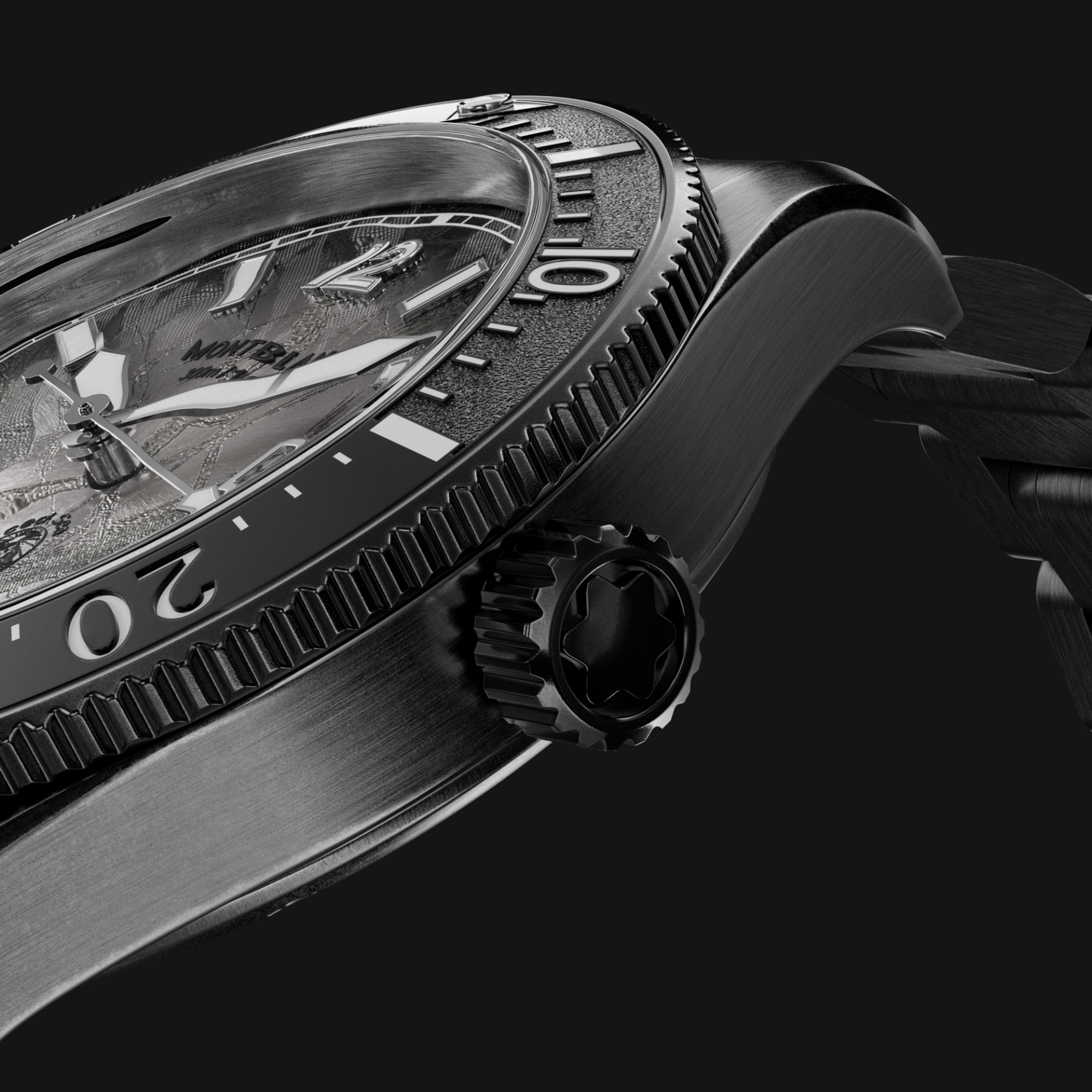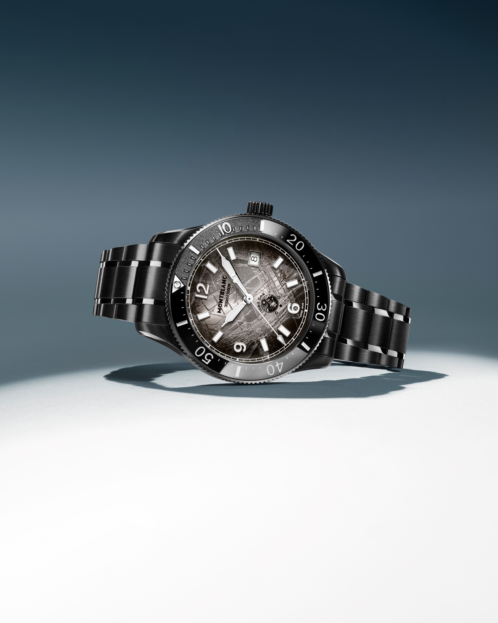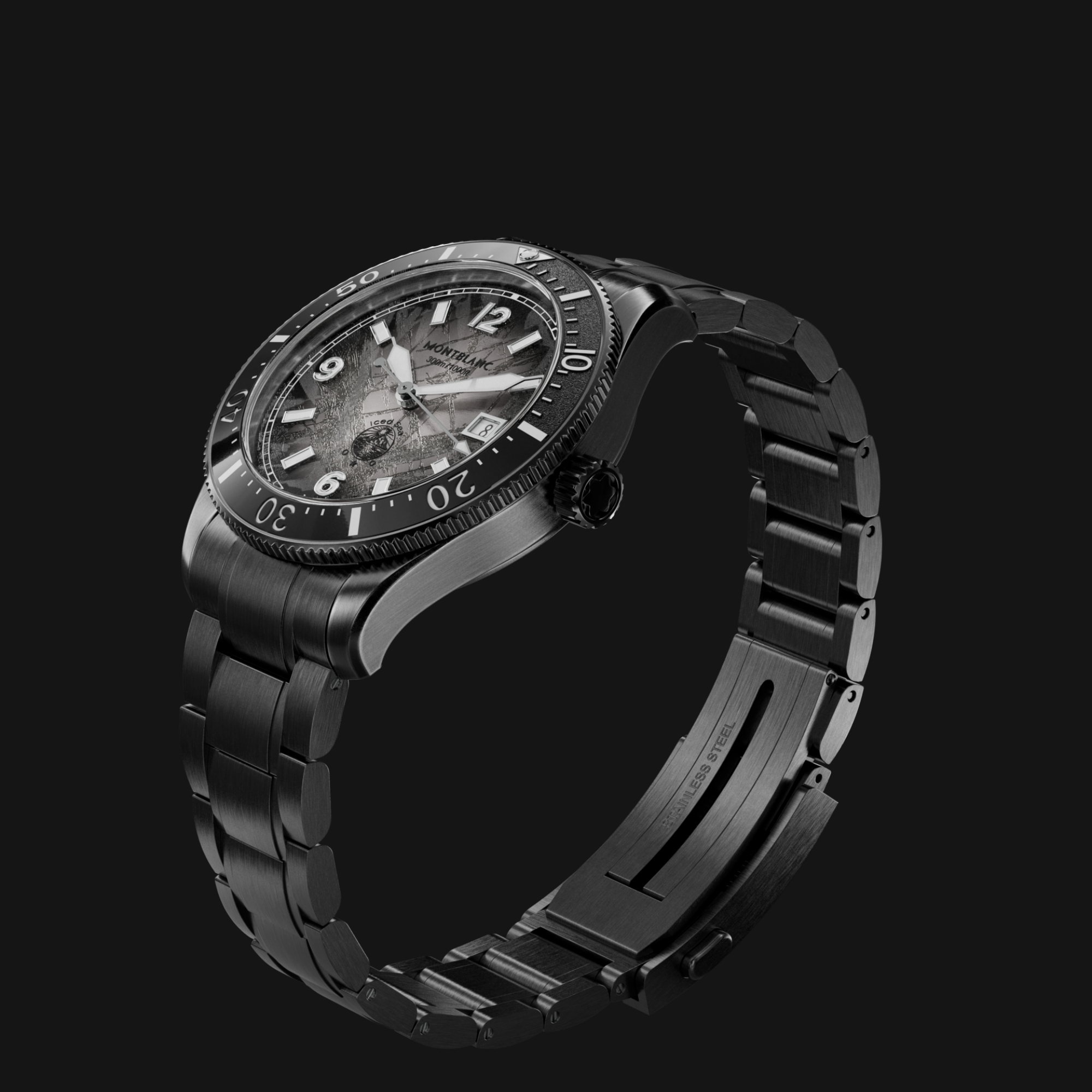 Khơi nguồn cảm hứng từ tự nhiên, Montblanc làm mới dòng Iced Sea Automatic Date 0 Oxygen với lớp hoàn thiện thép cũ kỹ và xước nhẹ có chủ đích. Để đạt được hiệu ứng này, vỏ và dây đeo thép được phủ lớp đen, sau đó xử lý bằng cách mài và chải với đá quartzite – một loại khoáng sản có độ cứng cao, được khai thác từ chính đỉnh núi Mont Blanc. Quá trình này tạo nên sắc đen xước mang vẻ ngoài phong hóa tự nhiên, đậm vẻ đẹp nguyên bản.