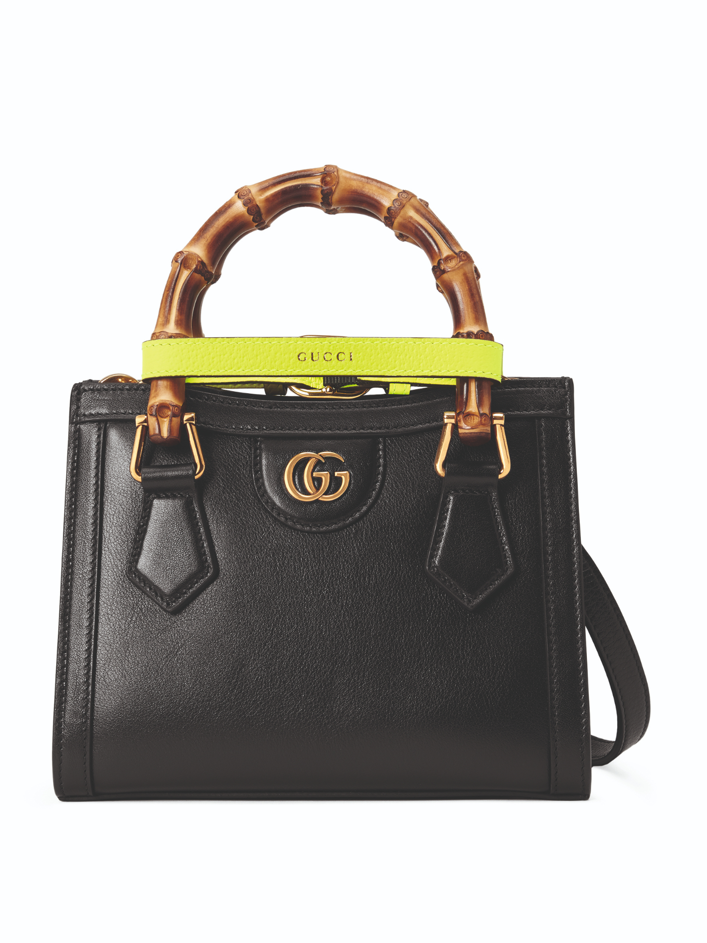 Mỗi chiếc túi Gucci Diana đều đi cùng với ba vòng thắt ánh dạ quang màu hồng, vàng hoặc cam. Mỗi chiếc vòng thắt có công dụng như một nút khóa với dòng ký tự Gucci nằm ở mặt ngoài. Các vị khách có thể thay phiên các vòng thắt này nhằm đa dạng hóa màu sắc cho chiếc túi của mình. Ngoài ra, ở phần dây thắt da bên trong, người sở hữu có thể tùy chọn dập nổi với các chữ cái hoặc biểu tượng ngôi sao ở nhiều màu phim ánh kim loại.