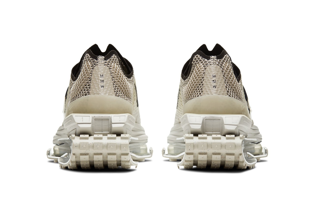 Trong khi đó, ở phía ngoài thân giày tiếp tục là ký hiệu Swoosh cỡ lớn ấn tượng. Ký hiệu tạo điểm nhấn sắc đen cùng những đường viền cổ giày. Nếu quan sát kỹ hơn ở phần lưỡi gà, ta sẽ nhận thấy dòng tên Matthew M. Williams đươc in tinh tế trên phần lỗ giữ giây dày. Cùng với đó, là dòng kí hiệu M-M-W đặc sắc ngay sau phần trên gót giày.