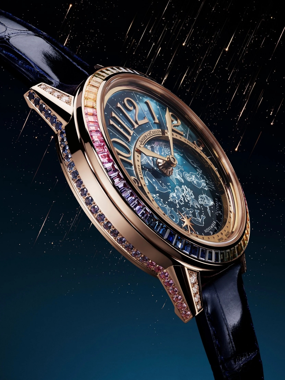 Bề mặt mặt trăng thường được điêu khắc nổi trên nền trời xanh thẳm của chất liệu đá Lapis Lazuli, tái hiện lại những đám mây bằng xà cừ trắng muốt bồng bềnh. Vượt lên trên những giới hạn của chế tác thông thường, hãng đã đưa tính lãng mạn của bầu trời đêm lên một tầm cao mới với phiên bản Rendez-Vous Dazzling Shooting Star, sở hữu một trong những cơ chế phức tạp và thi vị bậc nhất: một ngôi sao băng bằng vàng vụt sáng lướt qua màn đêm trên mặt số.