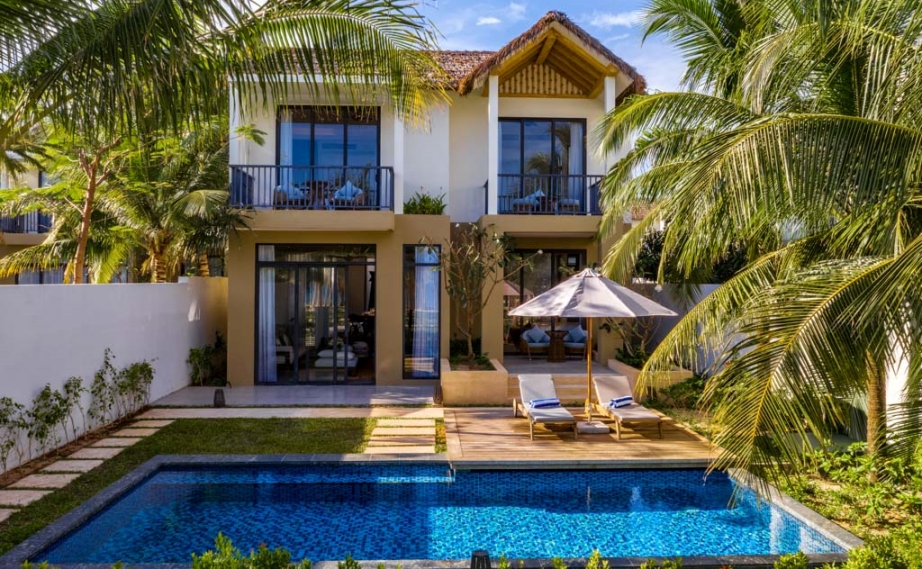 Căn Premium Pool Villa 2 Tầng có thiết kế ưu tiên không gian chung rộng rãi, đa chức năng với các thiết bị hiện đại. Bể bơi ngoài trời với giường nằm thư giãn có tầm nhìn xanh mát. Phòng nghỉ ở tầng 2 của biệt thự với ban công cho tầm nhìn khoáng đạt đón gió biển, mang đến sự nhẹ nhàng cho không gian nghỉ ngơi.