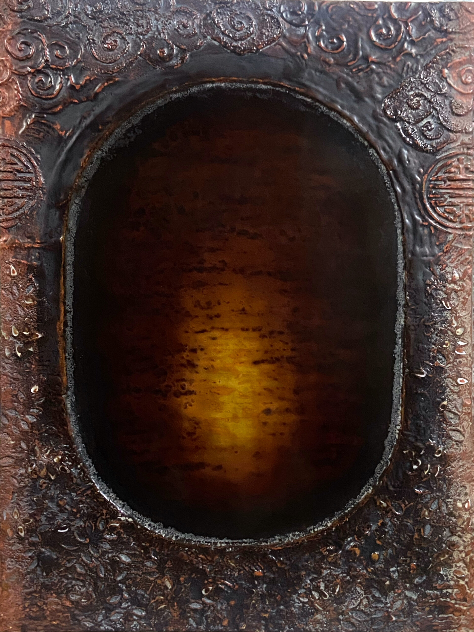 Với loạt tác phẩm sơn mài đậm dấu ấn của sơn ta truyền thống, Tôn Thất Minh Nhật không dừng lại ở việc khám phá chất liệu mà còn là thực hành ý niệm. Quá trình thực hành nhiều lớp, phủ sơn, mài, và đánh bóng, tạo nên bề mặt gợi nhắc đến những chu trình bào mòn và tái sinh trong tự nhiên. Lấy cảm hứng từ các họa tiết cung đình Huế cùng với các rổ đan lát, Nhật kết nối mạch ngầm văn hoá đến với nhịp sống thường nhật. Bề mặt tác phẩm dường như biến thành những “kho lưu trữ” hay những tấm gương phản chiếu nhịp điệu của nắng và mưa, của ngày và đêm.