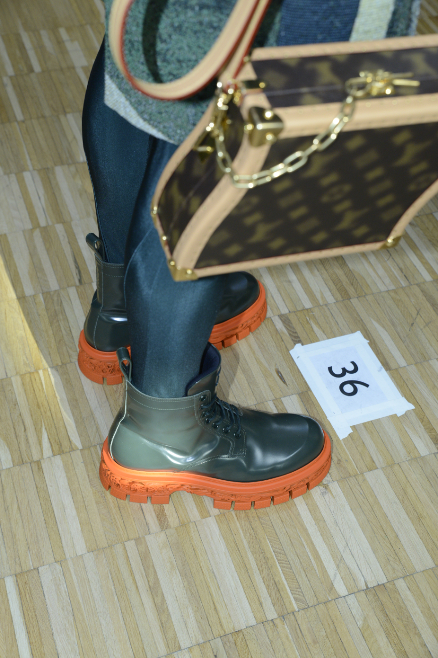 Một điều không thể bỏ lỡ ở những bộ sưu tập của Virgil, chính là màu sắc bụi bặm của thời trang đường phố. Văn hóa hip hop, graffiti hay tất cả những gì thuộc về đường phố, luôn là nguồn cảm hứng bất tận để ông đi sâu vào con đường sáng tạo với thời trang. Ở hầu hết các outfit, ông đều cho người mẫu đội chiếc nón snapback, đủ màu sắc và chi tiết. Giày thể thao cũng xuất hiện rất nhiều, với 6 phiên bản màu khác nhau của dòng LV Trainer 2 mang âm hưởng đậm nét của giày bóng rổ thập niên 1990. Một trong những outfit của bộ sưu tập còn rất giống như đồng phục của đội bóng rổ.