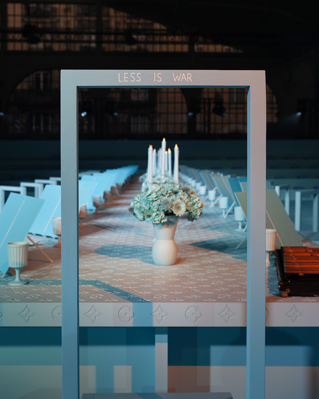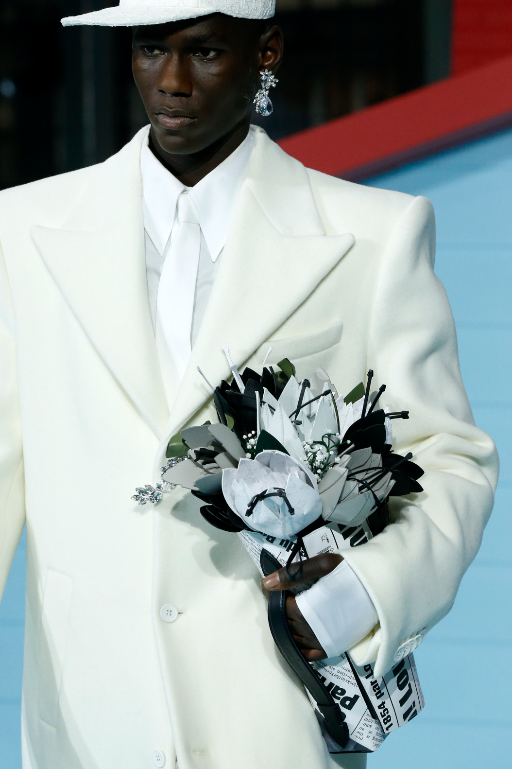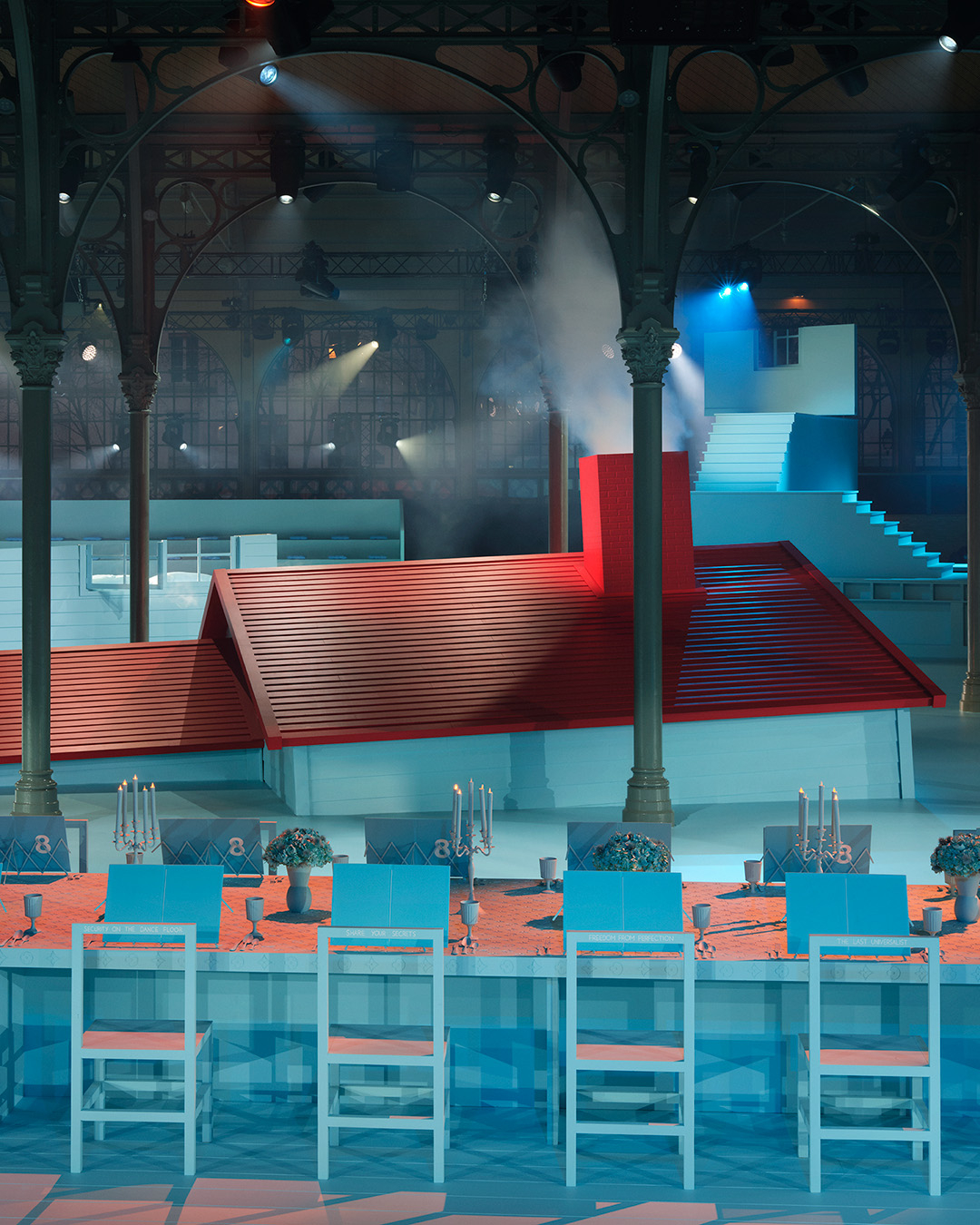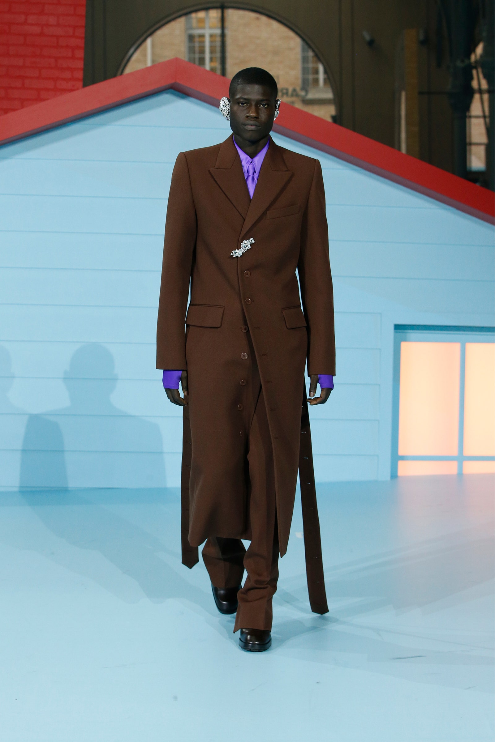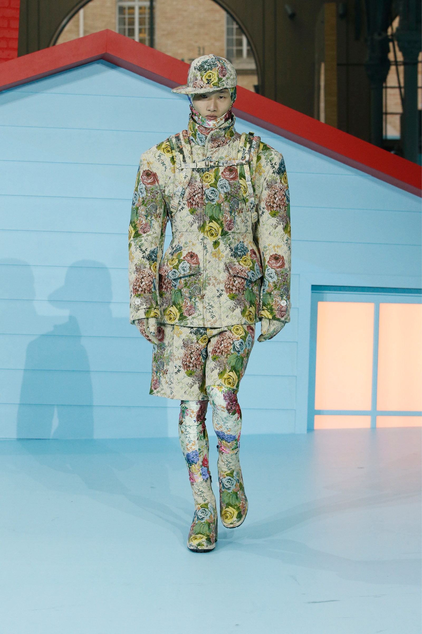 Quy tụ 67 người mẫu và 20 vũ công, buổi trình diễn thời trang mang lại cảm giác lả lướt cho người xem qua từng bước chuyển động. Nhìn những bộ trang phục uốn cong theo từng bước nhảy các vũ công, hay từng bước đi của dàn người mẫu, tôi có cảm giác như được thưởng thức một vở nhạc kịch hồn nhiên. Bối cảnh mái nhà ống khói, hay chiếc giường đệm và chiếc ghế nhấp nhô như múa rối đều là những hình ảnh thân thuộc, dí dỏm xuất hiện trong những câu chuyện cổ tích thời thơ ấu. Như cách tiếp cận thời trang đậm triết lý Boyhood của Virgil Abloh – trong sáng, ngây thơ, không bị pha tạp và bó buộc bởi những định kiến của xã hội.